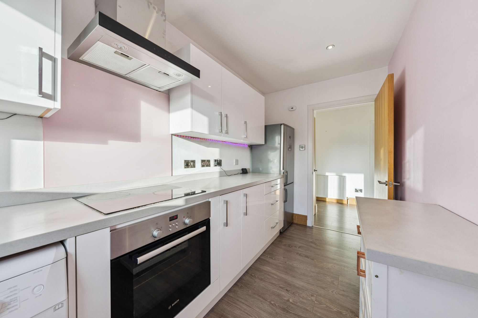 The principal bedroom is particularly spacious and features sliding door wardrobes along with a well-appointed en-suite shower room. A second double bedroom, also benefiting from integrated wardrobes, offers flexible accommodation ideal for guests, family, or home working. Completing the property is an attractive, contemporary bathroom fitted with a three-piece suite and shower over bath.