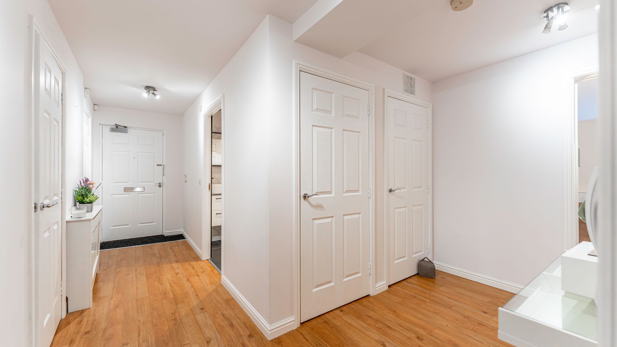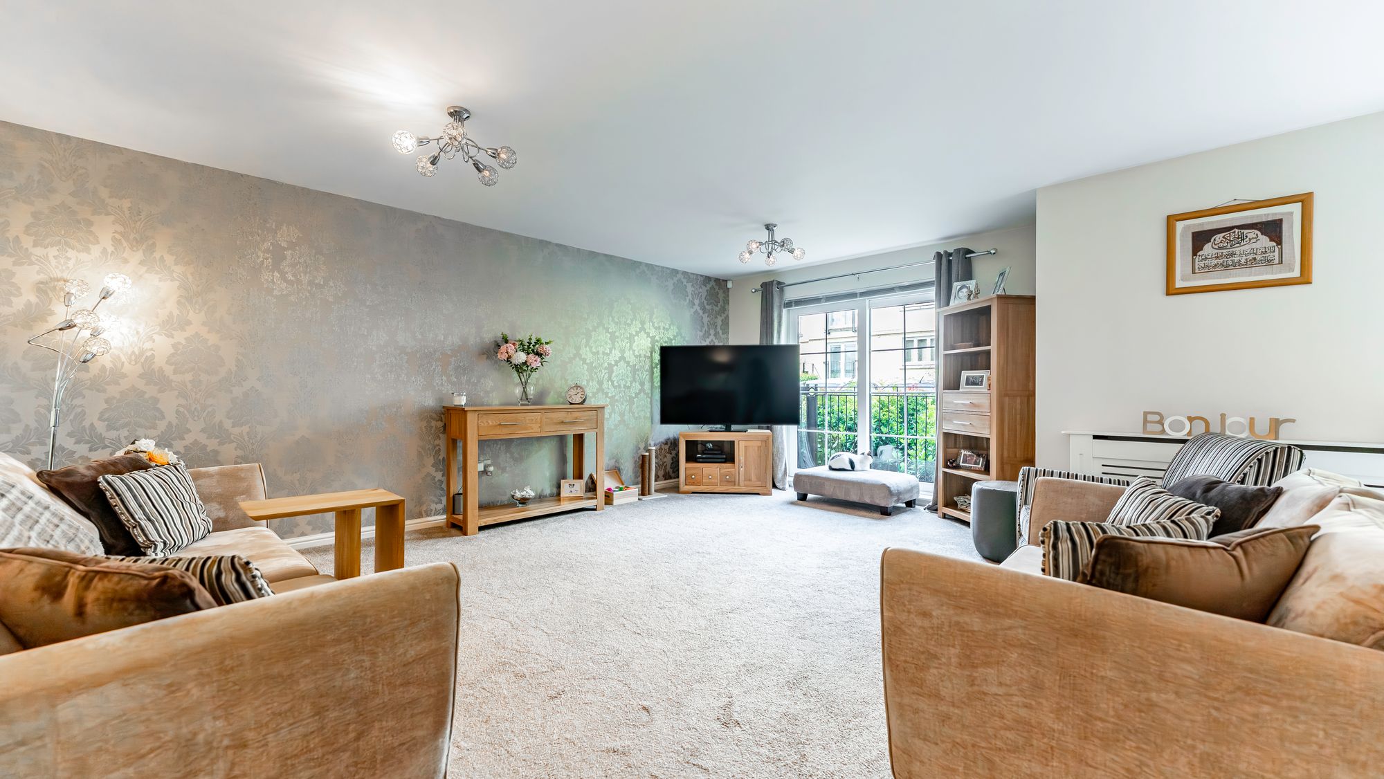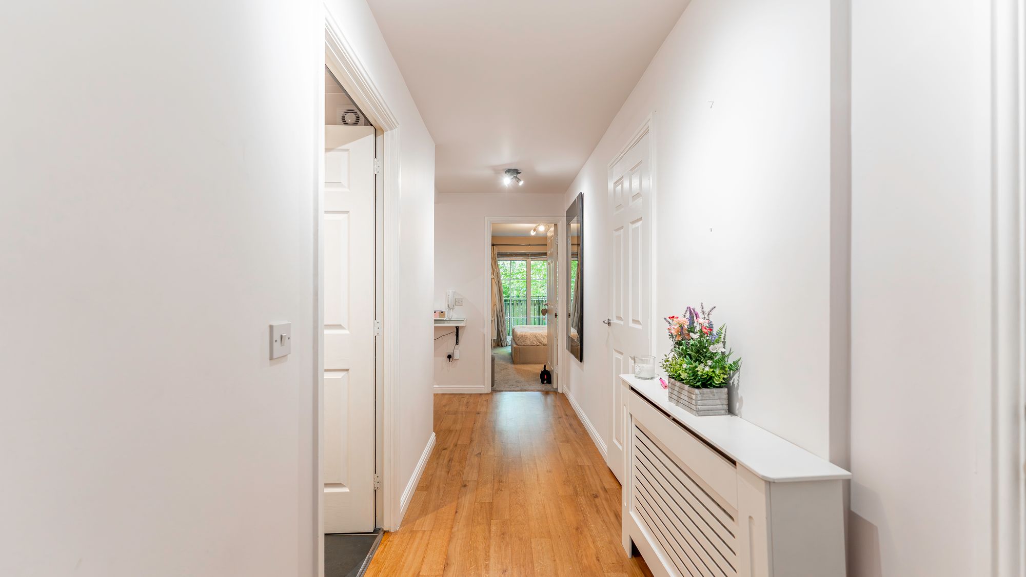 On arrival at the property, you are welcomed by communal gardens, and ample parking in which the home for sale has an allocated space. The attached photographs, floor plan and HD video tour will give an idea to the size and layout of the flat. However, in brief the accommodation extends to; welcoming entrance hallway with storage cupboards and office, a spacious open plan living/dining/kitchen with doors leading to the garden. The garden is undoubtably one of the properties best features, it is made up of a slabbed patio area and makes a perfect area to relax or entertain. There are two double bedrooms, both of which have built in storage with the principal room benefitting from a fully tiled, en-suite shower room with large walk in shower. The accommodation is completed by a brand new, main bathroom with free standing bath and shower over the top.