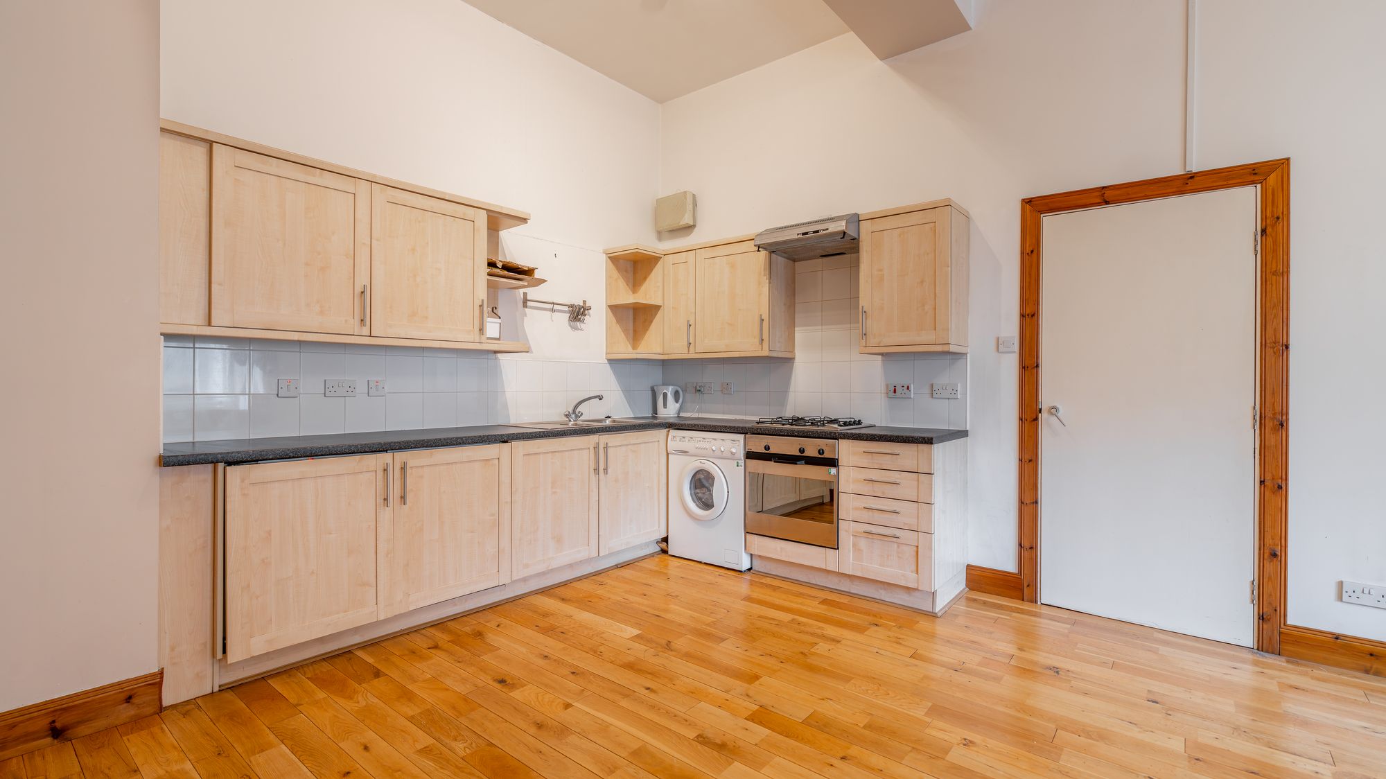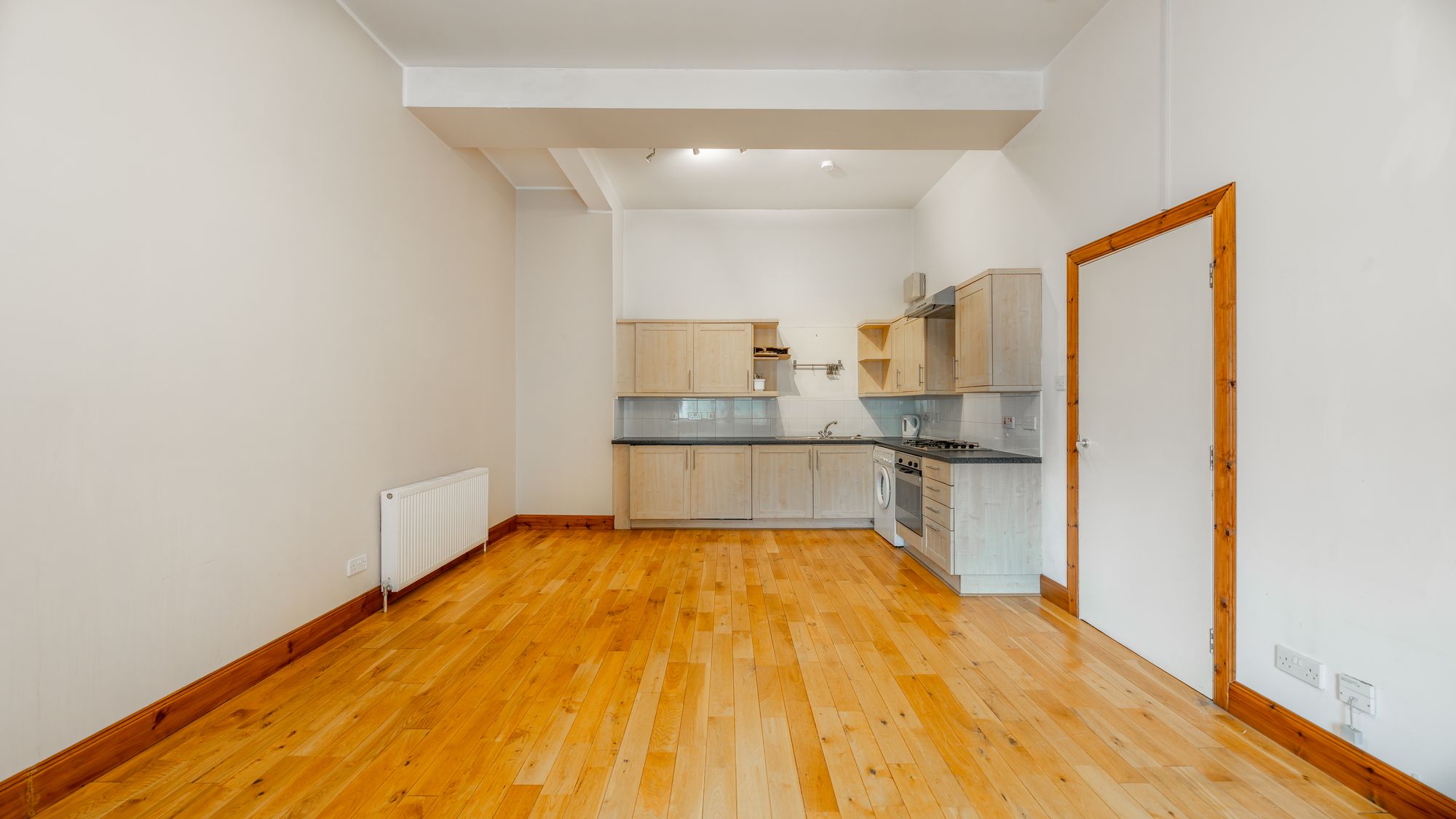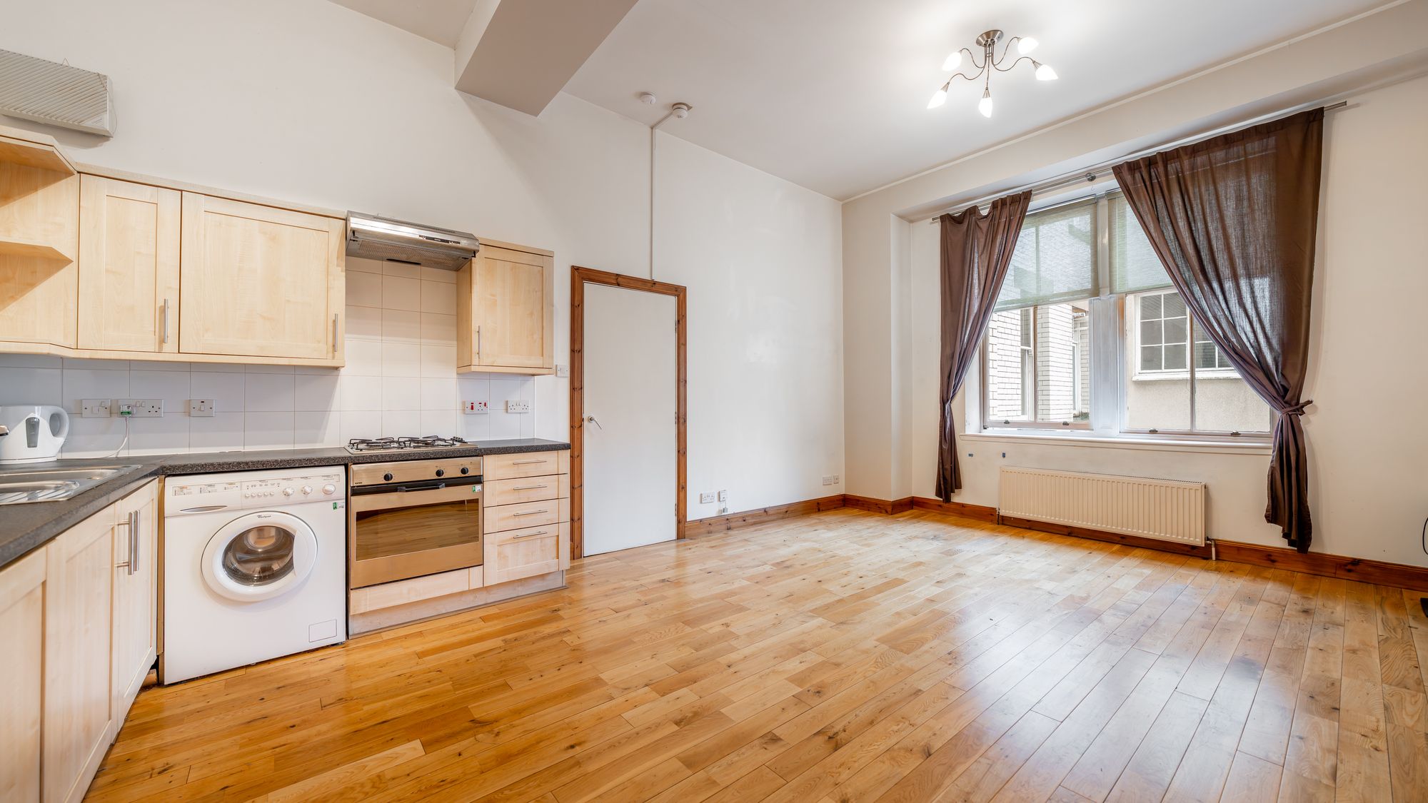 A superb one-bedroom apartment located within one of Glasgow’s finest Victorian buildings. Positioned on the second floor this spacious apartment boasts an expansive open plan living space comprising kitchen with a generous adjoining lounge and dining space. The property’s iconic setting, spacious layout and close proximity to Glasgow City Centre will surely appeal to a variety of potential purchasers including investors, first time buyers and young couples. In short, the accommodation comprises; entrance hall with two storage cupboards off, internal bathroom with shower over bath, lounge with open plan kitchen off and a double bedroom with walk in wardrobe off. The property features fresh neutral décor throughout, secure door entry and private parking.