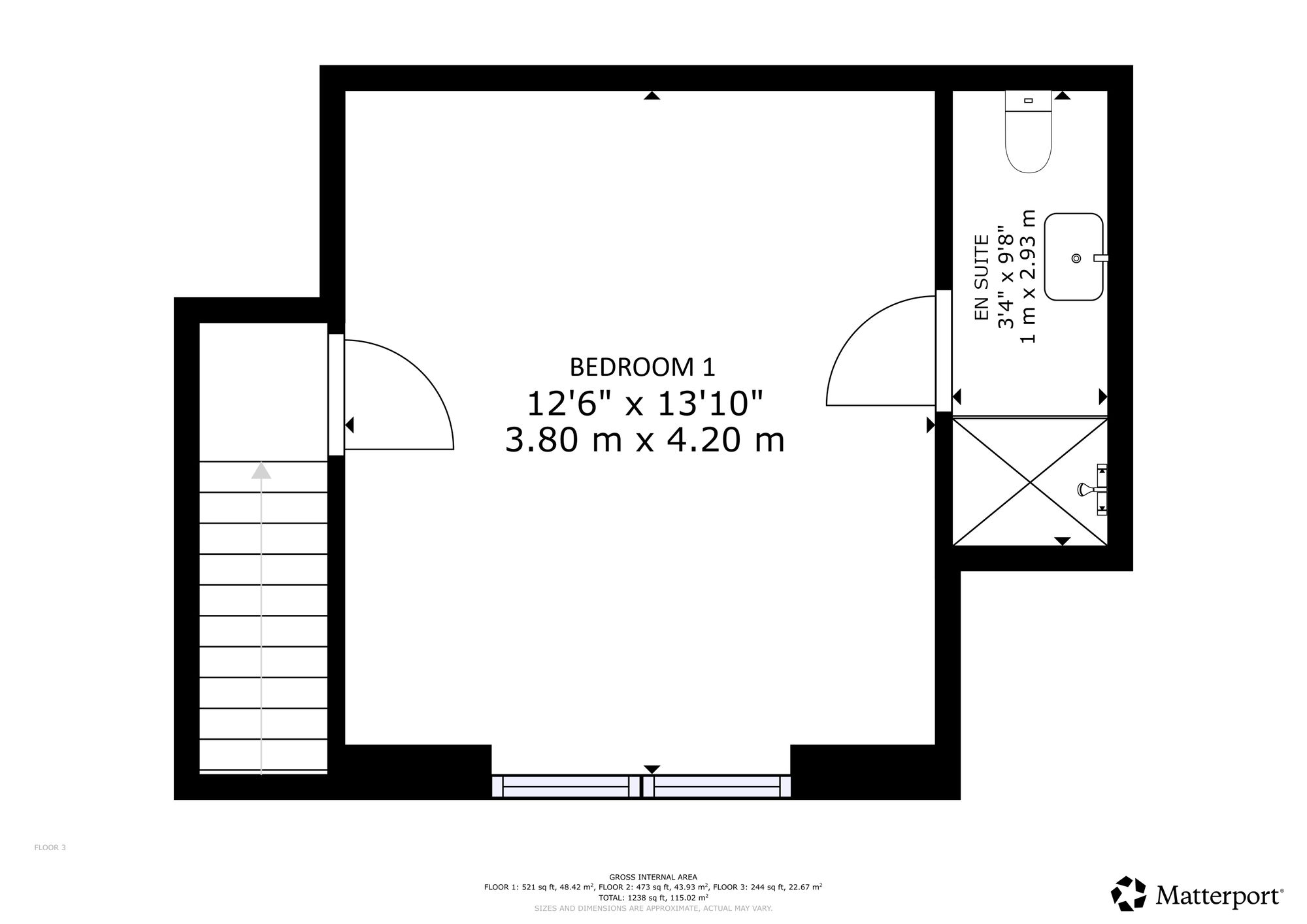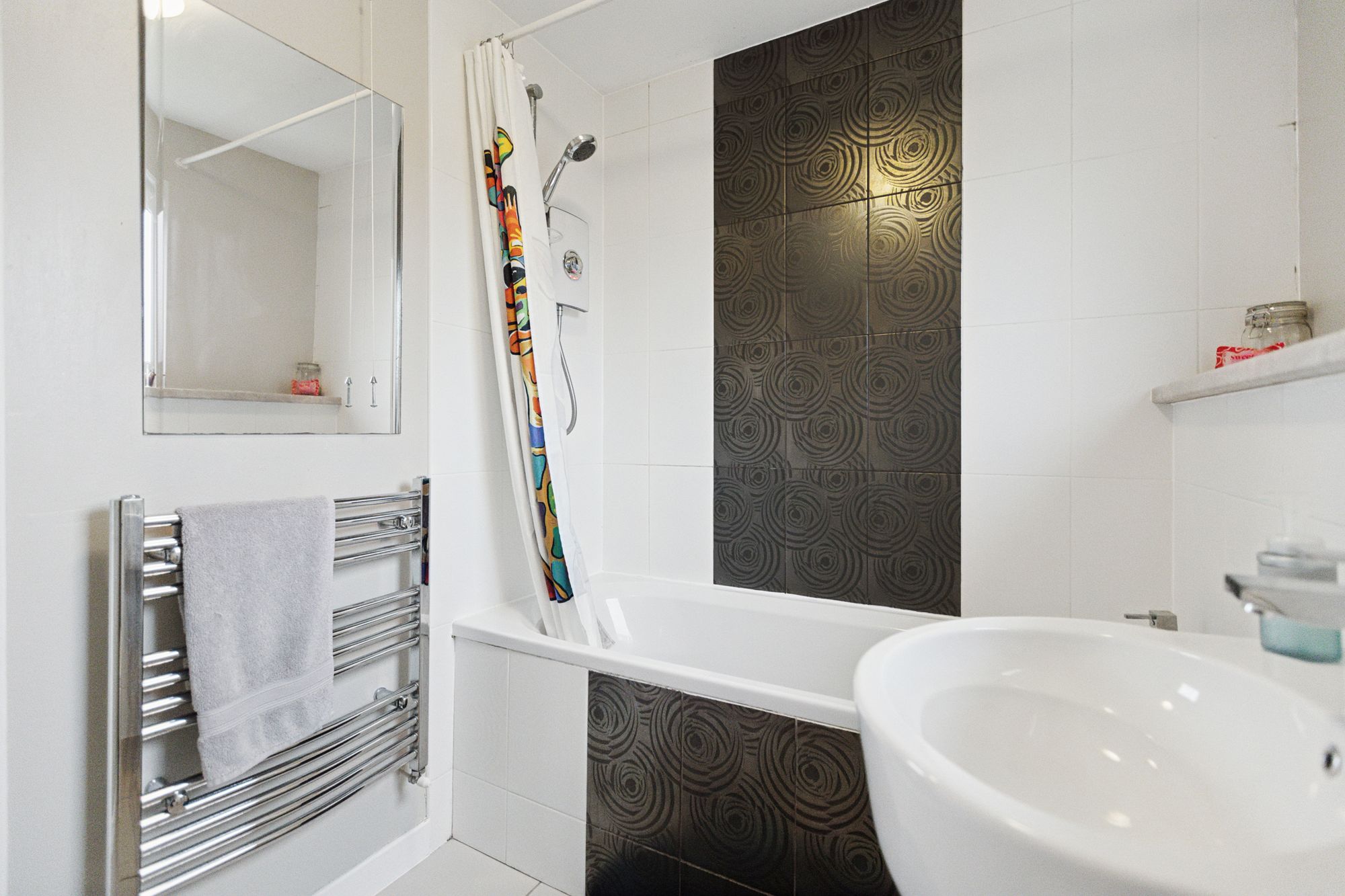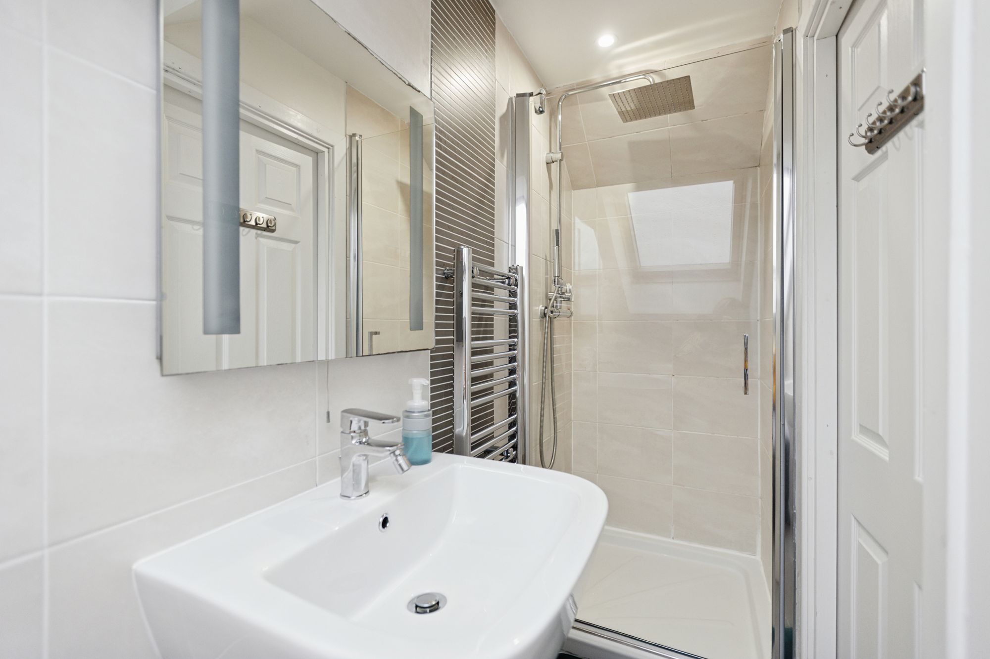 Upstairs, the modern landing leads to two spacious double bedrooms, each benefiting from fitted wardrobes or storage. The contemporary family bathroom is half-tiled and features a bath with overhead shower, wc and wash-hand basin. Additional storage is provided on this level by a built-in cupboard and a smaller under-stair cupboard. A standout feature of this property is the superb, professionally converted attic floor. Accessed via a permanent staircase, it offers a stunning master bedroom illuminated by Velux rooflights, creating a bright and inviting space. The stylish ensuite shower room includes a Velux window, walk-in shower enclosure with rainfall shower head, wc and vanity wash-hand basin. This level also benefits from thoughtful storage solutions, including an eaves cupboard and a dedicated boiler cupboard.