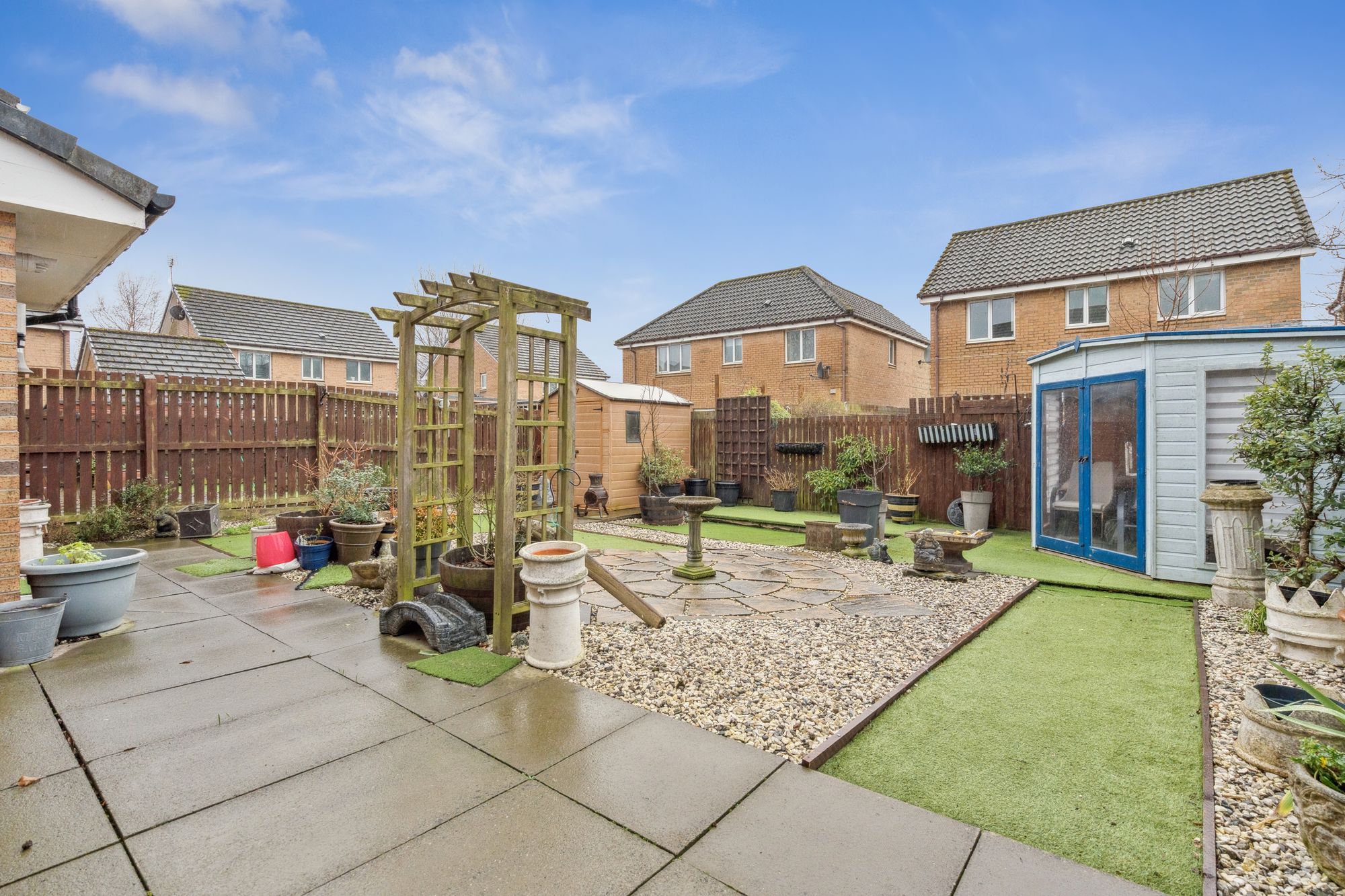 Externally, the property is complemented by private garden grounds to the front, side and rear, all bounded by timber fencing to provide a good degree of privacy. Off-street parking is available to the front via a private driveway, leading to a single integral garage. Local facilities and amenities are reasonably accessible nearby, and the location offers a convenient base within Stirling while remaining part of an established and well-regarded residential area.
