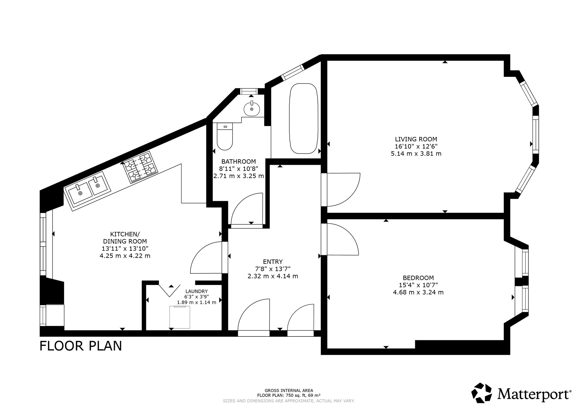 The bedroom is a generous double and benefits from a pleasant front facing bay window, whilst the bathroom is notably larger than average and fitted with a three-piece suite including separate bath and shower area.