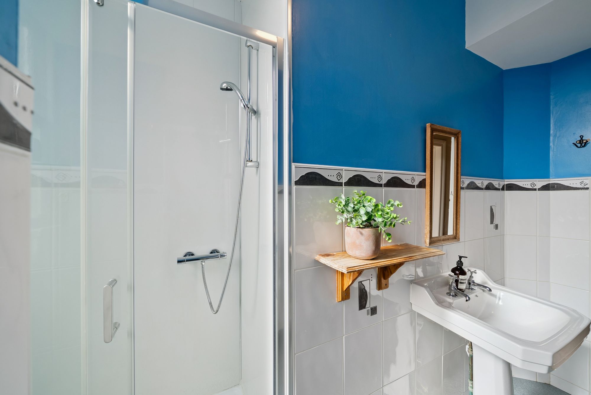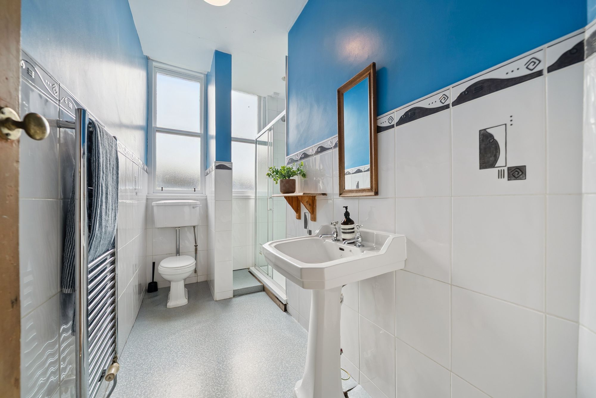 There are two well-sized double bedrooms, both benefiting from high ceilings and period detailing, along with a contemporary shower room.