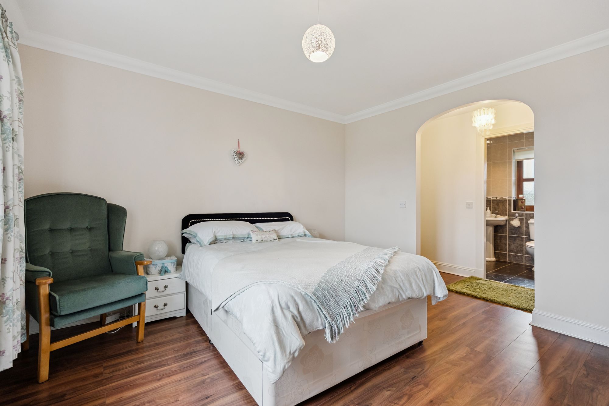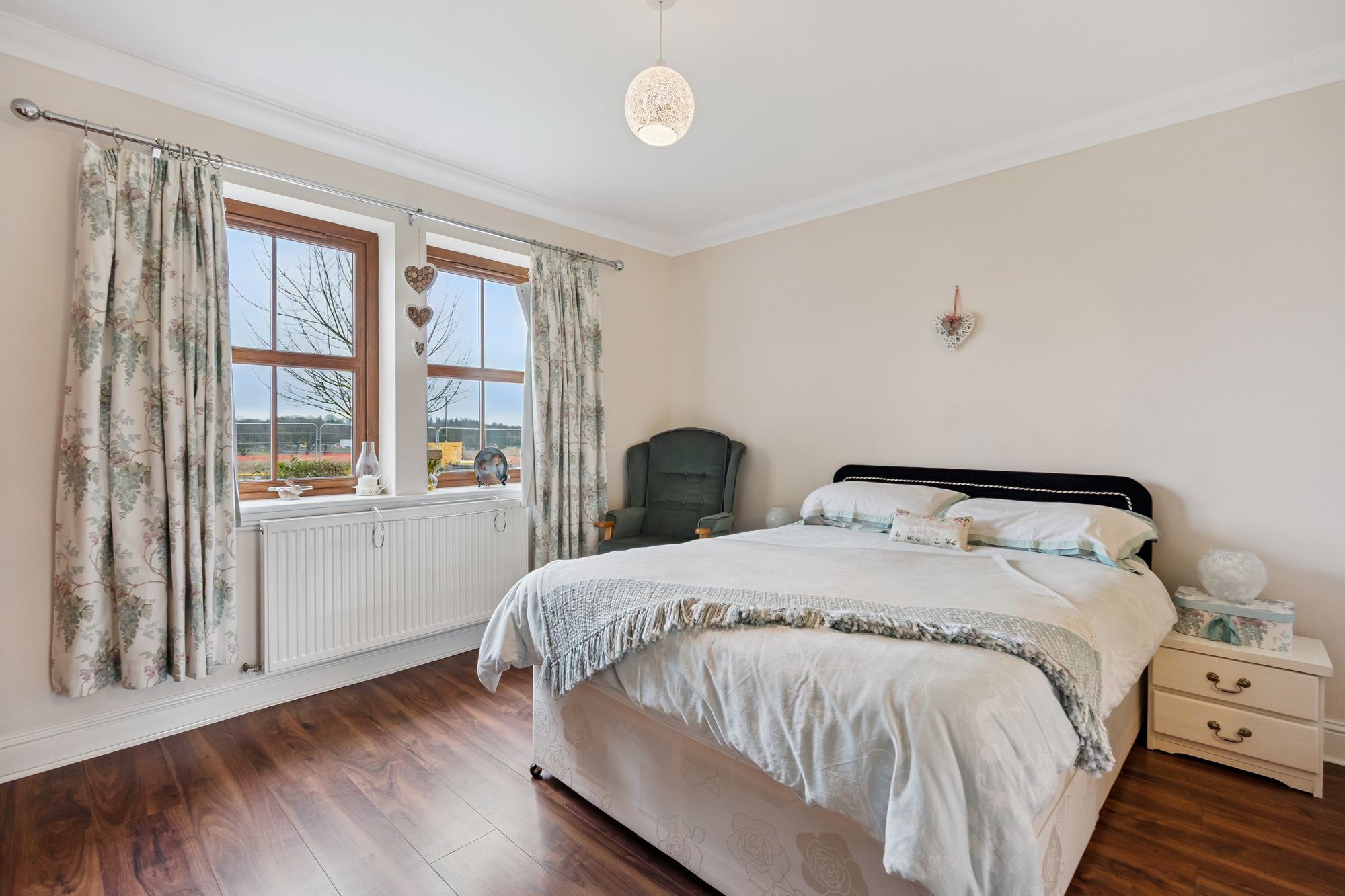 The property boasts four well-proportioned double bedrooms, each offering excellent natural light and flexible use for family members, guests, or home working. The principal bedroom benefits from a private ensuite and walk-in-wardrobe, providing a comfortable and practical retreat, while the remaining bedrooms are served by a well-appointed family bathroom finished to a high standard.