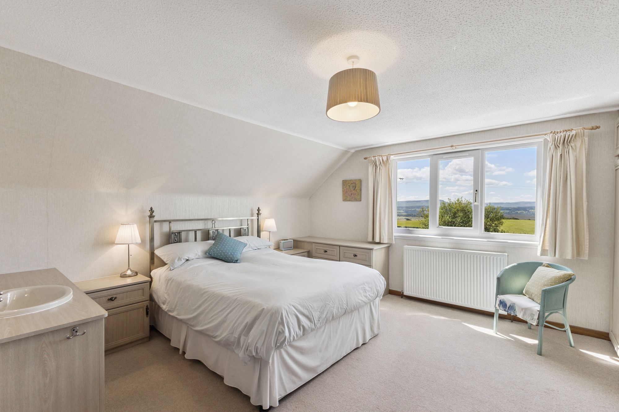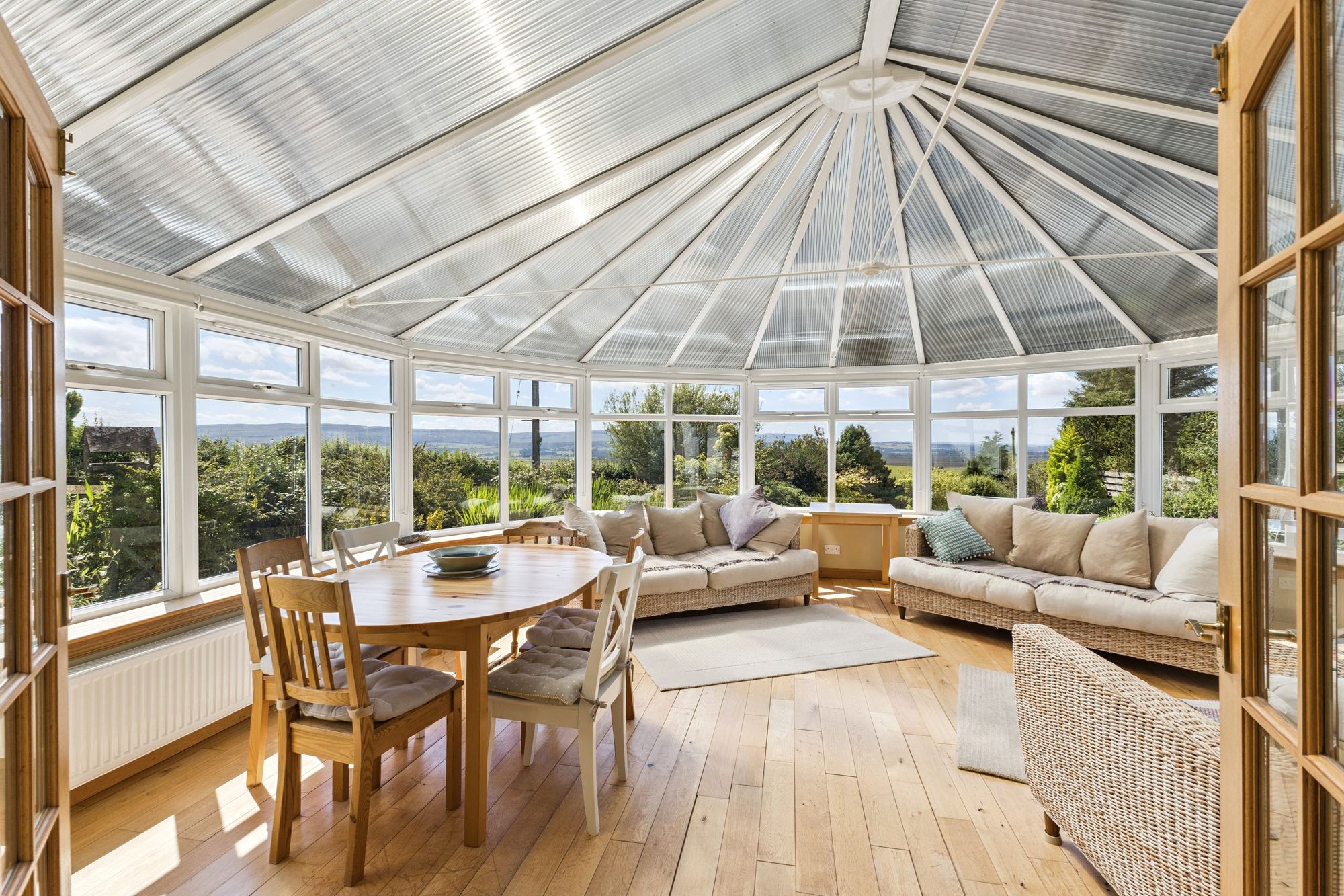 The ground floor features a welcoming entrance vestibule and hallway, leading to a bright and generous lounge, a well-appointed kitchen/diner ideal for family life and entertaining, and three comfortable bedrooms. A stylish family bathroom, a practical utility room, and a side porch enhance the home’s functionality. Large windows throughout frame the stunning vistas and flood the rooms with natural light. A charming conservatory, added to the side of the property, provides a light-filled space to enjoy the surrounding landscape in all seasons.