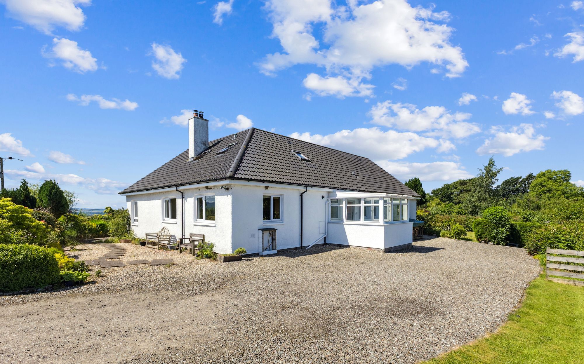 Enjoying a peaceful rural setting on the outskirts of Thornhill, The Braes is an impressive detached villa offering spacious and flexible accommodation across two levels. Surrounded by open countryside, the property boasts beautiful, uninterrupted views and combines the tranquillity of country living with convenient access to the wider amenities of Stirling.