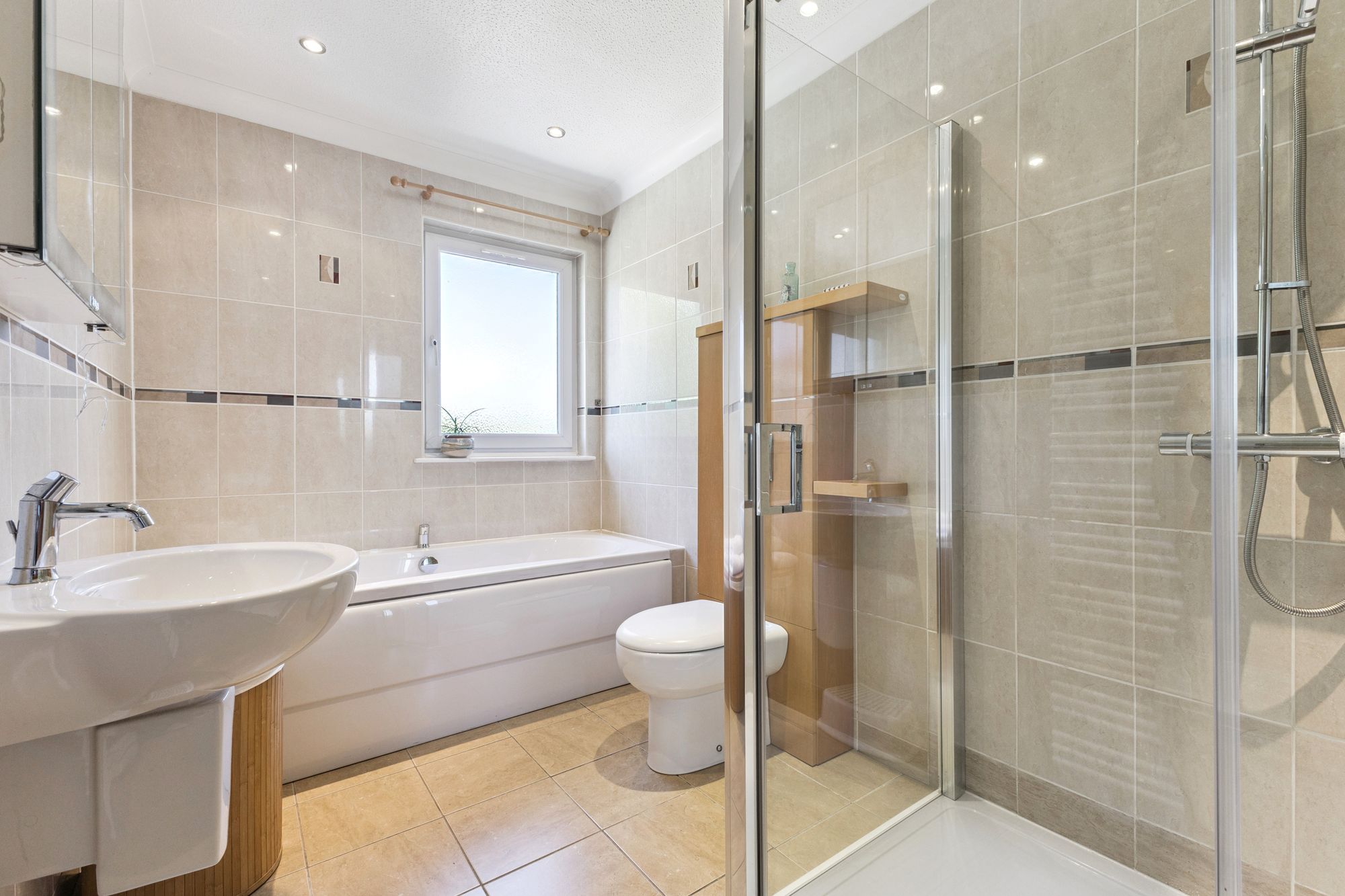 The upper floor continues to impress, offering a spacious master bedroom with en-suite shower room, a second en-suite bedroom, an additional bedroom, a study, and a separate shower room – offering excellent flexibility for larger families or home working.