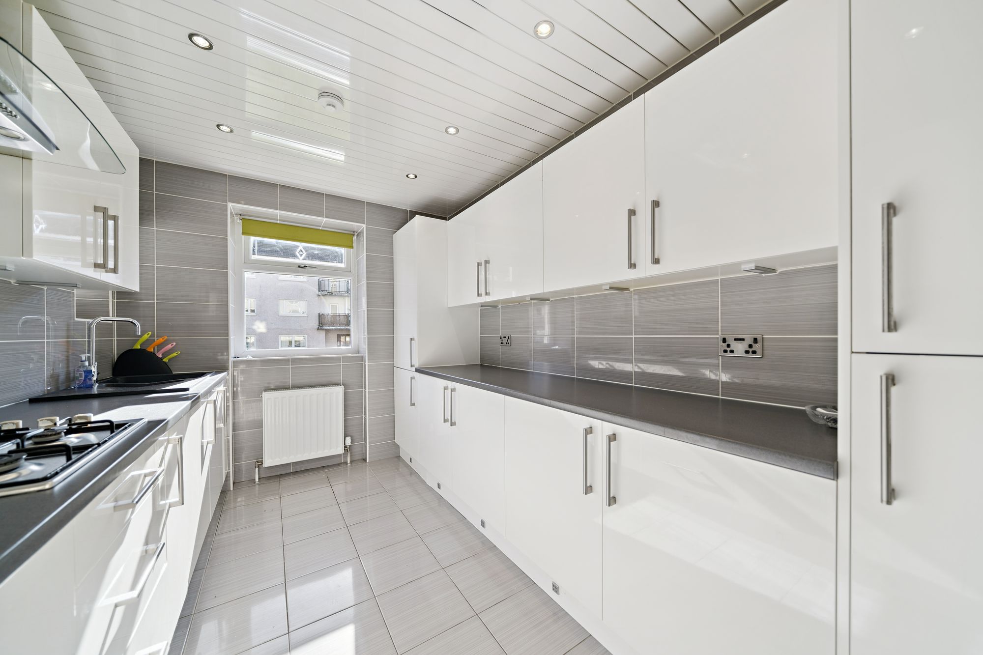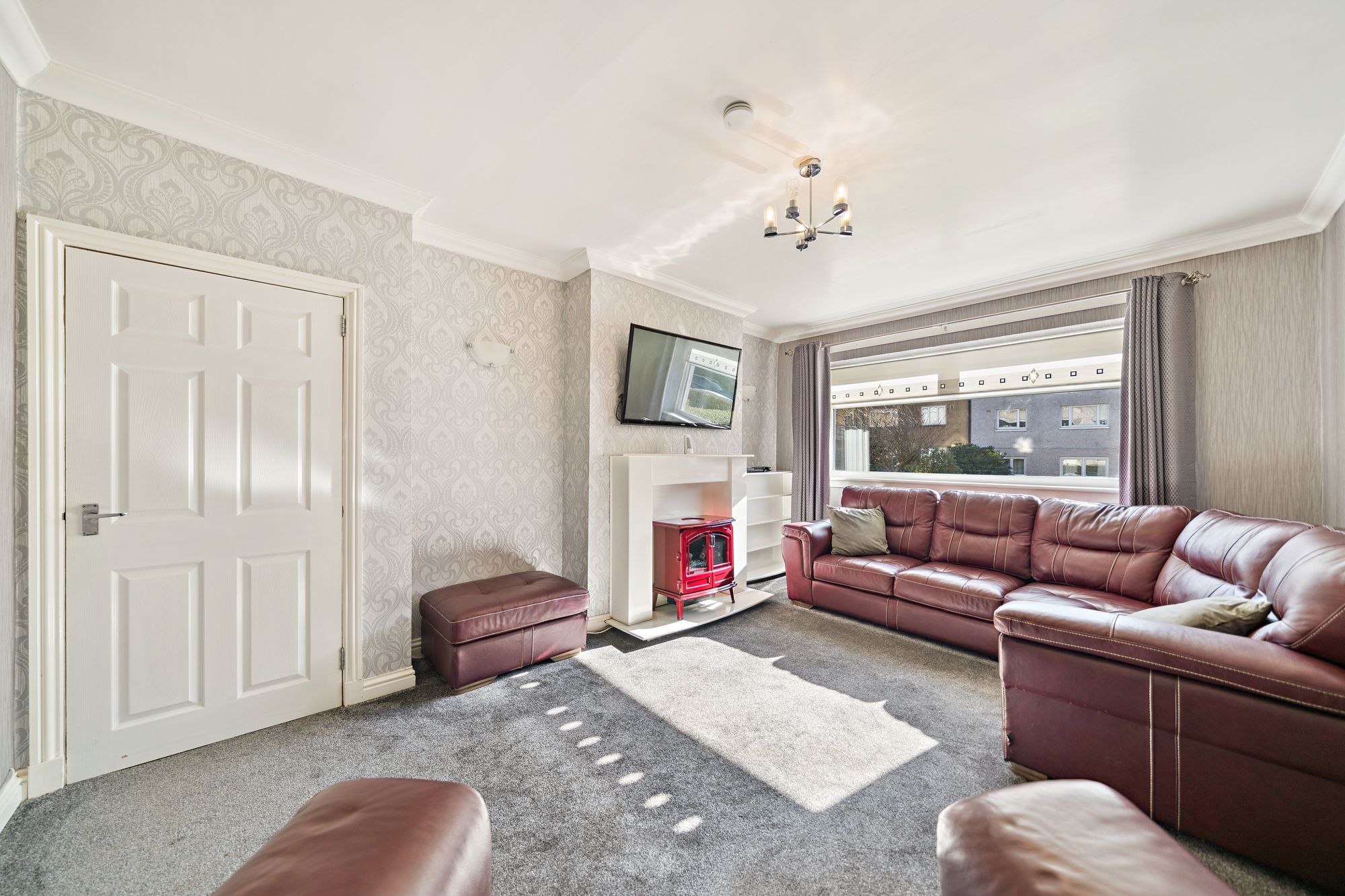 Merrylee is a beautiful suburb situated in the South of Glasgow, It is highly regarded as a family friendly area with a great array of local parks and Merrylee Primary School nearby. The home for sale is held within a well-maintained apartment block and is found in superb condition thanks to the efforts of the appointed factor. There is on street parking available to the front of the building. At the rear of the building, you will find an enclosed shared garden with lawn, drying area and refuse stores.