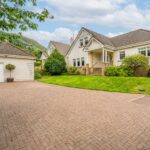 Externally, the villa enjoys private garden grounds to the front, side, and rear, enclosed with timber fencing. A private driveway provides off-street parking and leads to a single semi-detached garage of brick construction, accessed via an up-and-over door.