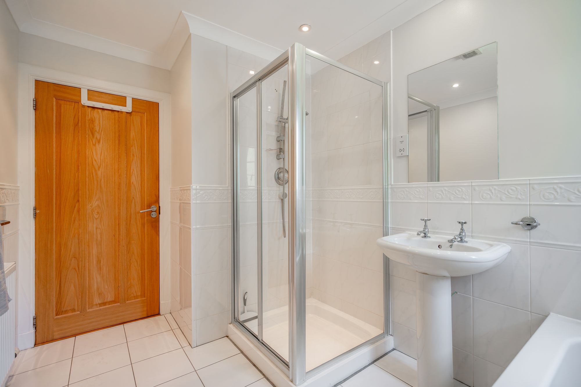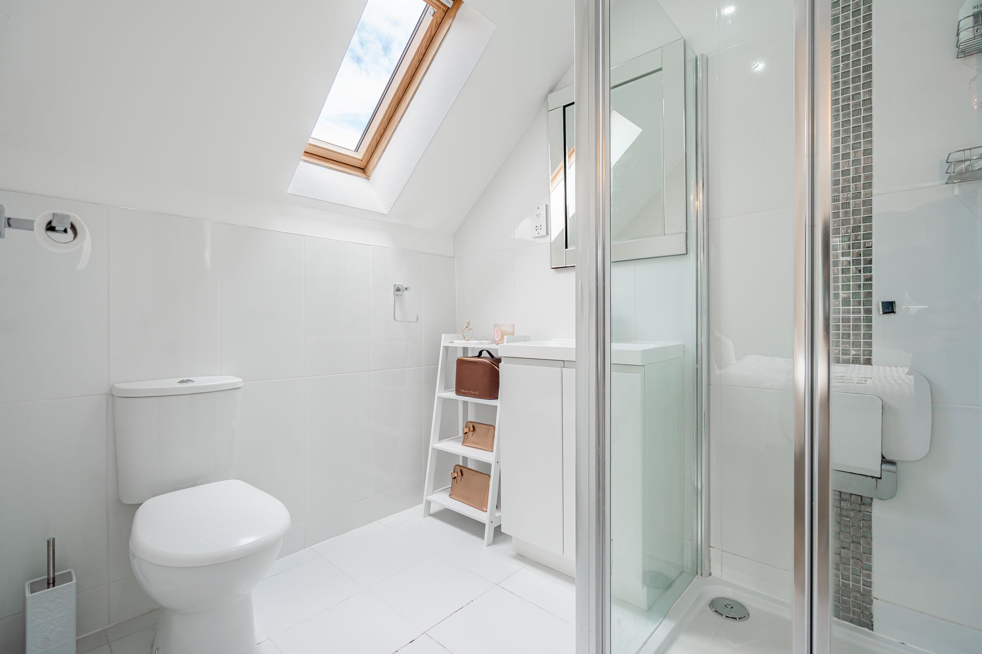Upstairs, the property features a spacious master bedroom complete with an ensuite shower room, as well as a guest bedroom which also benefits from its own ensuite facilities. This upper layout ensures privacy and flexibility for both family members and visitors.