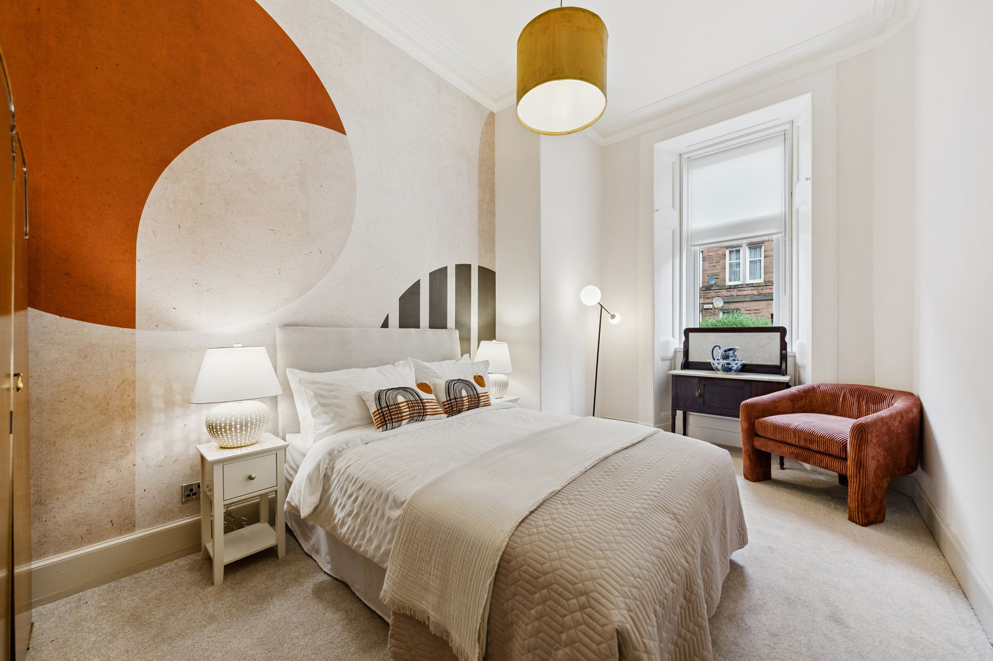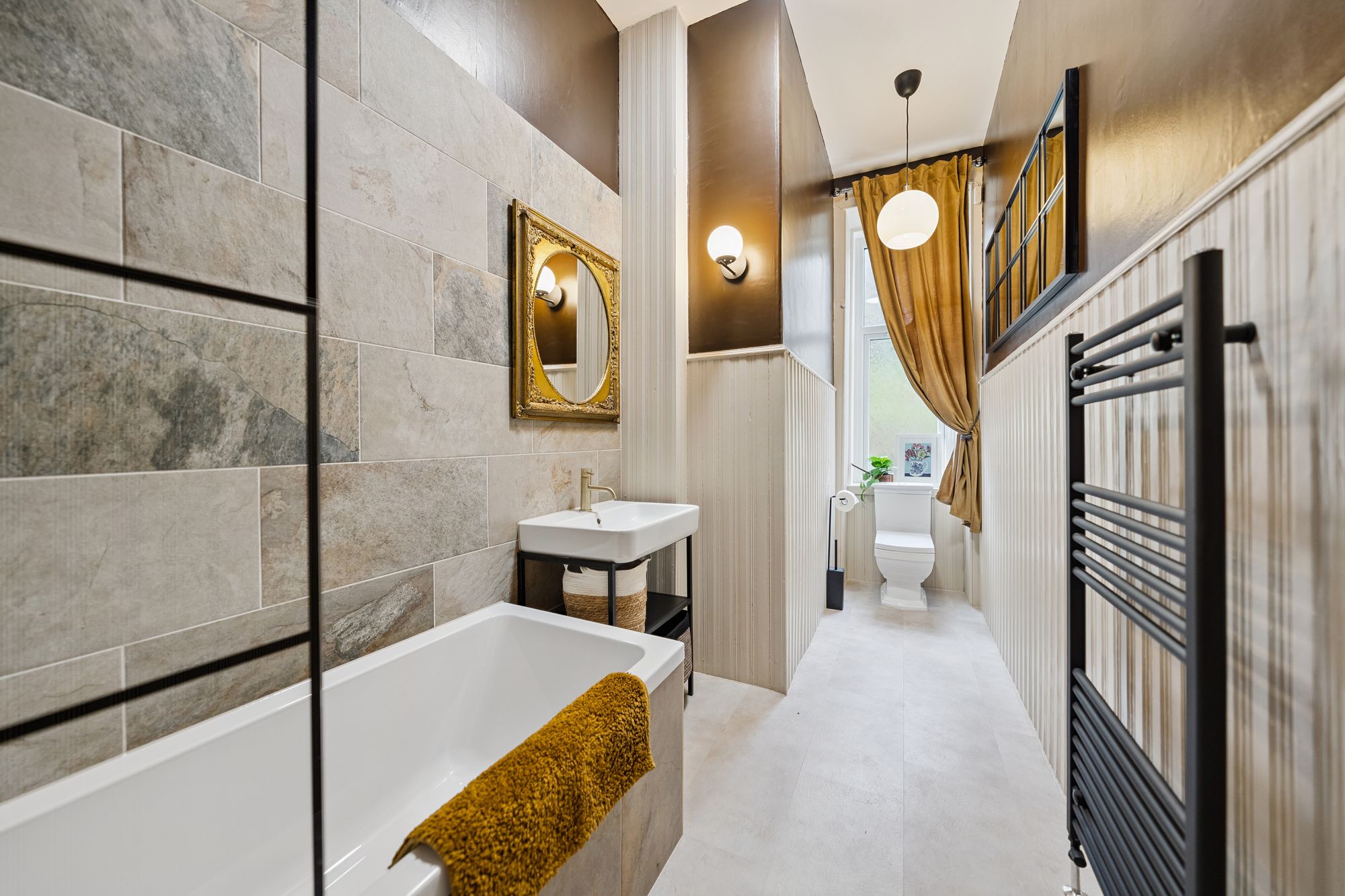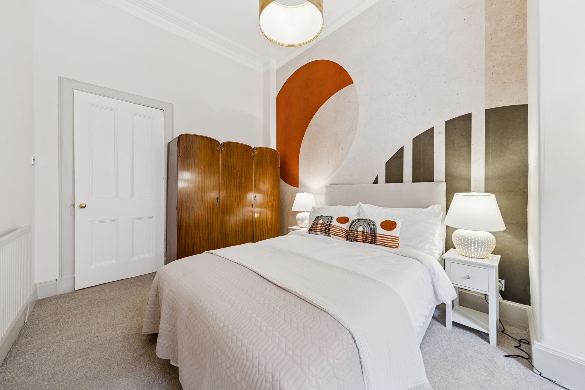 The accommodation further extends to two well-proportioned double bedrooms, including a particularly spacious principal bedroom which benefits from a walk-in wardrobe, and a stunning, fully tiled bathroom featuring a contemporary suite and high-quality fittings and tiling.