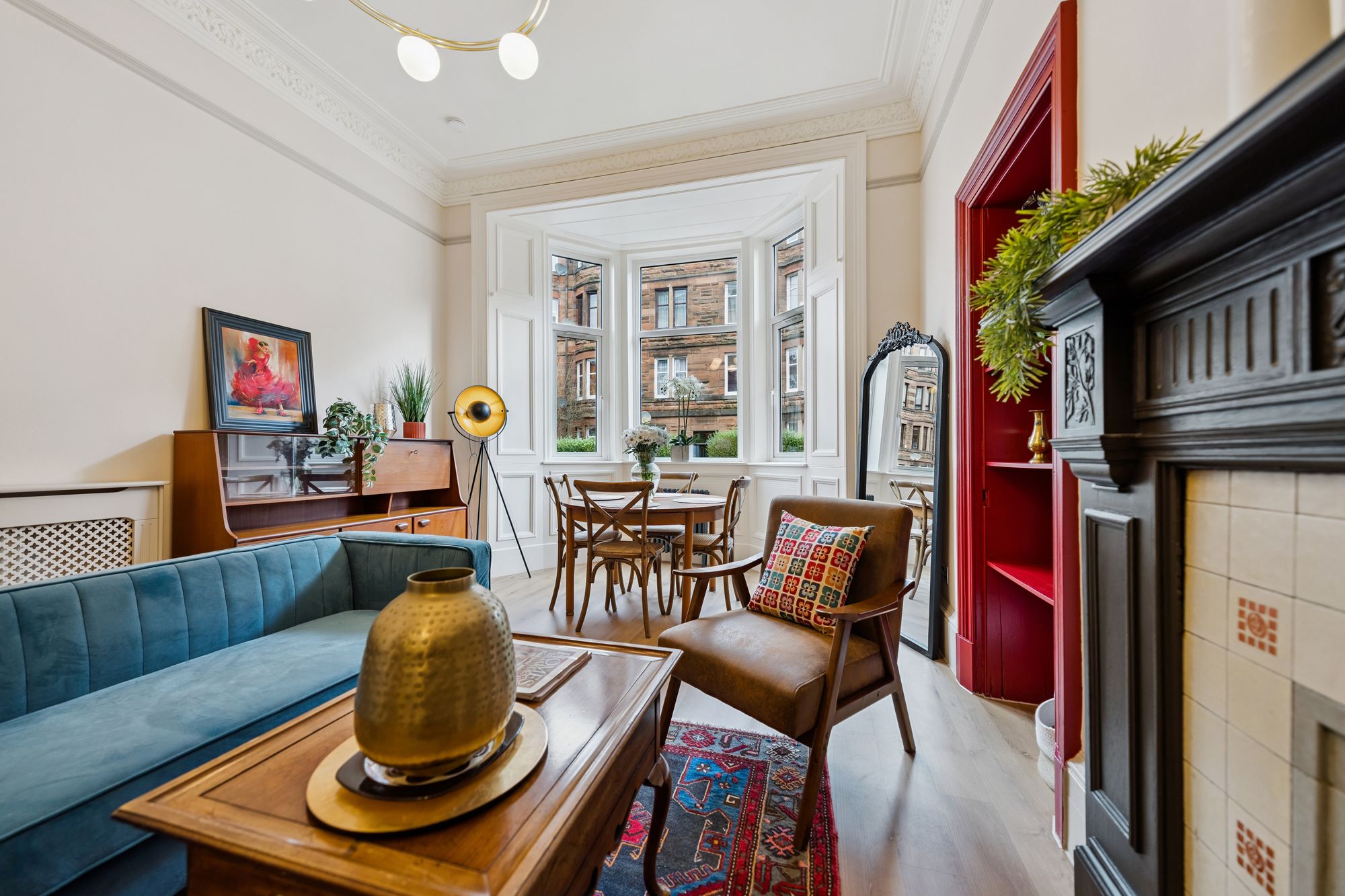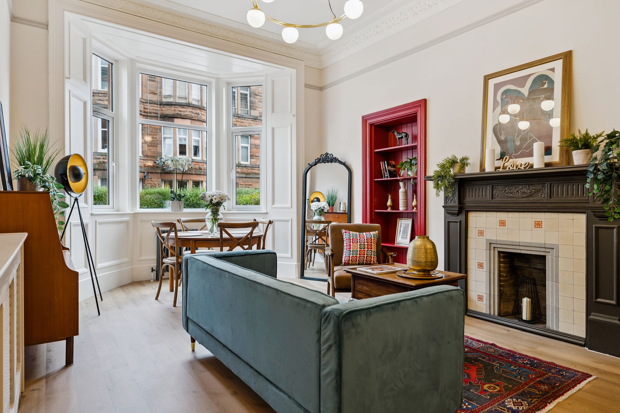 Positioned within a popular and well-established pocket of Glasgow’s Southside, this beautifully presented and particularly spacious two bedroom tenement flat enjoys a highly convenient setting with excellent local amenities and transport links close at hand. The property is ideally placed for access to a wide range of cafés, bars and independent shops, while nearby train stations and regular bus routes provide quick and easy connections into Glasgow City Centre. A number of well-kept parks are also within easy reach.
