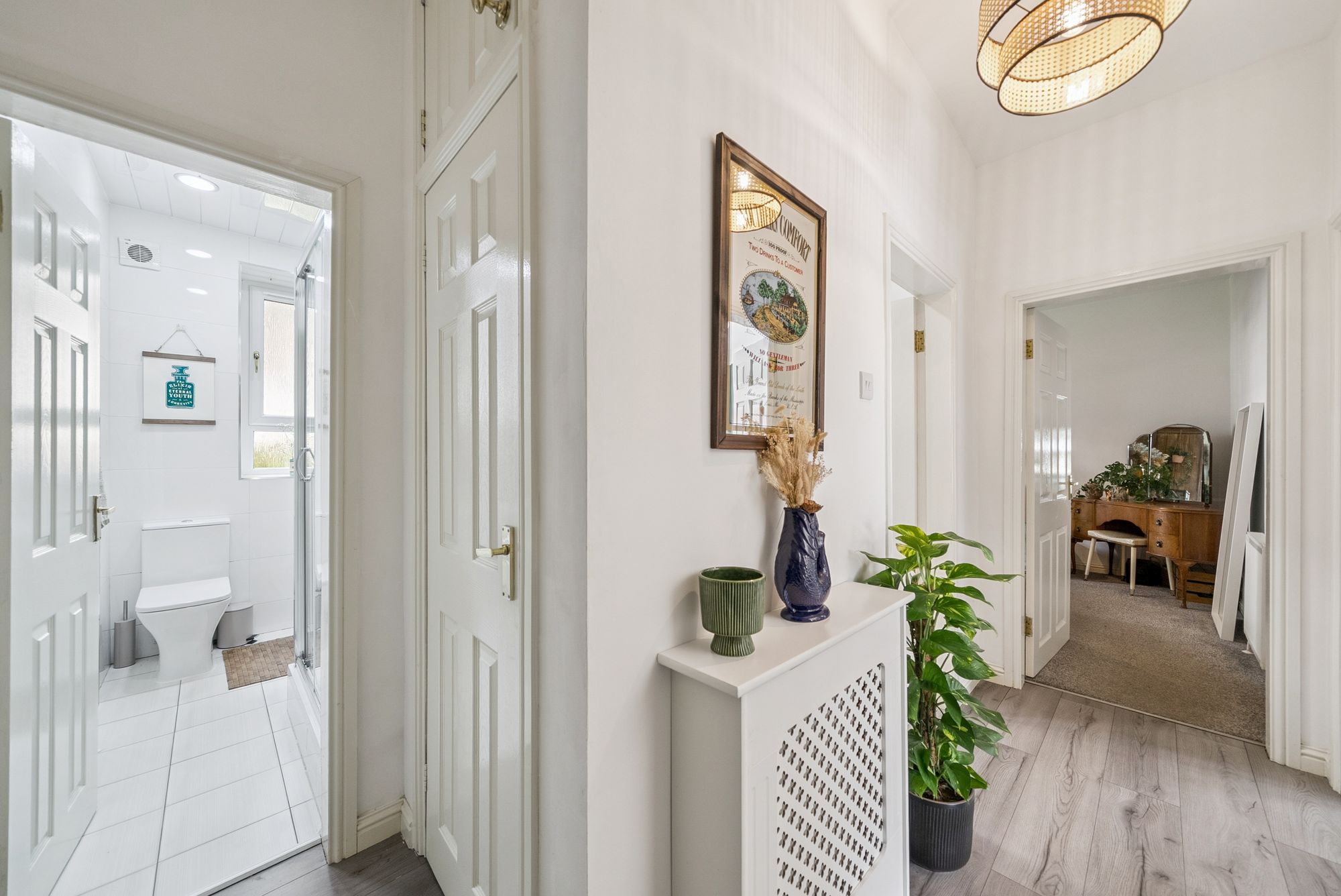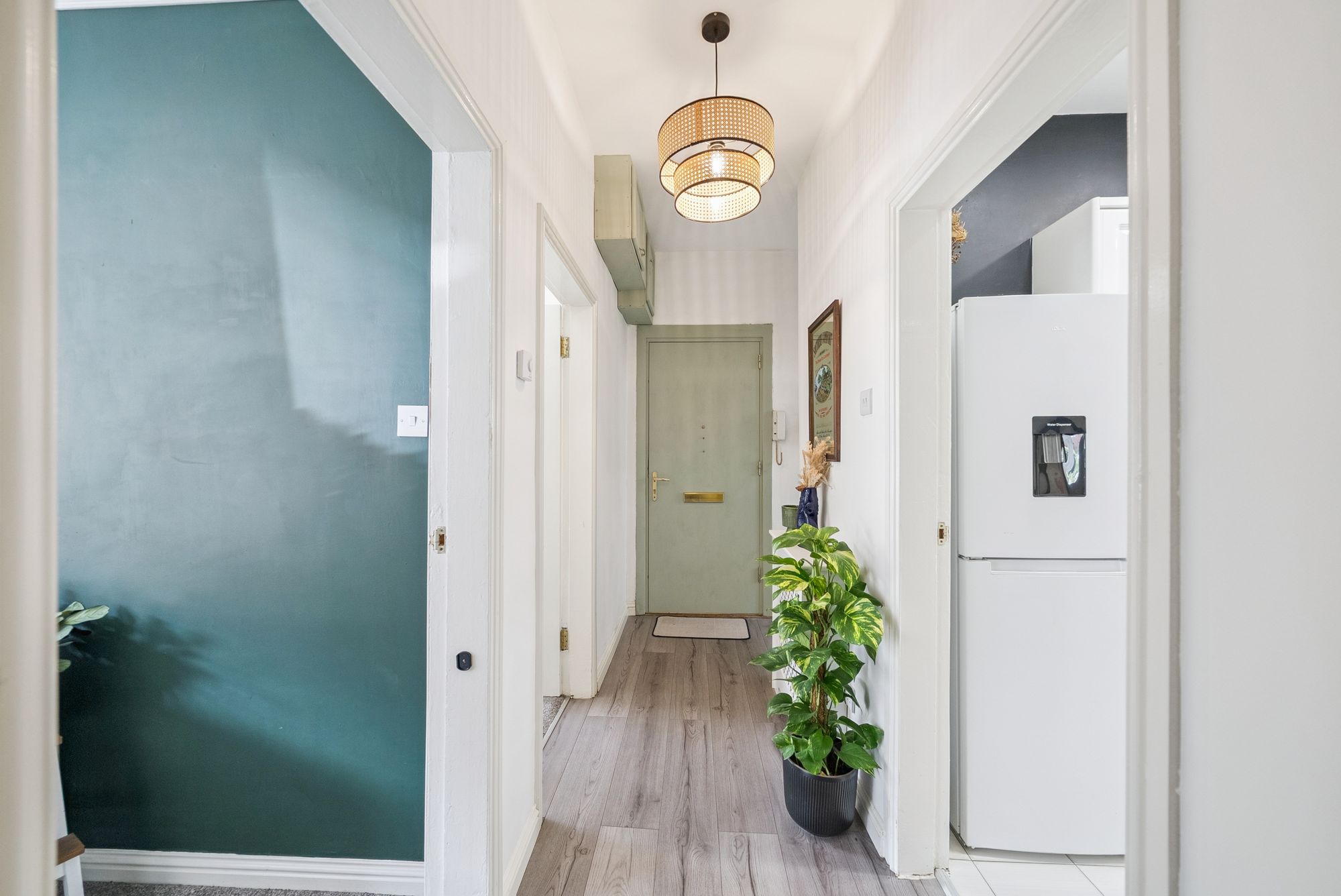 Accessed via a secure entry system, the flat is presented in walk-in condition, having been carefully maintained by the current owners. The spacious and well-laid-out interior boasts a welcoming reception hall with a convenient storage cupboard, leading into a bright and airy bay-windowed lounge perfect for relaxing or entertaining.