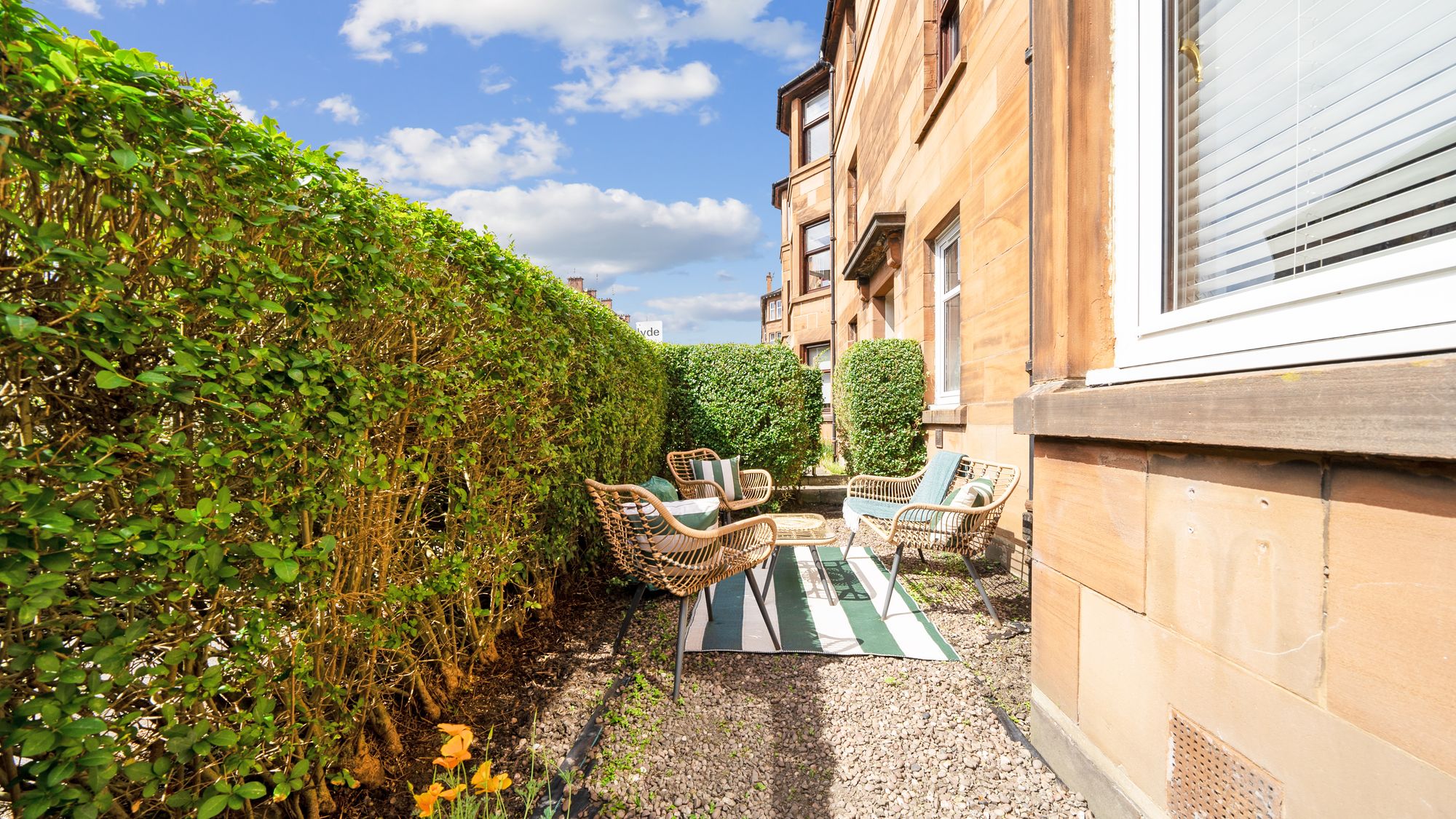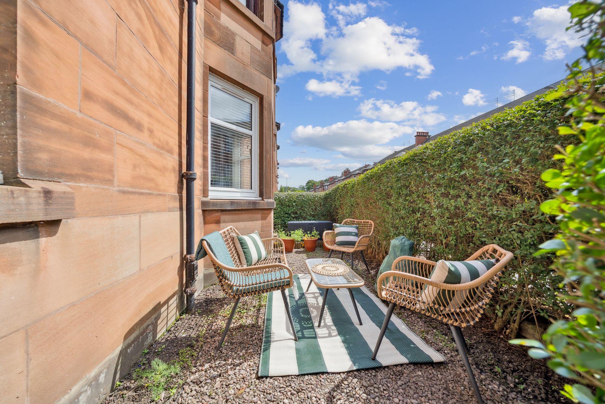 Set within a handsome red sandstone tenement in one of Glasgow’s most sought-after Southside locations, this immaculate two-bedroom, ground floor flat offers a superb blend of traditional charm and contemporary style with the added benefit of a private front garden. Situated in the vibrant and well-connected area of Battlefield, the property enjoys excellent public transport links into Glasgow City Centre and beyond, making it ideal for both professionals and first-time buyers alike.