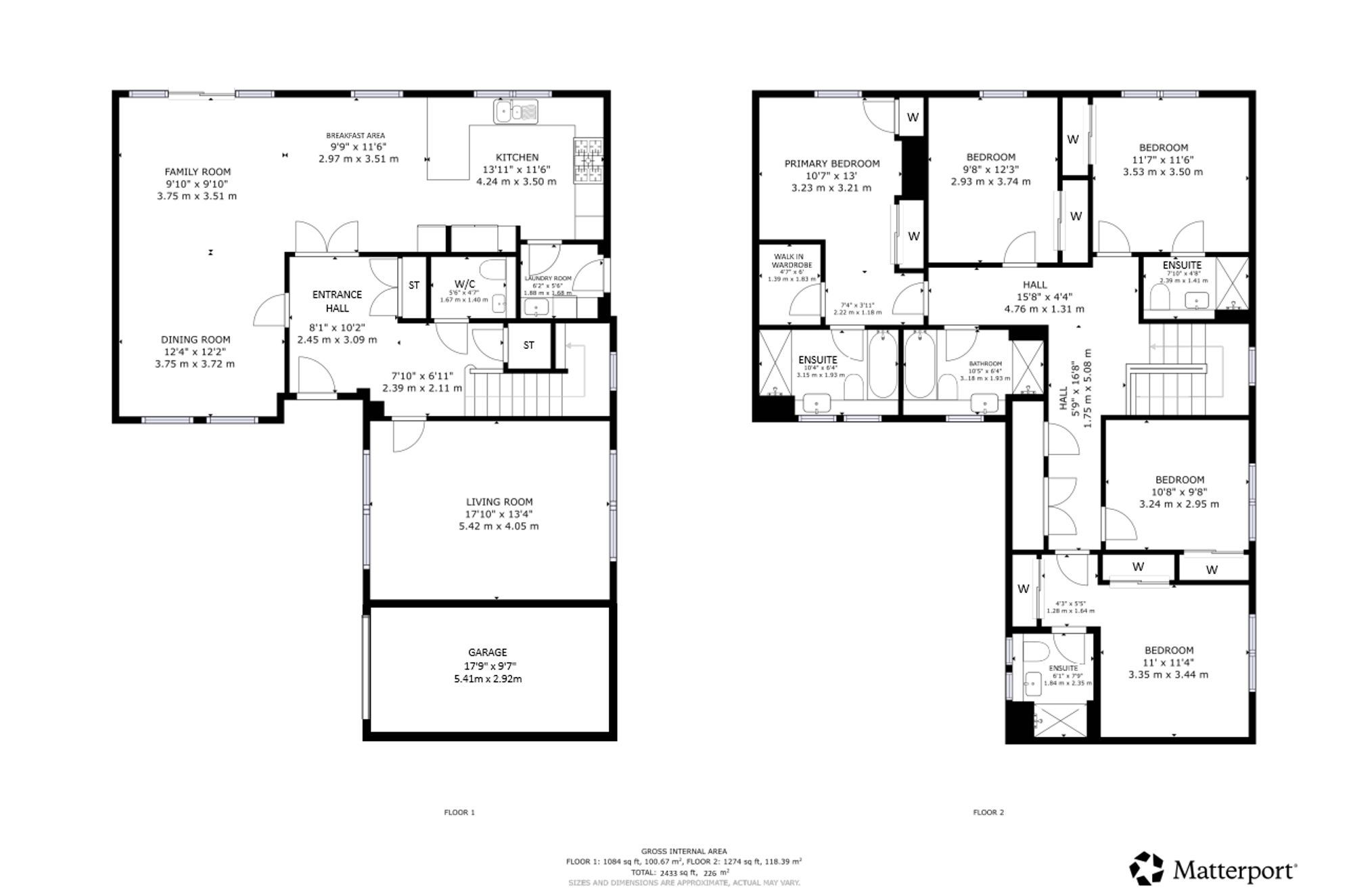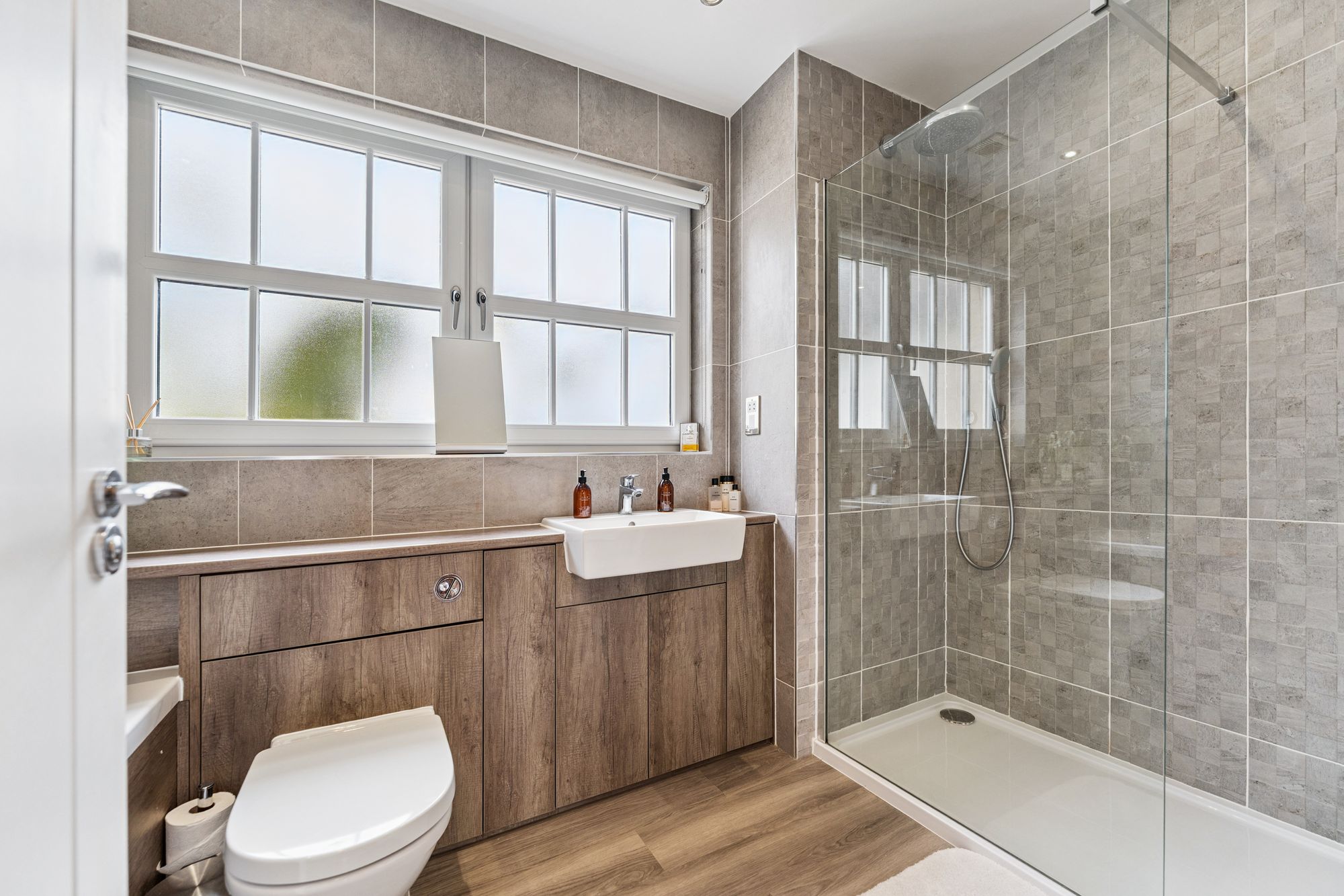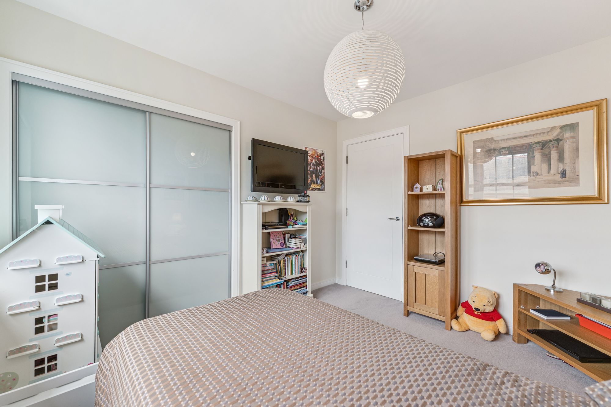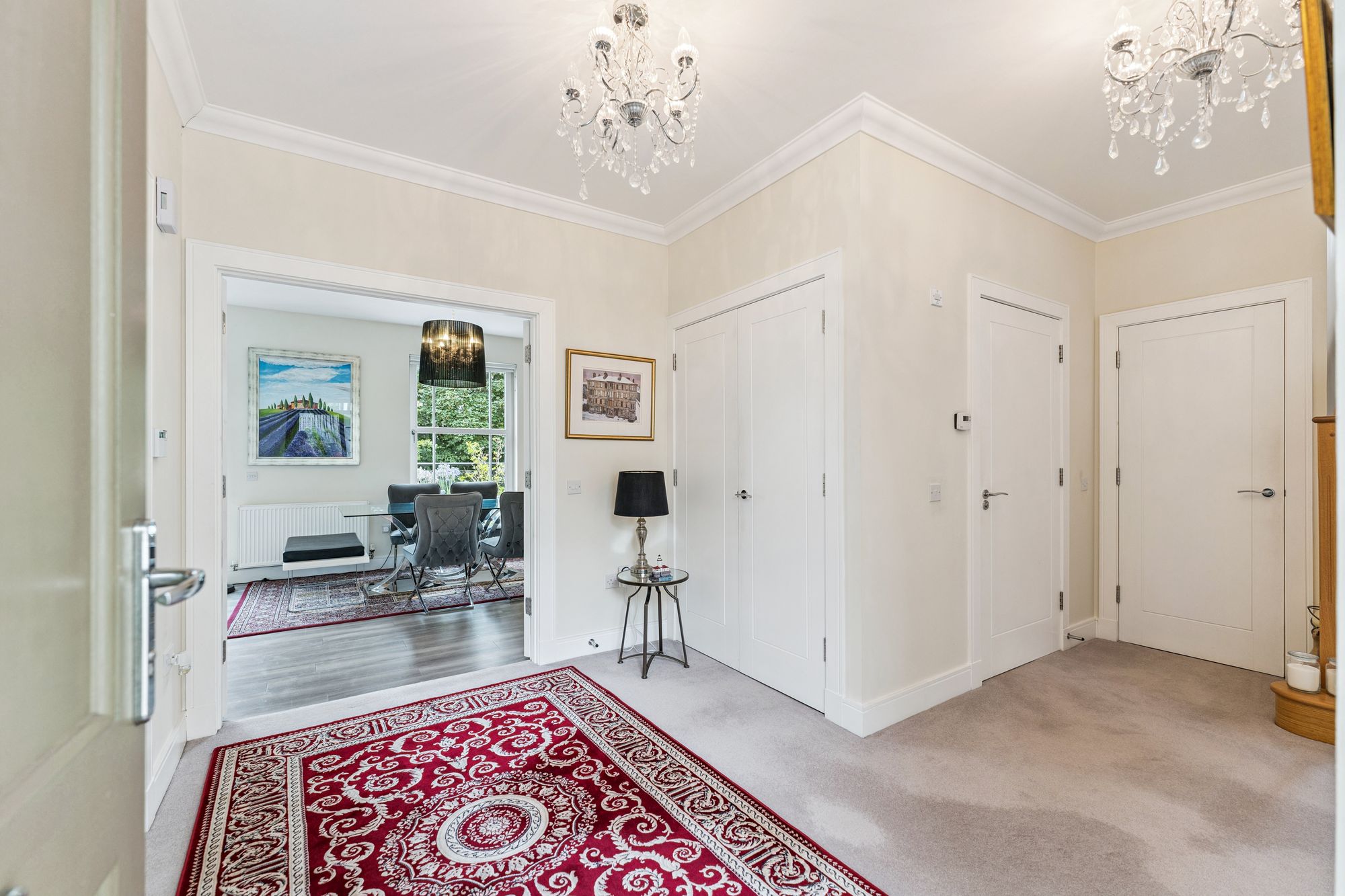 Upstairs, the property offers five well-proportioned bedrooms, four of which benefit from fitted wardrobes. The principal bedroom is particularly impressive, featuring a stylish dressing area and a private en-suite bathroom. Two further bedrooms also enjoy en-suite shower rooms, while the remaining bedrooms are served by a modern family bathroom.