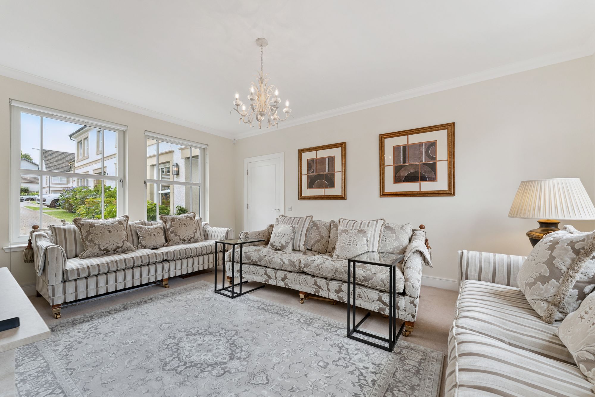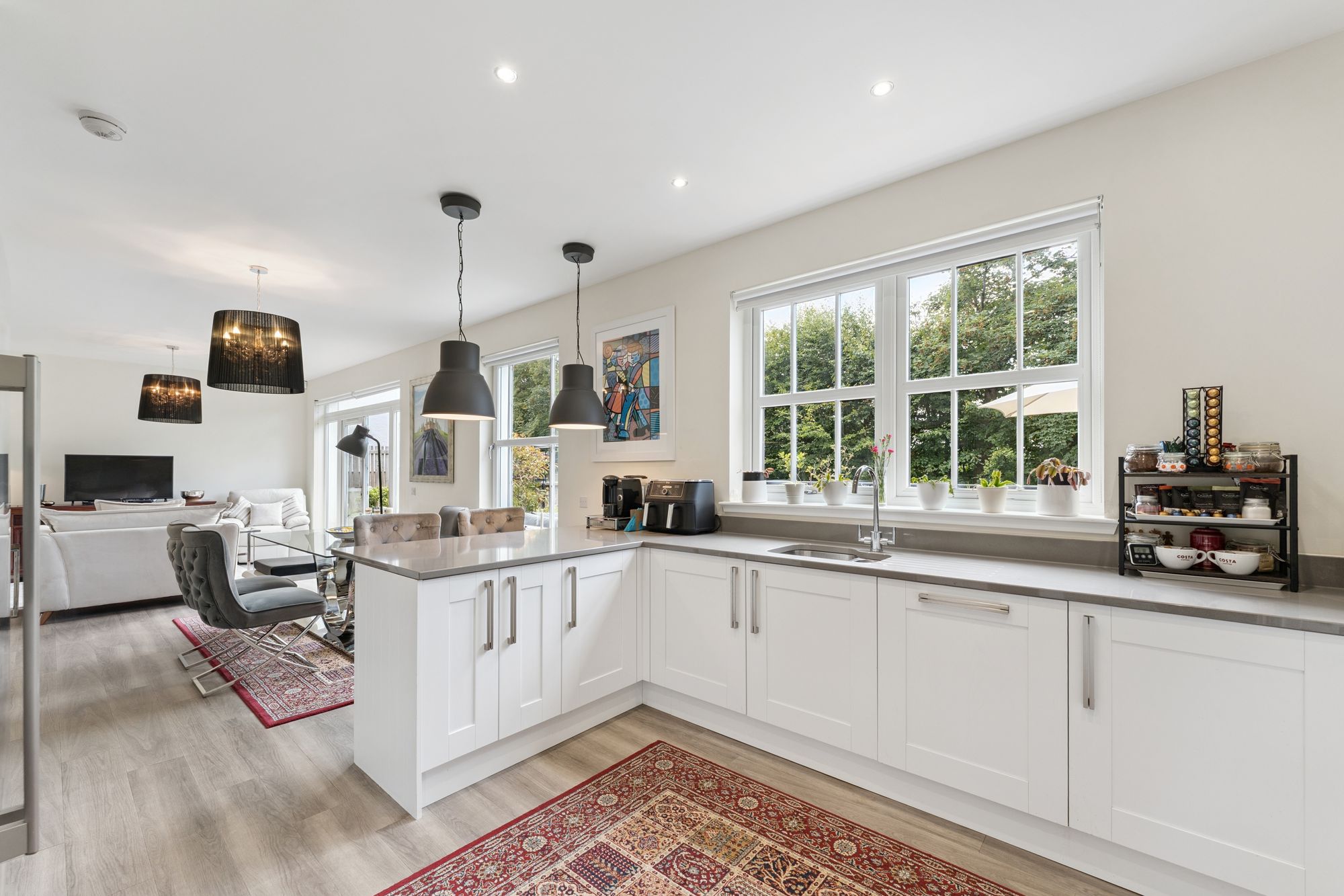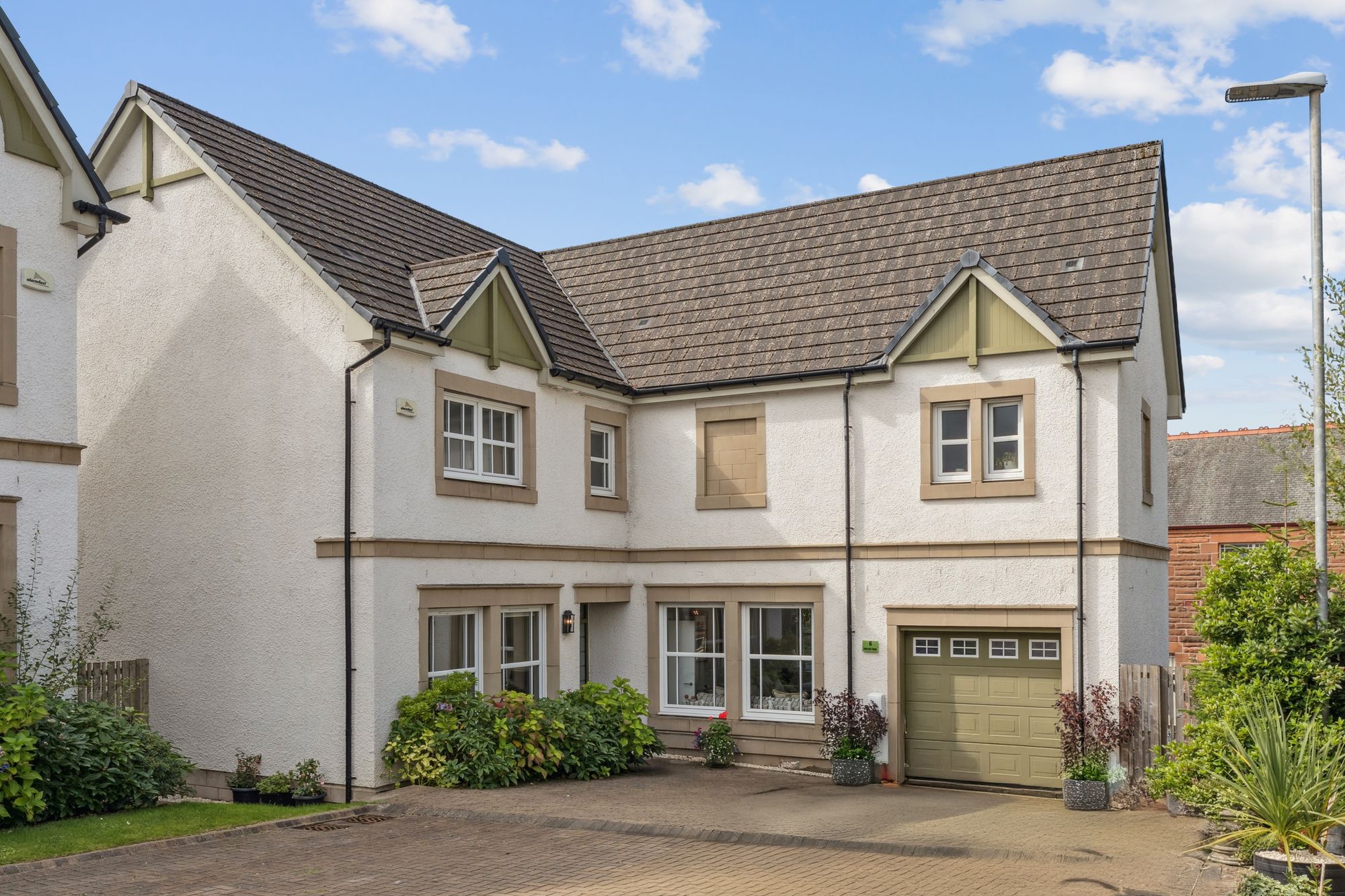 6 Boclair Brae is an outstanding modern five-bedroom detached family home, situated within an exclusive Westpoint Homes development in Bearsden. Set on a generous corner plot in a quiet, private cul-de-sac just off Boclair Road, this property offers spacious and flexible living accommodation over two levels, along with a beautifully landscaped south-facing rear garden.