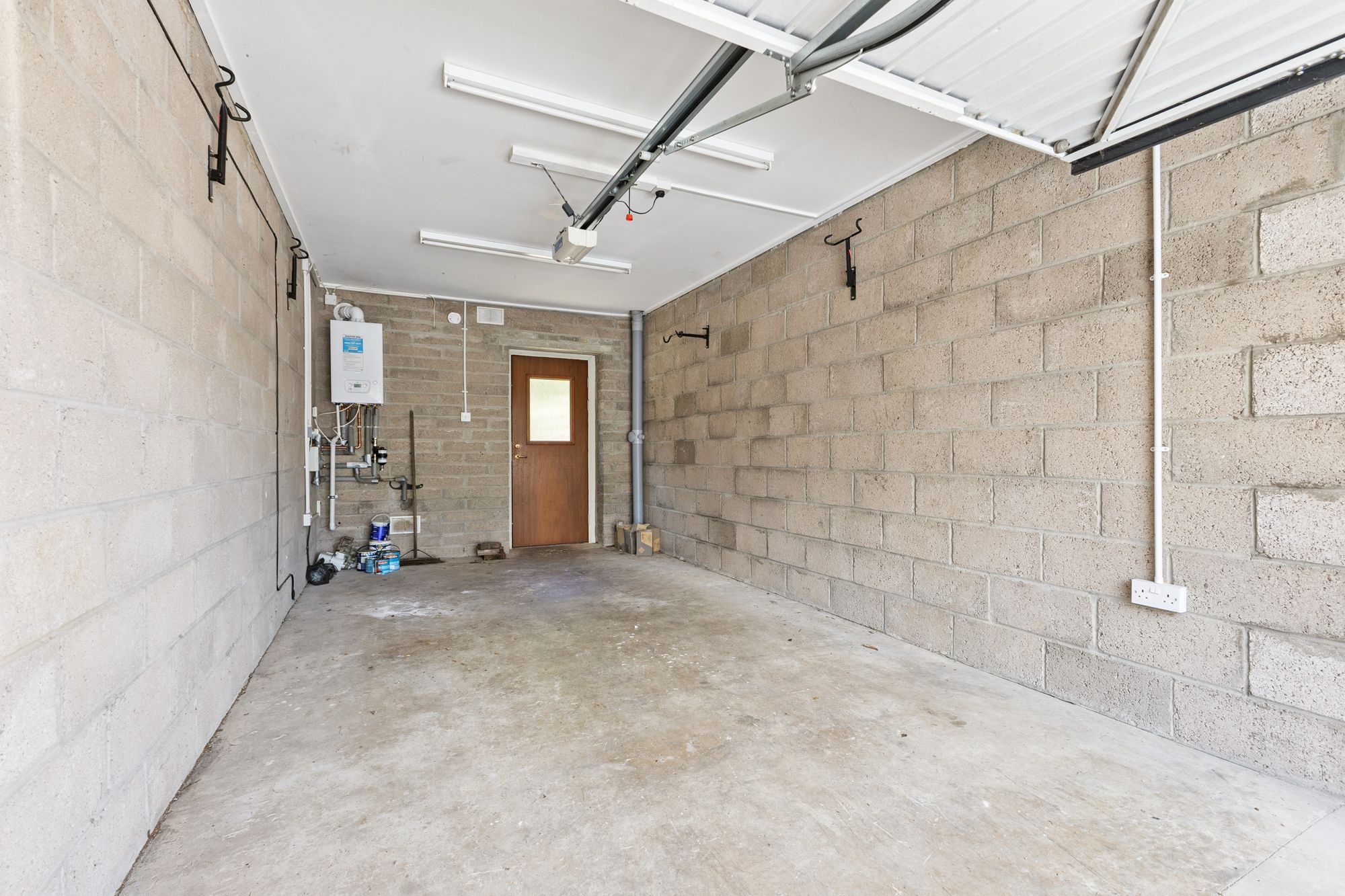 Outside, the rear garden extends along two sides of the property and features two patio areas—ideal for relaxing or entertaining—as well as a designated space in the corner ready for a greenhouse, perfect for those with green fingers. At the front, the property benefits from private parking for two vehicles, in addition to the integral garage.