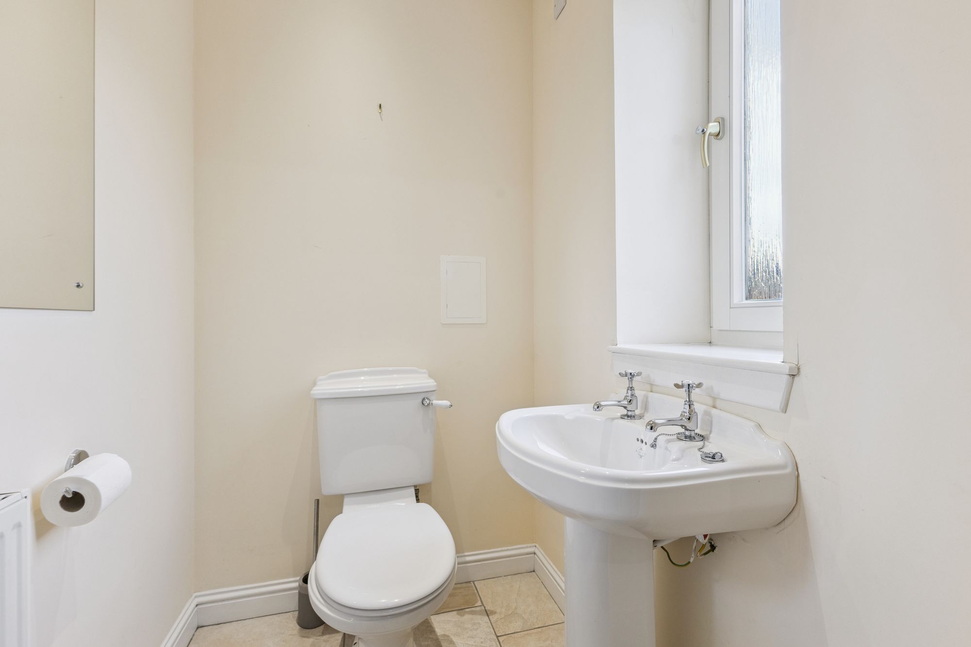 The ground floor welcomes you with a bright entrance vestibule leading into a spacious hallway, all laid with solid oak flooring. The comfortable lounge features a wood-burning stove, creating a warm and inviting focal point. The stylish open-plan kitchen and dining area is equipped with built-in NEFF appliances, enhanced by additional lighting both inside and beneath the cabinets—perfect for everyday living and entertaining. A utility room and cloakroom with WC complete the ground floor, which also benefits from LED lighting throughout. The integral single garage adds valuable storage or secure parking.