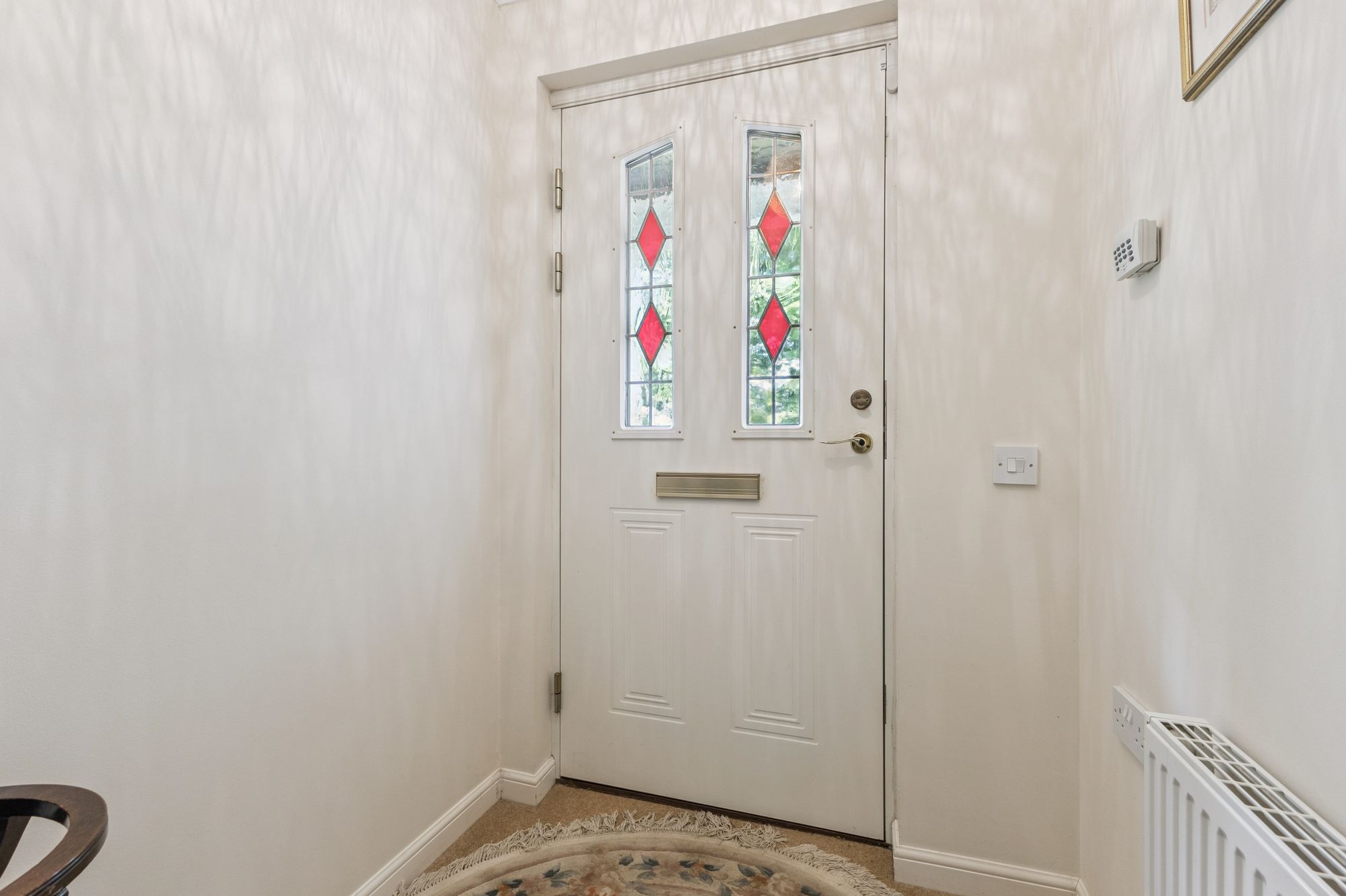 Set within generous garden grounds and featuring a private driveway, the property enjoys a tranquil position with a wonderful sense of space both inside and out. Upon entering, you're welcomed by a bright entrance vestibule leading into a central hallway, complete with storage and loft access.