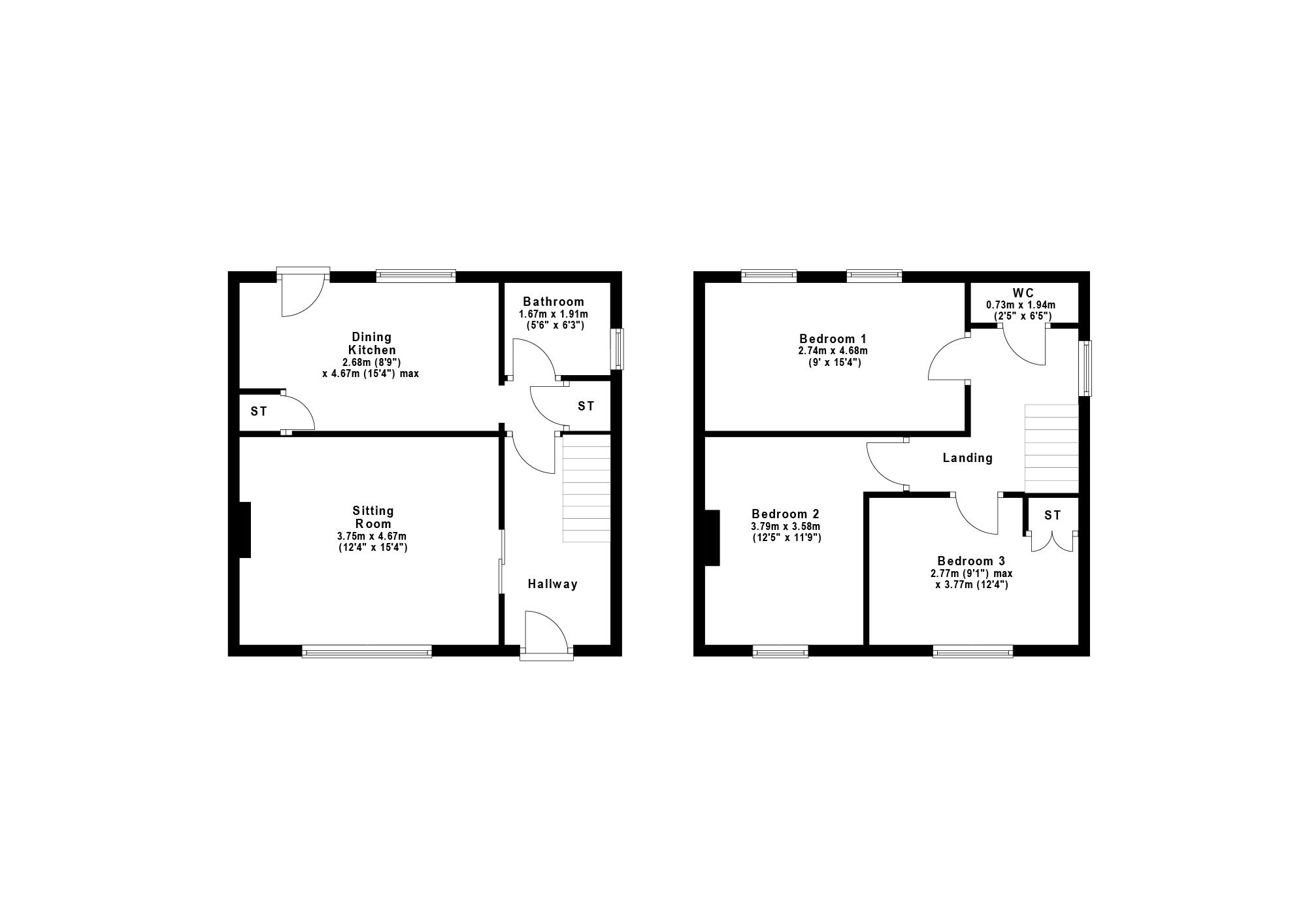 Bedroom Two 12’5” x 9’4” 3.78m x 2.84m