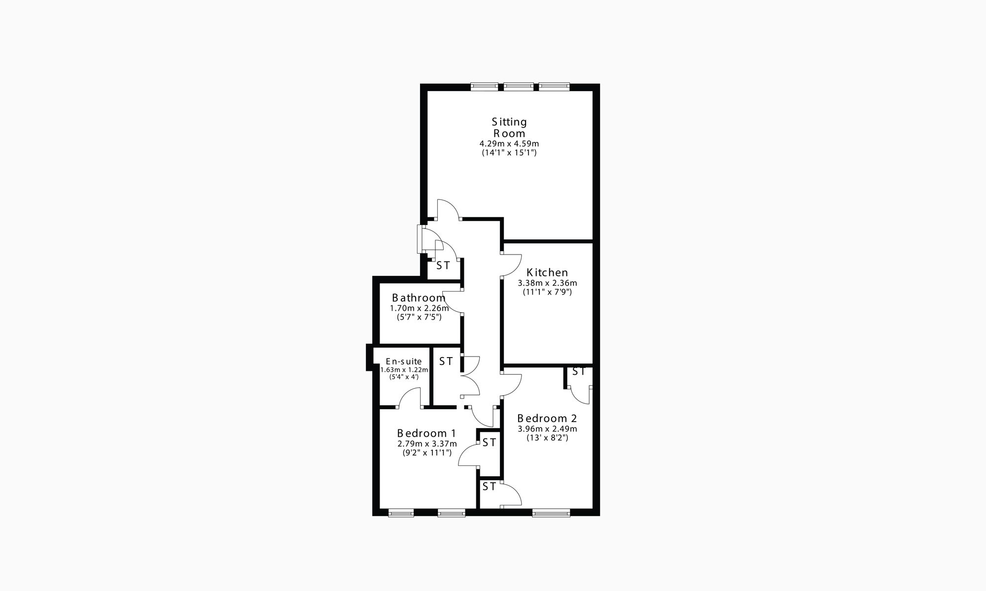 Bedroom Two 13’0” x 8’1” (at widest) 3.96m x 2.46m