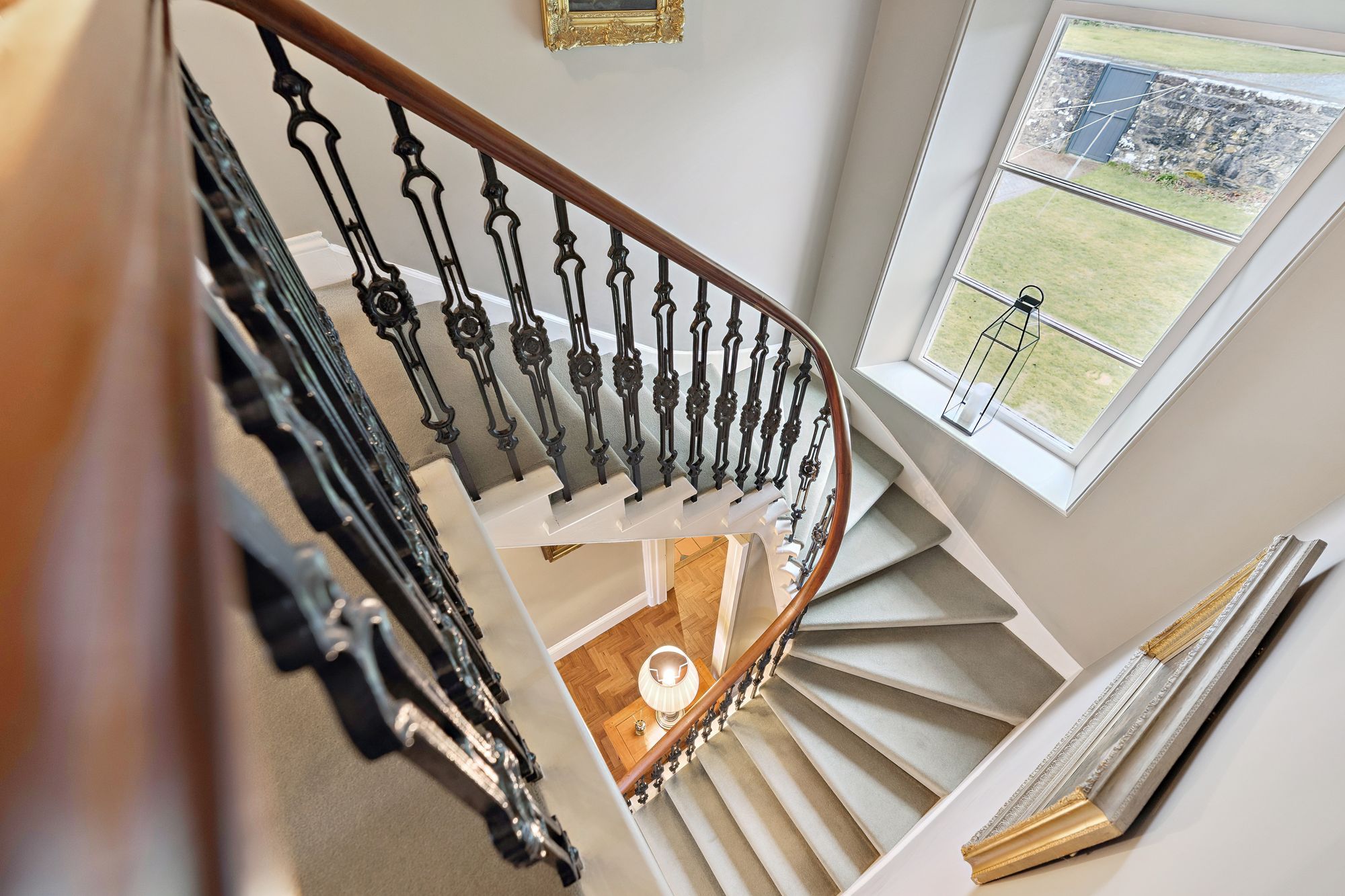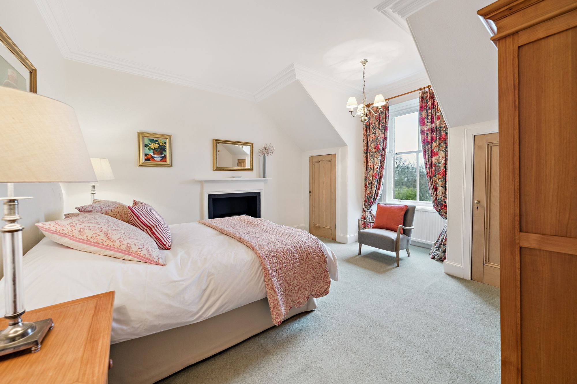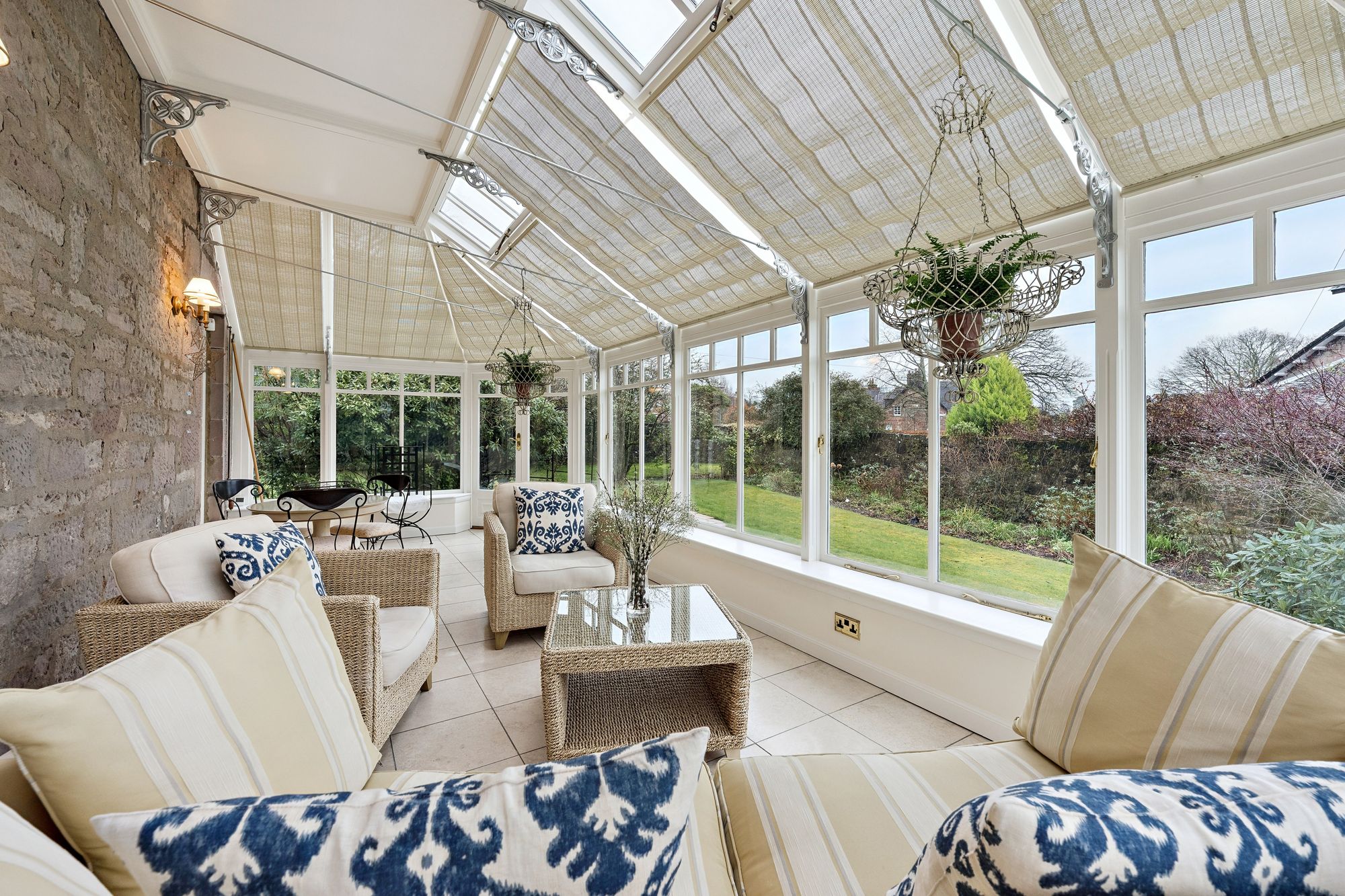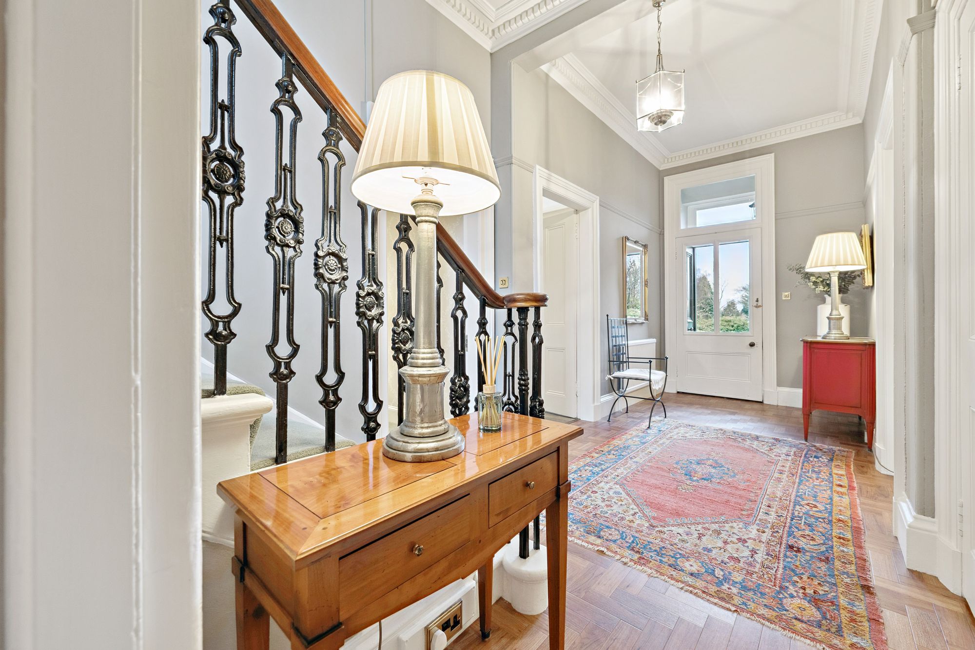 Internally, the accommodation is generously proportioned and exceptionally flexible, extending to eight principal apartments which allow for a variety of family living arrangements. A broad entrance vestibule opens into a welcoming reception hallway that immediately sets the tone for the elegant interior. The beautiful front-facing lounge features a striking focal point fireplace with an inset log-burning stove, creating a warm and inviting public space. In addition, there is a further, separate ground floor sitting room and a third public room, currently utilised as bedroom five, providing further versatility depending on lifestyle requirements. A rear hallway also gives access to a convenient ground floor wash room. One of the most impressive spaces within the home is the almost full-length sun-filled conservatory, which enjoys delightful garden outlooks and provides a superb setting for relaxing or entertaining throughout the seasons. The traditionally styled yet contemporary kitchen is arranged on a semi-open plan basis with a charming dining room that again features a wood-burning stove, forming a comfortable and sociable heart to the home. A practical utility area provides additional convenience for everyday living. A fabulous staircase rises gracefully from the entrance hallway, passing a striking mezzanine level window which floods the stairwell with natural light, before reaching the upper landing. From here, access is provided to four well-proportioned bedrooms, each offering comfortable accommodation. The front-facing bedrooms enjoy particularly attractive views across the gardens and surrounding greenery which must truly be seen to be appreciated. Completing the upper level are a separate WC/wash room and an additional shower room, providing excellent facilities for a busy household.