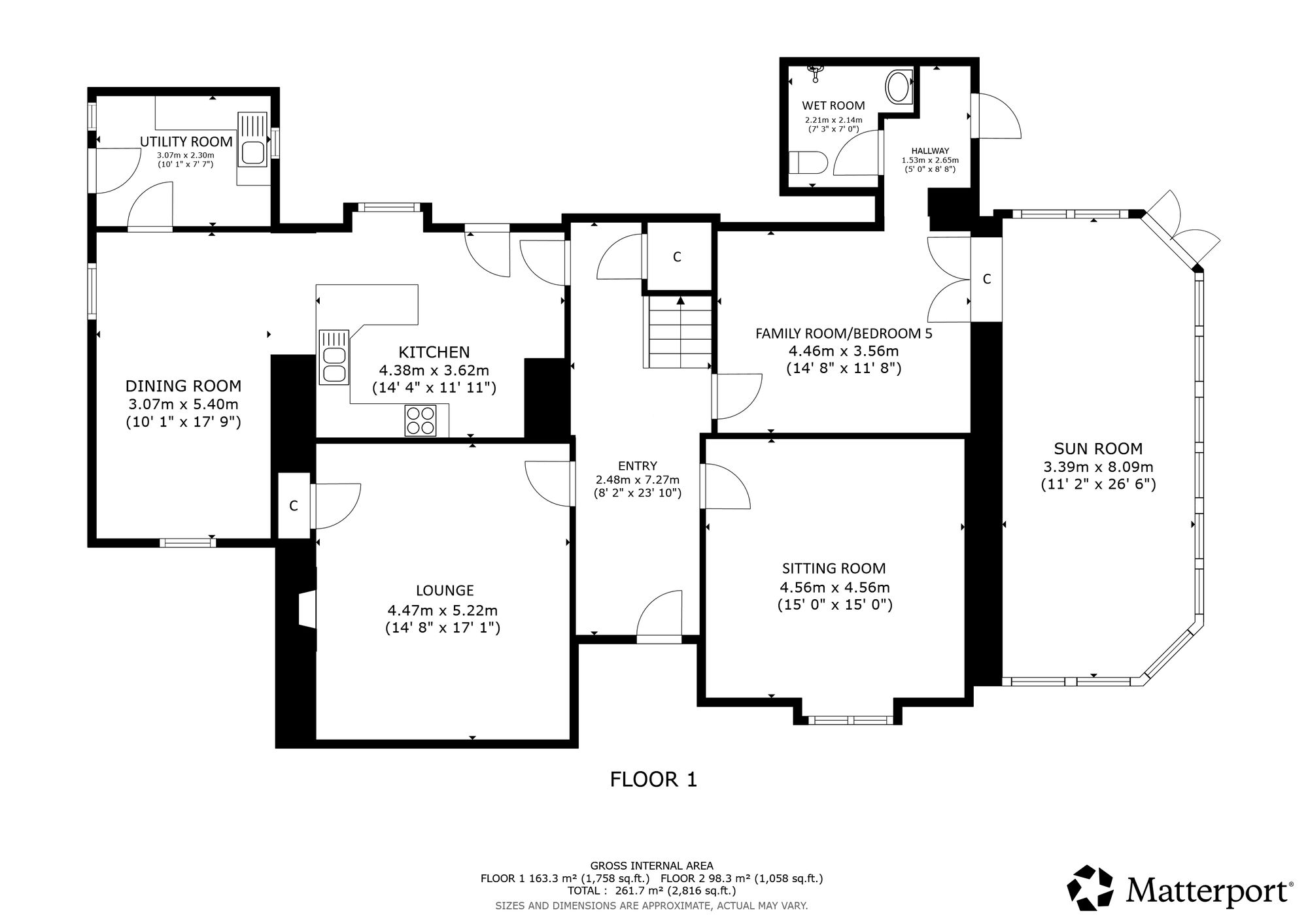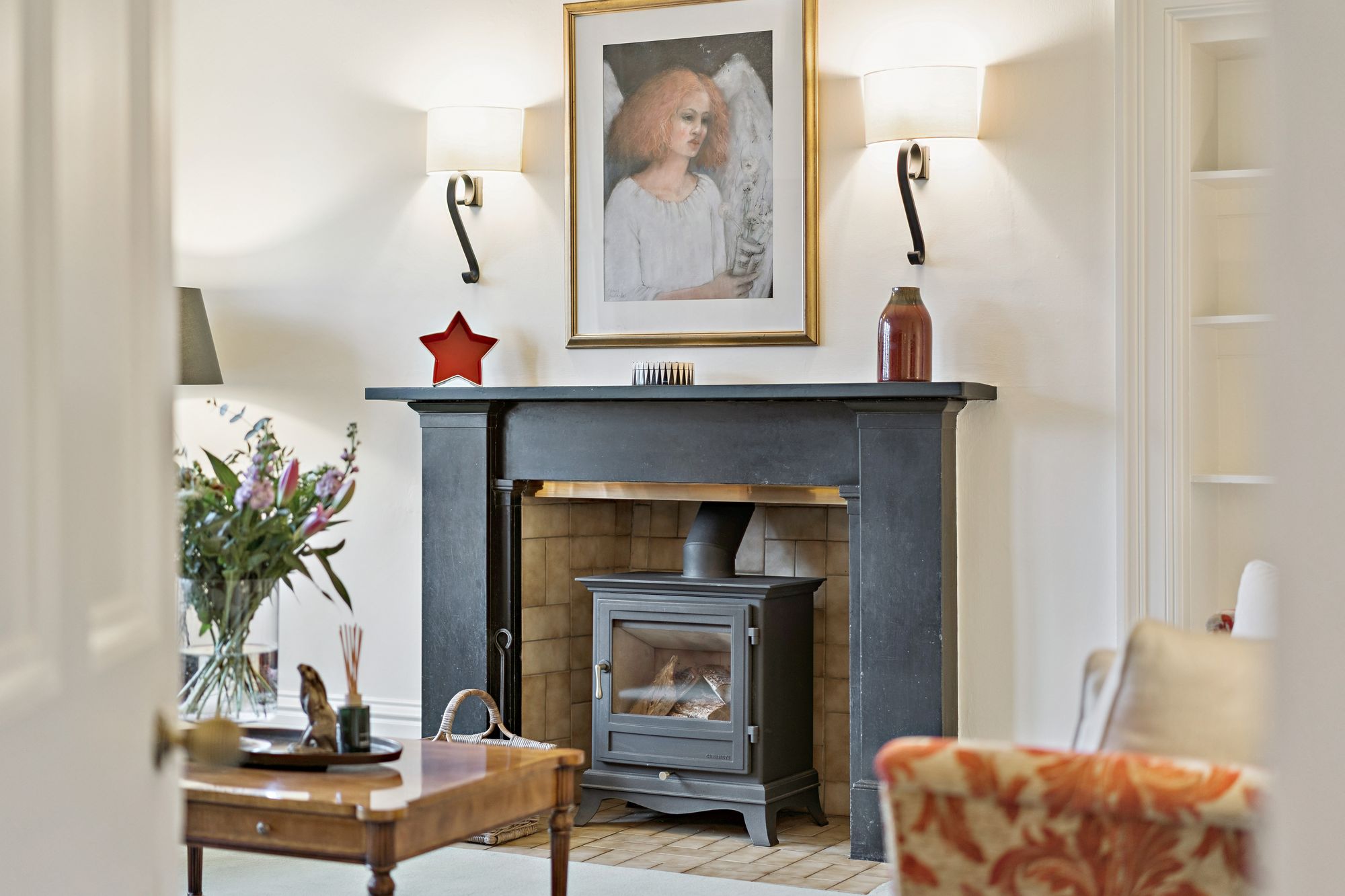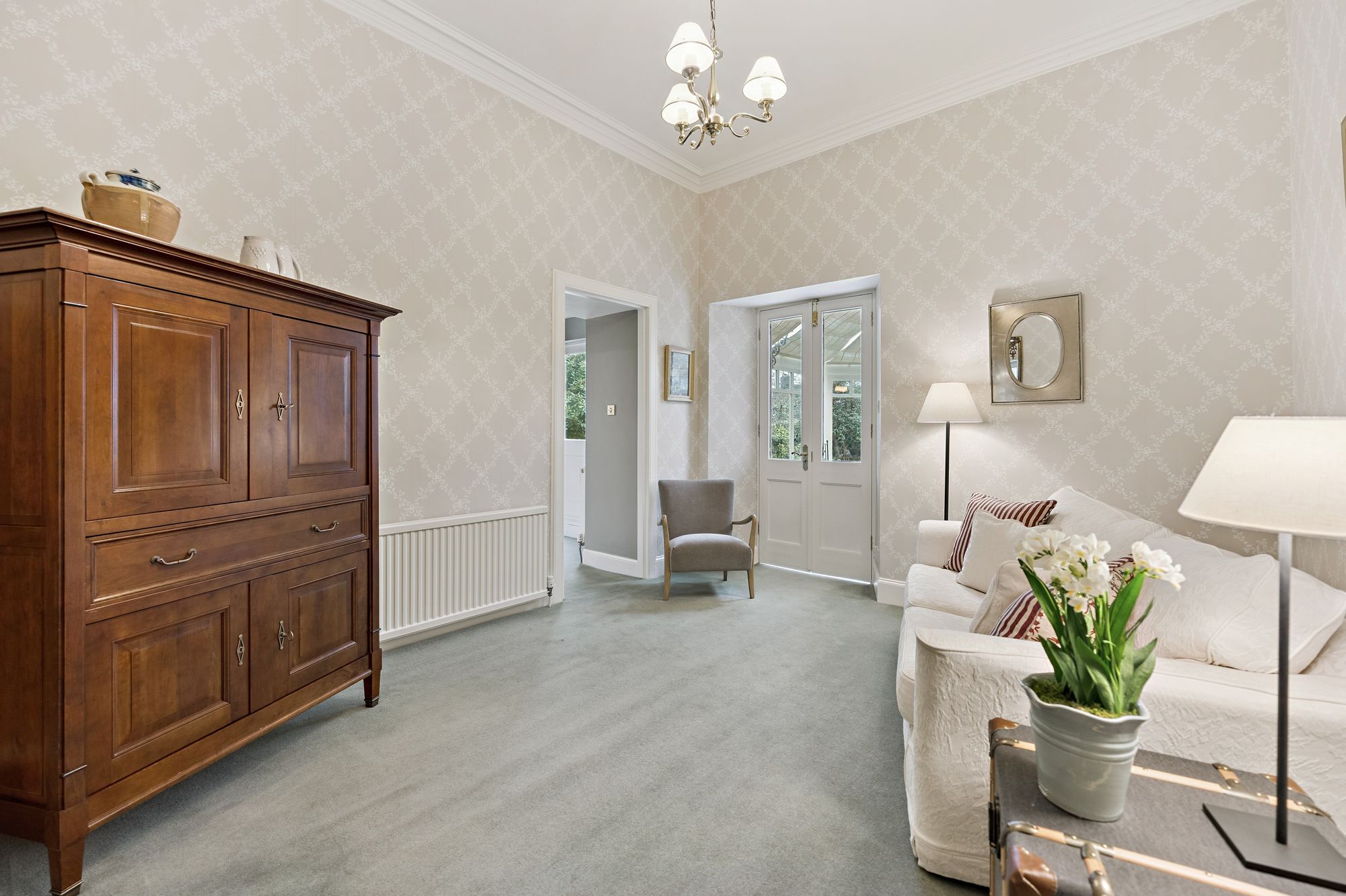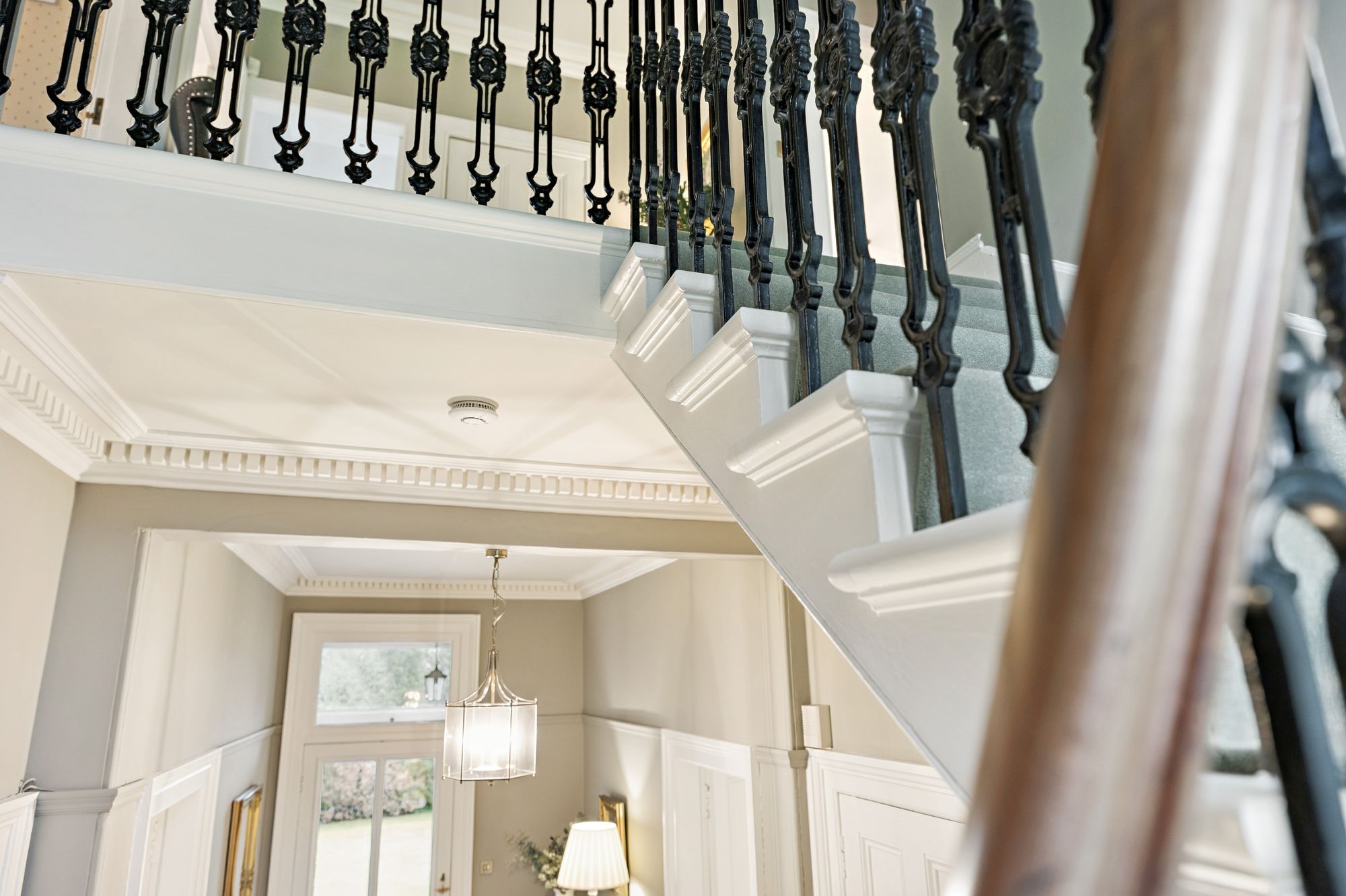 Internally, the accommodation is generously proportioned and exceptionally flexible, extending to eight principal apartments which allow for a variety of family living arrangements. A broad entrance vestibule opens into a welcoming reception hallway that immediately sets the tone for the elegant interior. The beautiful front-facing lounge features a striking focal point fireplace with an inset log-burning stove, creating a warm and inviting public space. In addition, there is a further, separate ground floor sitting room and a third public room, currently utilised as bedroom five, providing further versatility depending on lifestyle requirements. A rear hallway also gives access to a convenient ground floor wash room. One of the most impressive spaces within the home is the almost full-length sun-filled conservatory, which enjoys delightful garden outlooks and provides a superb setting for relaxing or entertaining throughout the seasons. The traditionally styled yet contemporary kitchen is arranged on a semi-open plan basis with a charming dining room that again features a wood-burning stove, forming a comfortable and sociable heart to the home. A practical utility area provides additional convenience for everyday living. A fabulous staircase rises gracefully from the entrance hallway, passing a striking mezzanine level window which floods the stairwell with natural light, before reaching the upper landing. From here, access is provided to four well-proportioned bedrooms, each offering comfortable accommodation. The front-facing bedrooms enjoy particularly attractive views across the gardens and surrounding greenery which must truly be seen to be appreciated. Completing the upper level are a separate WC/wash room and an additional shower room, providing excellent facilities for a busy household.