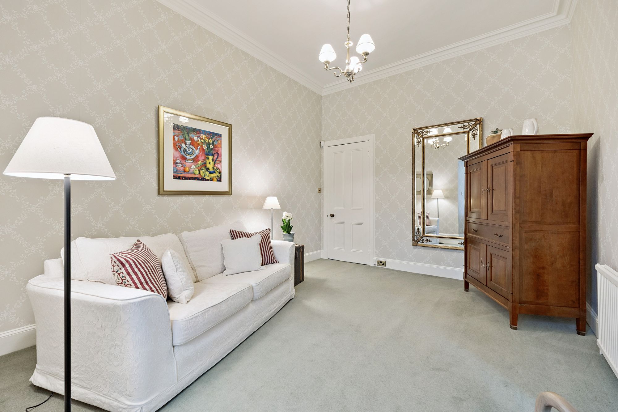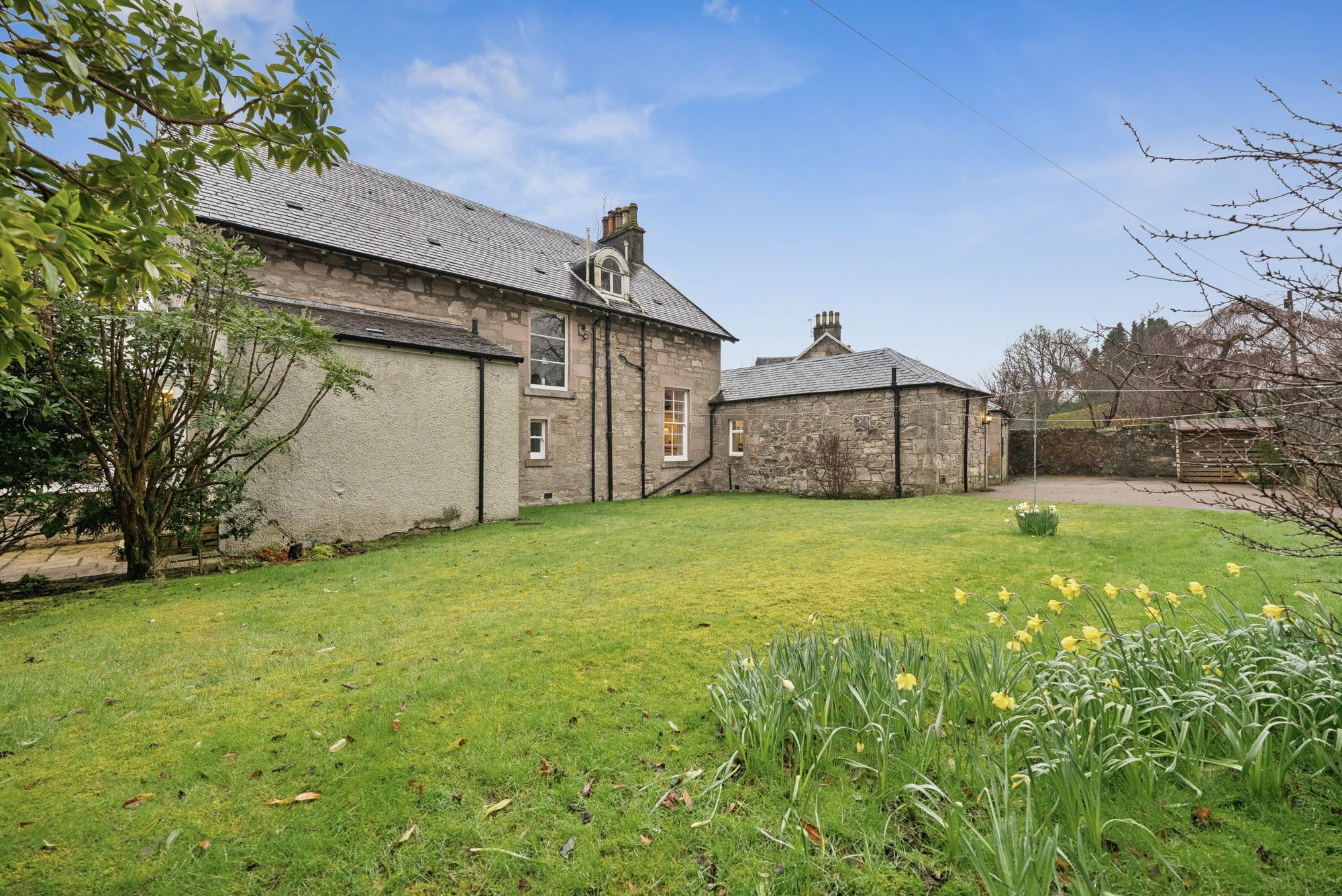 Set within one of Helensburgh’s most admired residential crescents, this highly impressive, eight apartment sandstone detached villa is peacefully set amidst beautifully maintained and manicured garden grounds which provide exceptional privacy and seclusion on all sides. The property enjoys a commanding presence within the street, overlooking a well-kept communal grassed area shared by the nine residents of the crescent, creating a particularly peaceful and exclusive setting. Having been lovingly maintained by the current owners during their long family residency, the home offers a rare opportunity to acquire a characterful yet highly adaptable property within a prime address which extends to over 2700 sq ft.