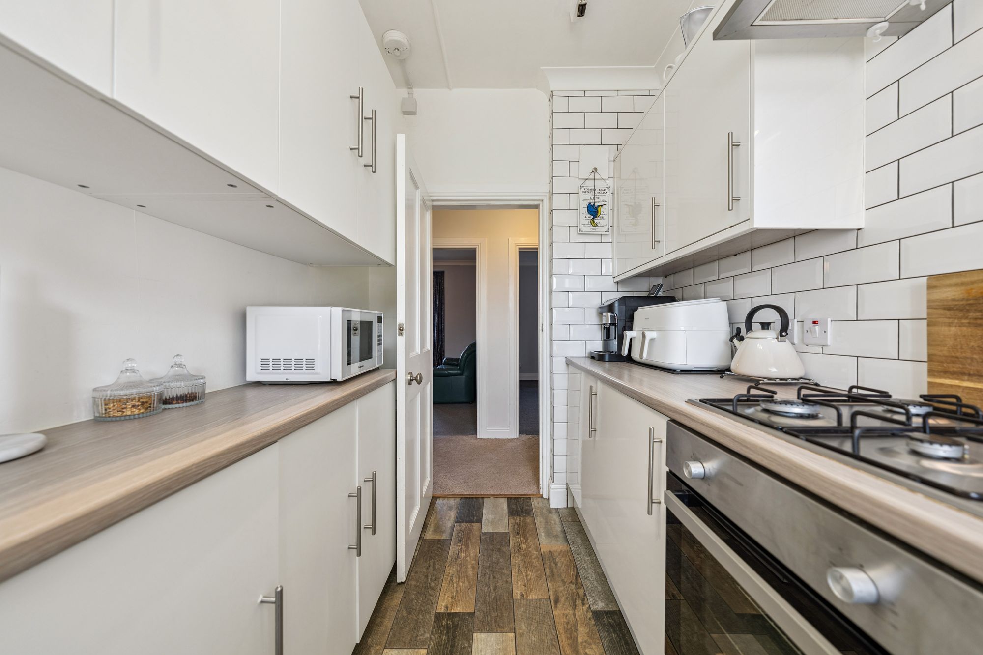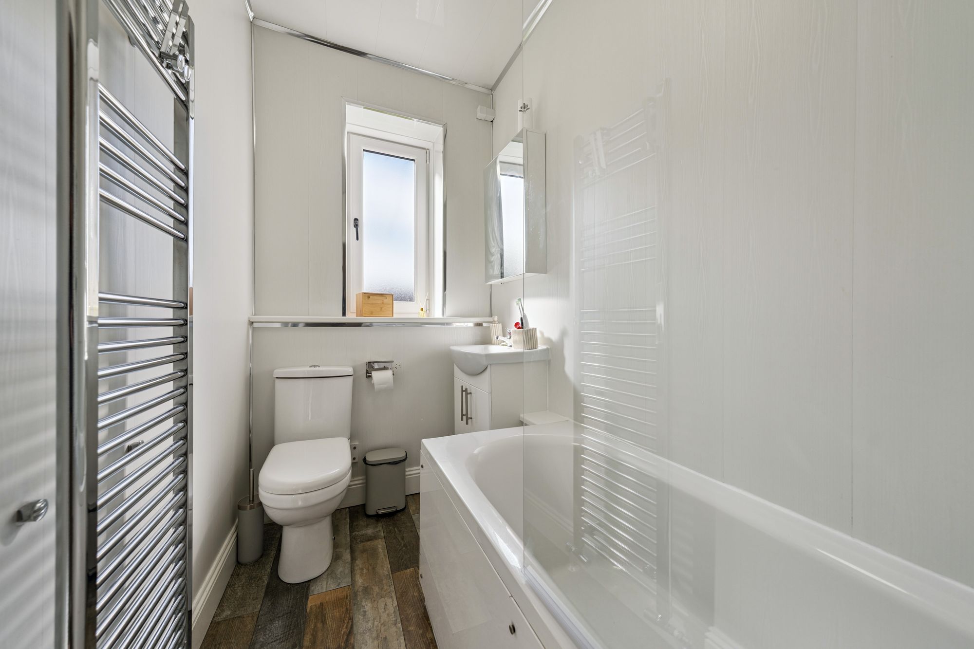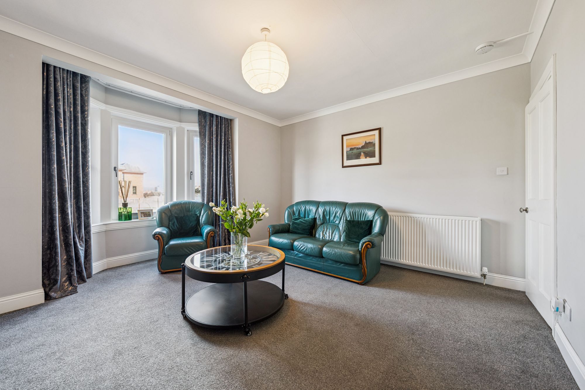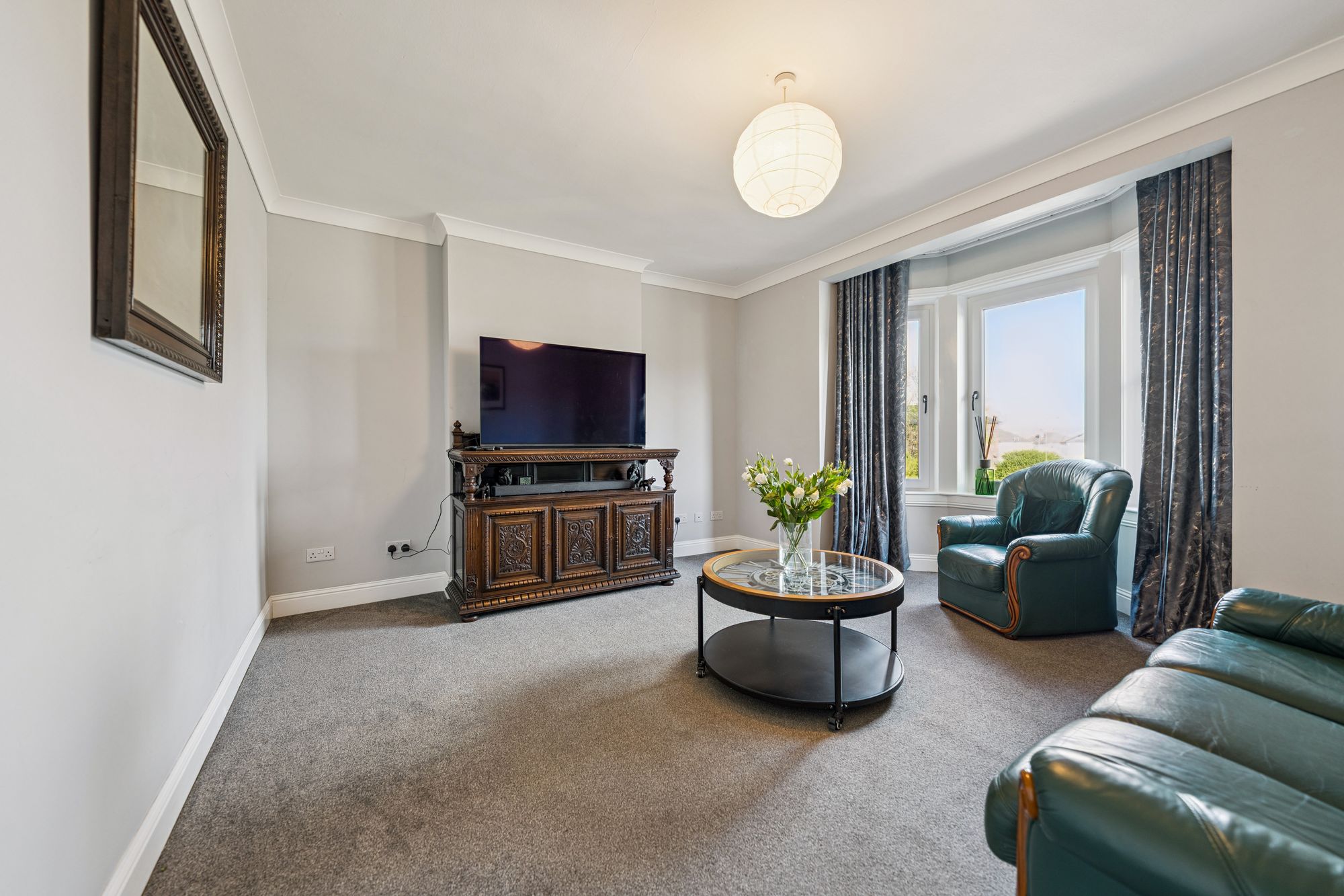 Internally, the attached floorplan provides a detailed overview of the layout; however, in summary, the accommodation extends to a welcoming reception hallway with useful storage off, spacious living room, fitted kitchen with a range of wall and base mounted units, two generous double bedrooms, with the principal bedroom enjoying a lovely bay window formation, and a well-appointed bathroom with three-piece suite.