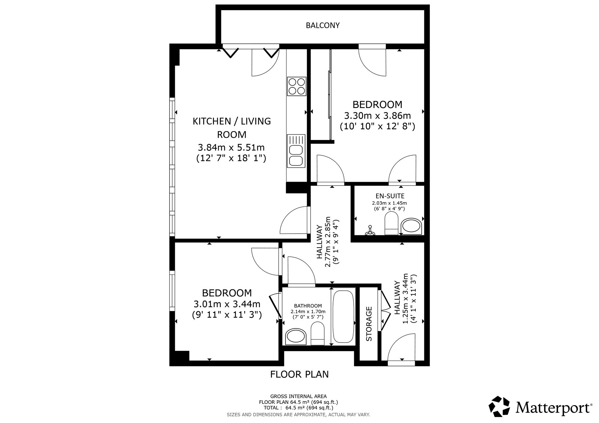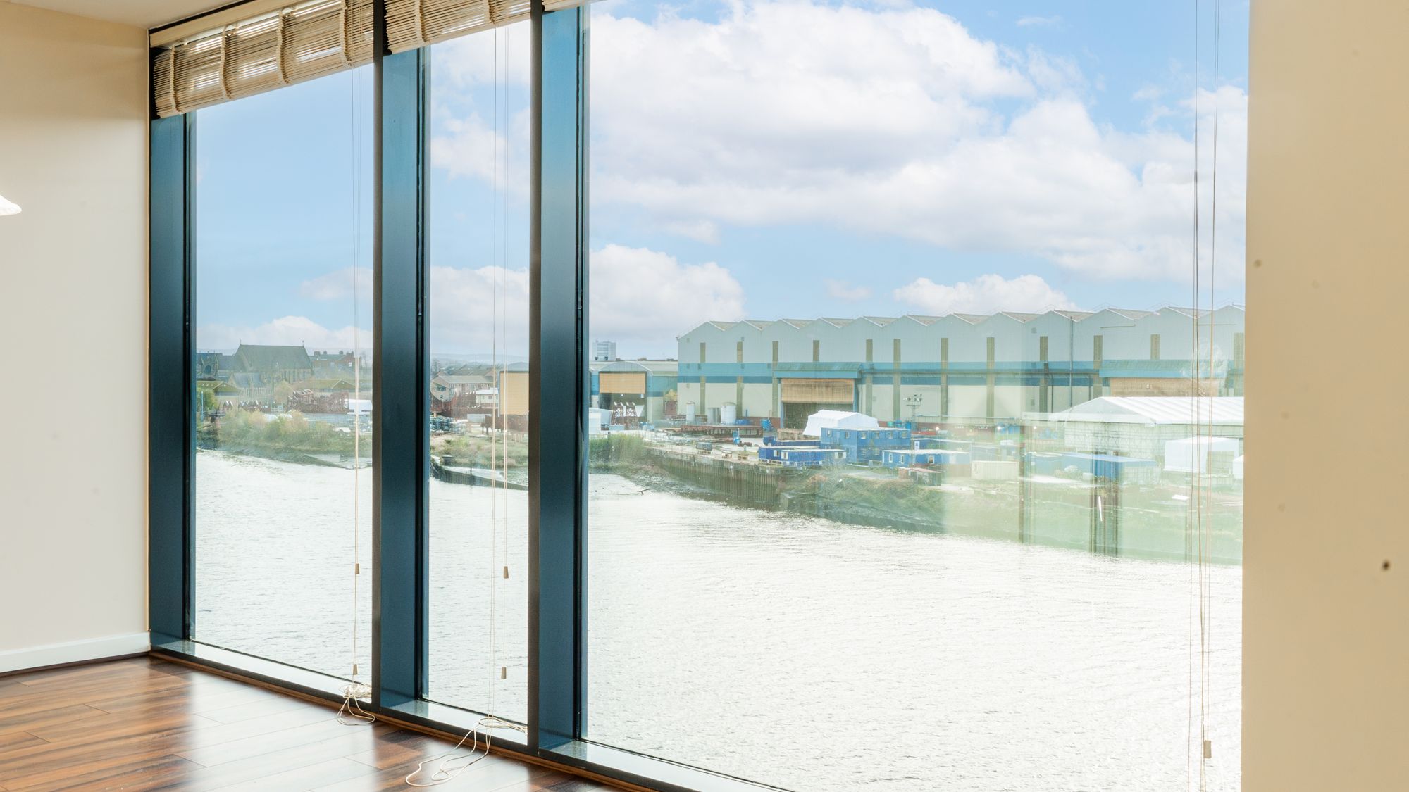 The home for sale is accessed via a secure entry intercom system with stairs, and high speed lifts providing access to all levels. The attached photographs, floor plan and HD video will give a good indication of the size, style and specification of the attractive interior. However, in brief the accommodation extends to; L-shaped entrance hallway with utility cupboard off, open plan living/dining/kitchen with floor to ceiling windows and balcony access. The kitchen itself has a range of base and wall mounted units with integrated appliances. There are two double bedrooms, with the principal benefitting from an en-suite shower room, built in wardrobes, and a door leading to the balcony. The accommodation is completed by a main bathroom with three piece suite and shower over the bath. The property further benefits from Venetian shutters throughout.