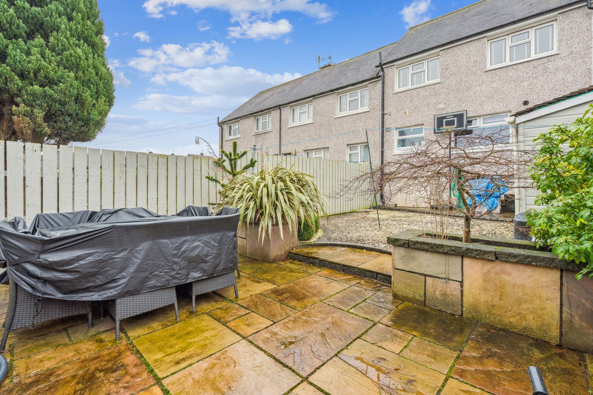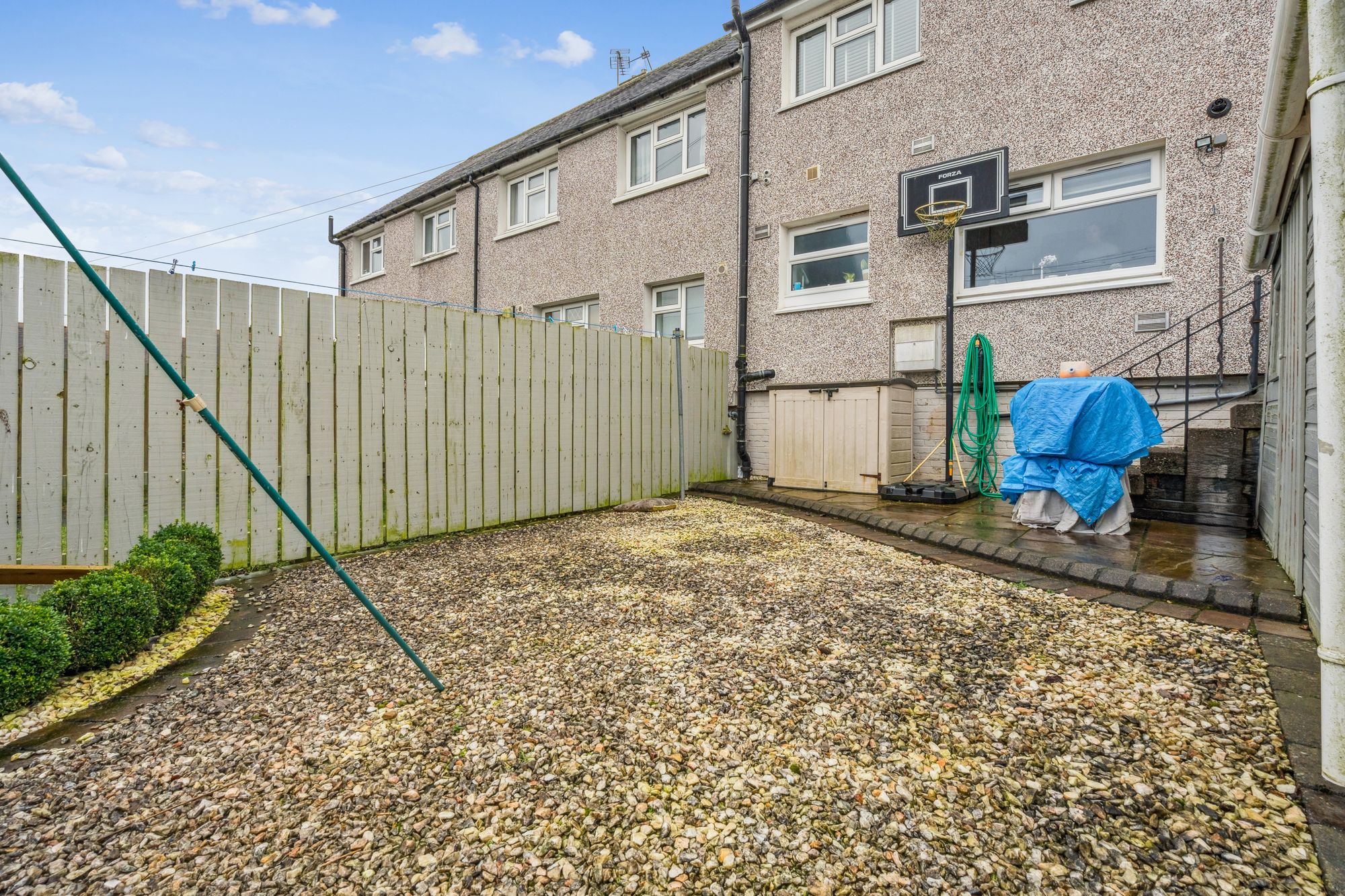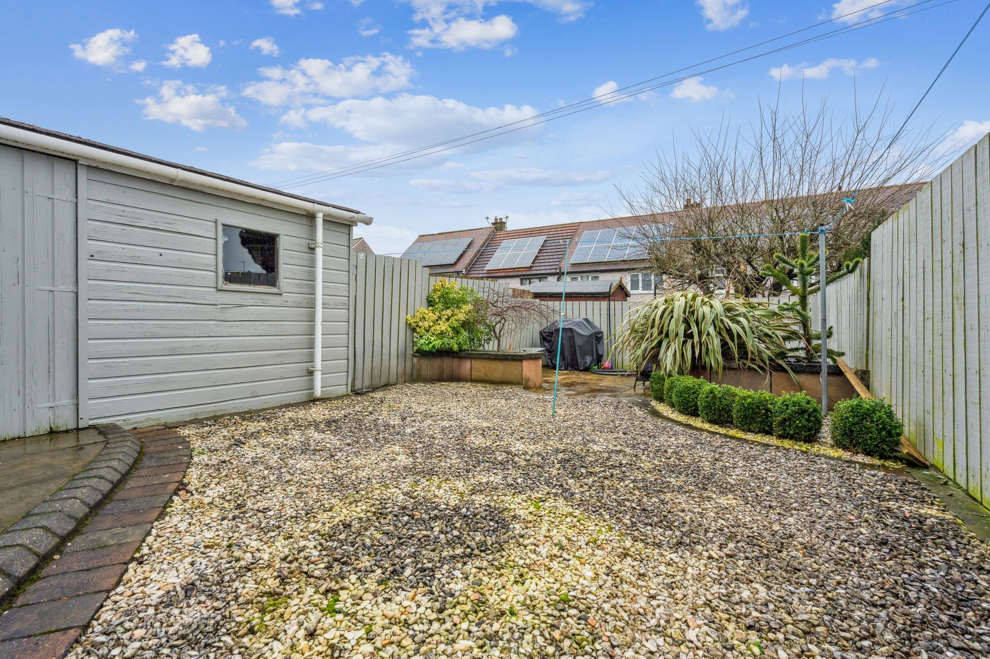 Externally, the property benefits from private garden ground located to both the front and rear. These areas include a combination of chipped, paved and turfed sections, providing low-maintenance outdoor space suitable for seating, recreation or general domestic use.