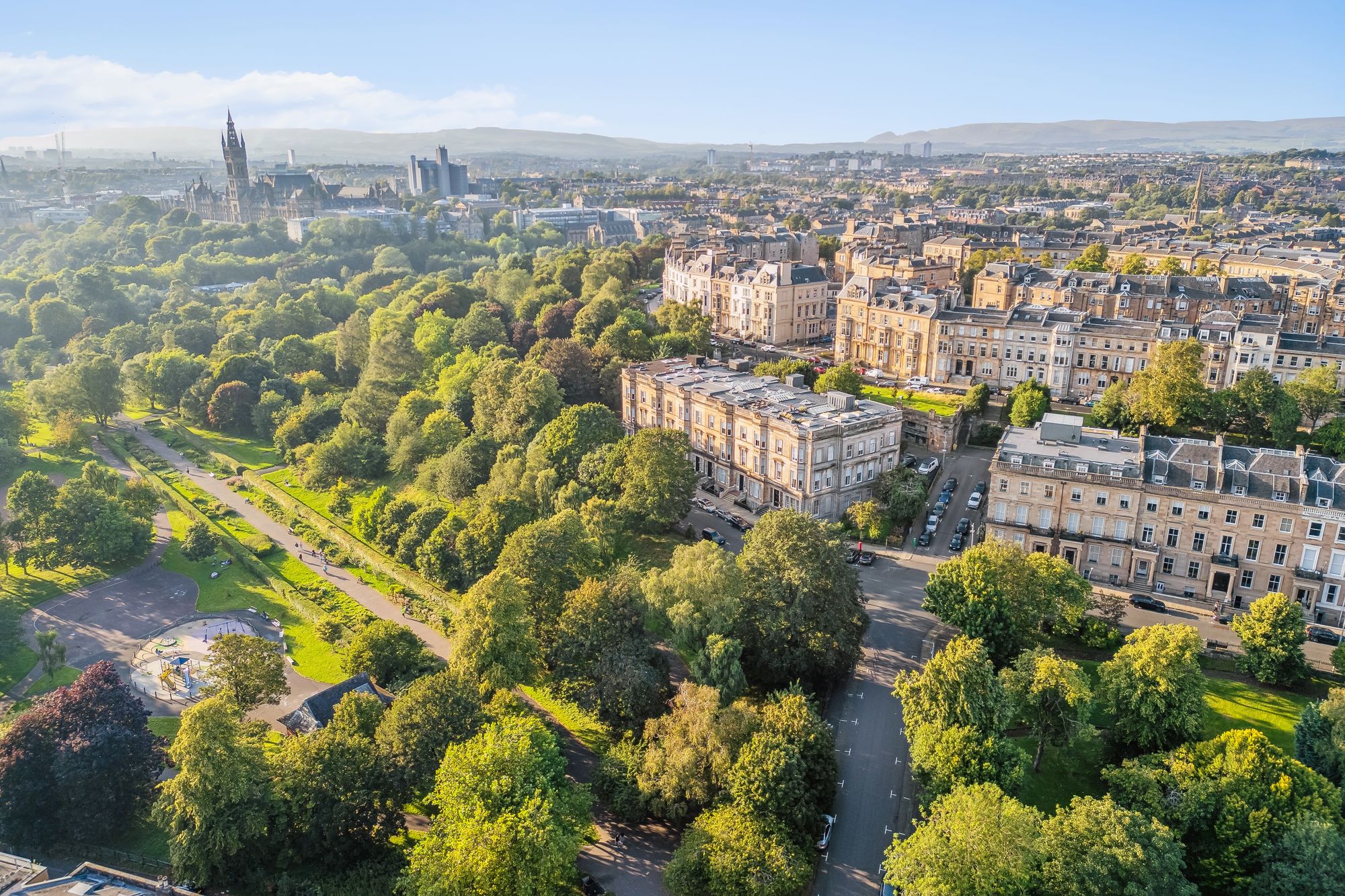 Park Gardens is a beautiful address which enjoys a peaceful, leafy situation in Glasgow's highly desirable 'Park' district. Originally designed by renowned architect Charles Wilson (responsible for having designed much of the local area including park Circus) circa 1855, this stunning, A-listed blonde sandstone terrace faces South towards mature trees that line the perimeter of Kelvingrove Park. At the end of Park Gardens there is an entrance into the park itself as well as a landmark feature of the area - 'The Granite Steps' which were also designed by Charles Wilson and constructed between 1853 & 1854 using Bonawe granite, from Argyll. In short, this is a stunningly pretty and architecturally significant address which has to be visited in person to be truly appreciated.