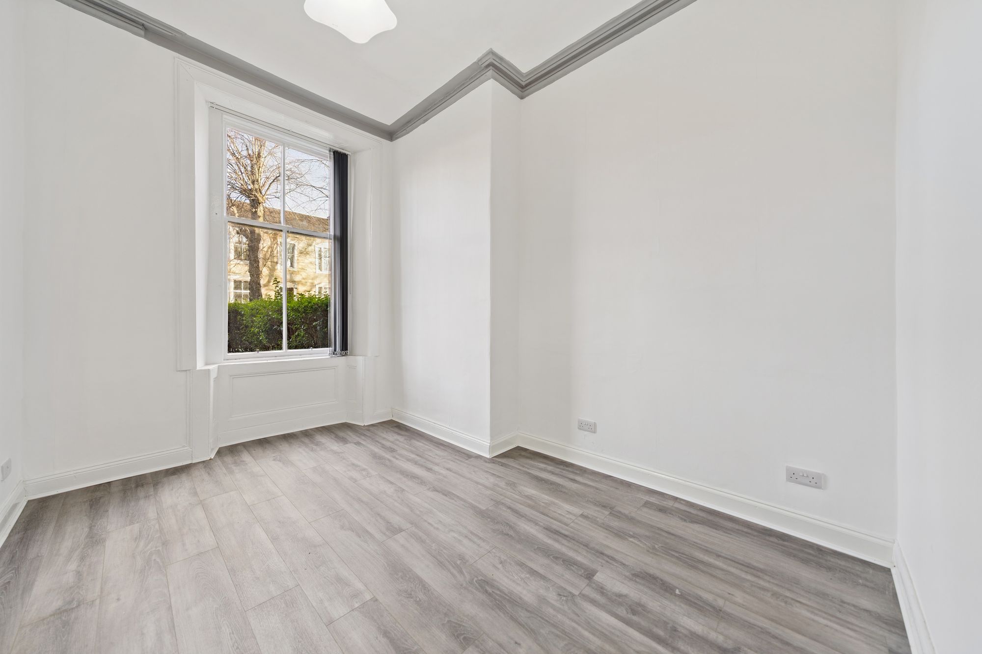 Number 28 is positioned on a quiet, leafy, tree-lined residential street and forms part of a particularly attractive blonde sandstone tenement. To the front of the building there is a neatly maintained enclosed garden, while to the rear residents enjoy access to a shared communal garden incorporating a drying green and refuse facilities.