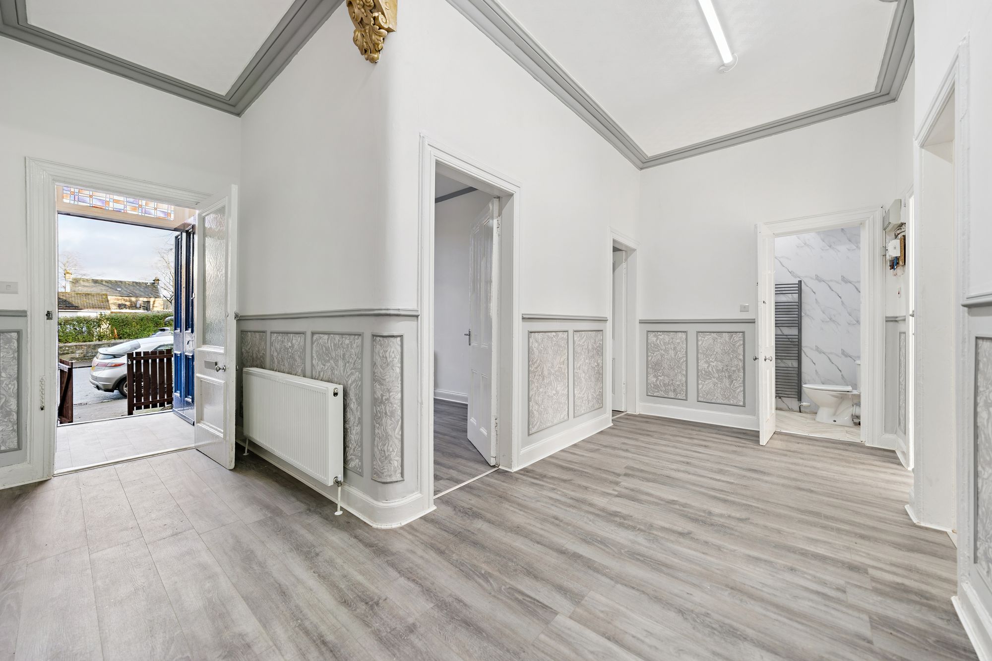 Internally, the property offers bright, spacious and versatile family accommodation, finished to an impressive standard throughout and presented in true walk-in condition. The upper level comprises a welcoming entrance vestibule leading into a broad reception hallway, a bright and spacious lounge, five generous double bedrooms and a well-appointed internal bathroom fitted with a three-piece suite and shower over bath.