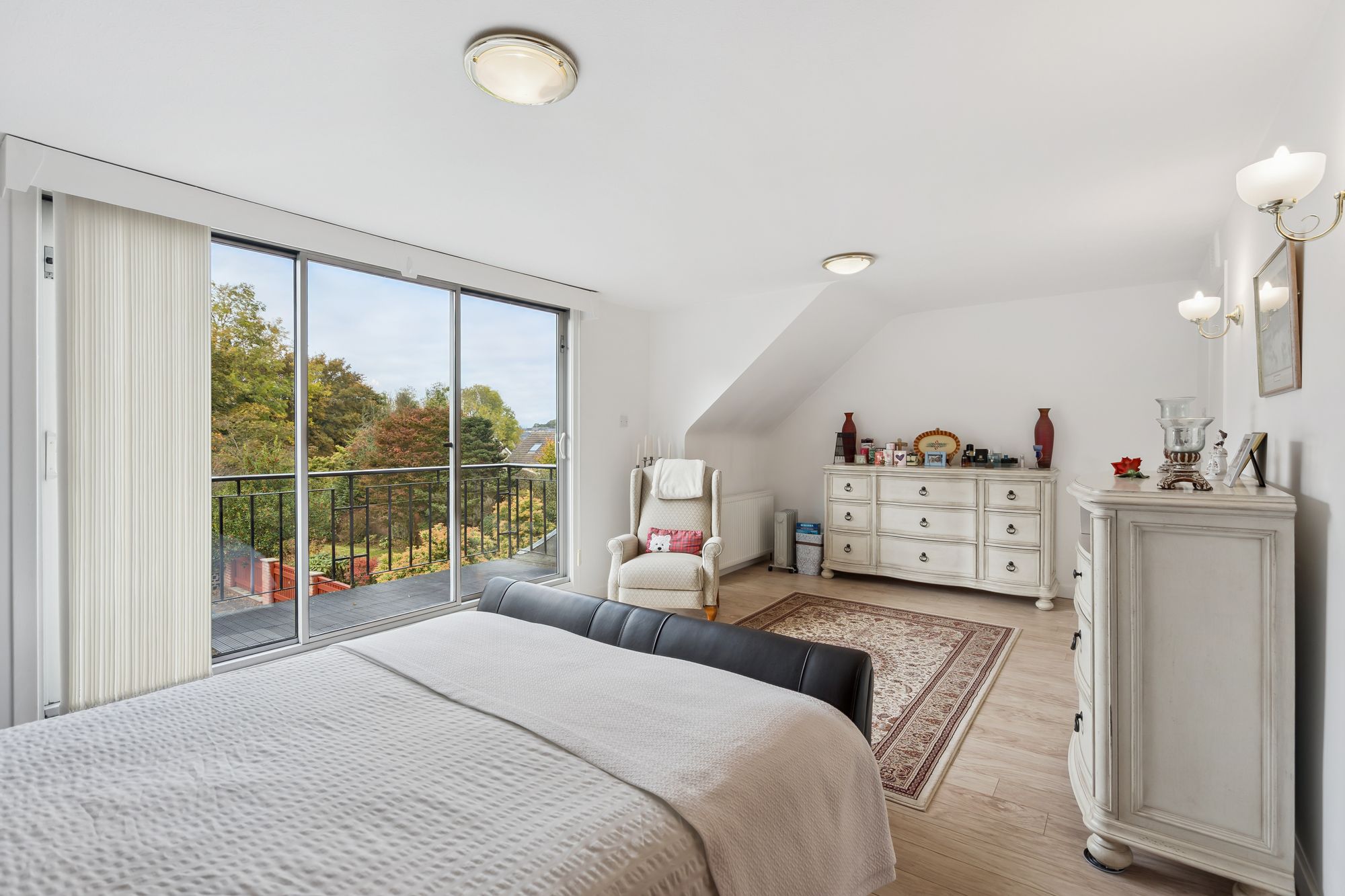 Upstairs, the attic floor reveals further extensive accommodation with a large master bedroom that opens out onto a private balcony overlooking the garden—a perfect retreat. Two additional bedrooms and a stylish family bathroom complete this upper level, all accessible via a wide hallway flooded with natural light.