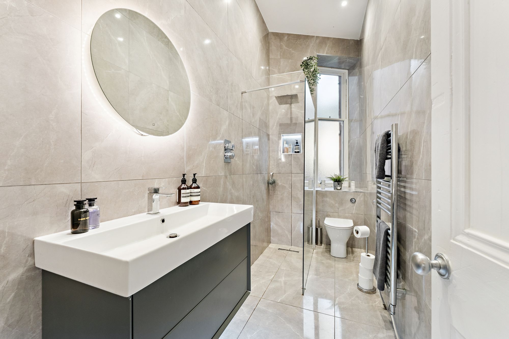 Internally, the flat has been upgraded throughout by the current owner and is presented in wonderful condition. The attached photographs, floor plan and HD video tour will give an idea to the size and layout of the flat. However, in brief the accommodation extends to; welcoming entrance hallway with storage off, bright and airy bay windowed living room with fireplace, a stunning dining sized kitchen with a stylish recessed booth. The kitchen itself has base and wall mounted gloss units with integrated appliances. There are two double bedrooms, with the principal benefitting from a walk in wardrobe. The accommodation is completed by a modern, fully tiled shower room with large walk in shower.