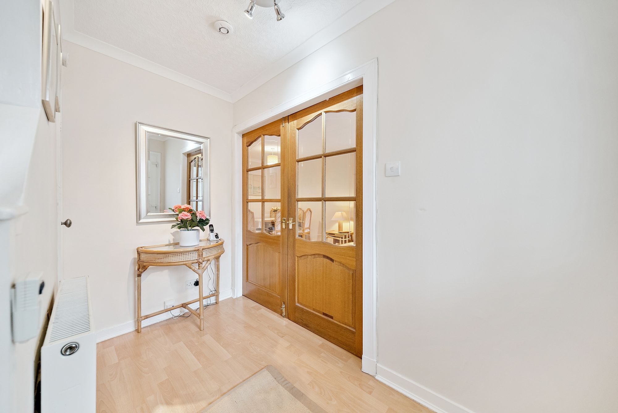 A thoughtfully extended two bedroom John Lawrence semi-detached villa, enjoying beautiful open outlooks to both the front and rear. The home occupies a particularly enviable position on Rowan Drive, facing adjacent lawned grounds and to the rear it enjoys lovely views across open countryside. Rowan Drive falls within the catchment area for Mosshead Primary School, located just beyond Kilmardinny Park, and the highly regarded Bearsden Academy High School. Positioned almost equidistant between Milngavie and Bearsden town centres, the property is within walking distance of a wide range of amenities in both, including a choice of train stations offering frequent rail services to Glasgow, Edinburgh and beyond.