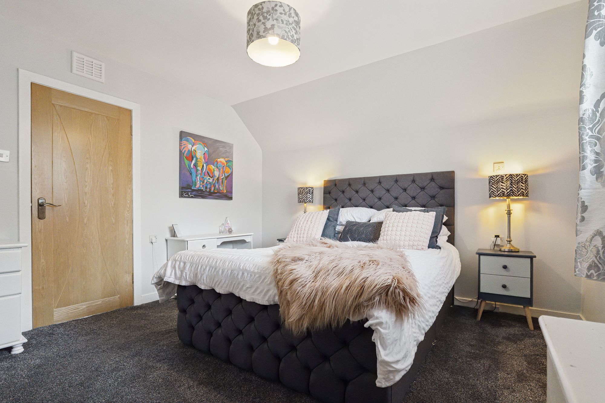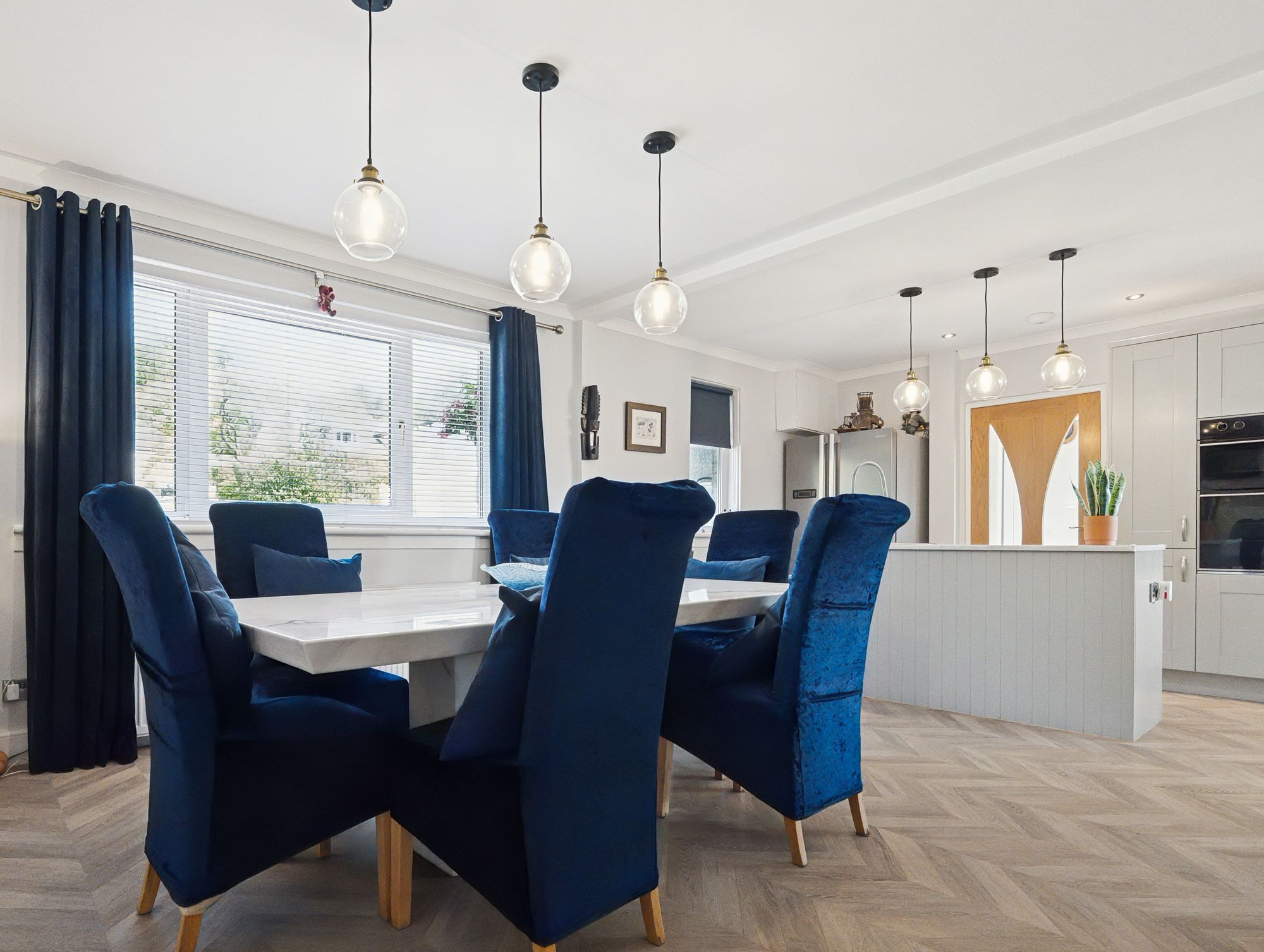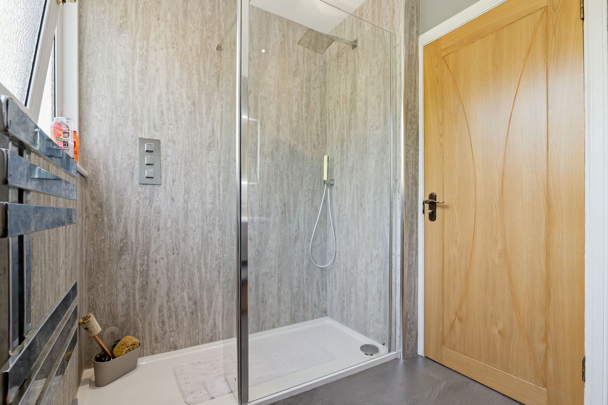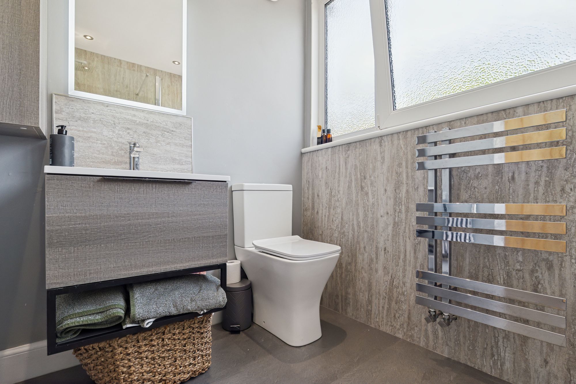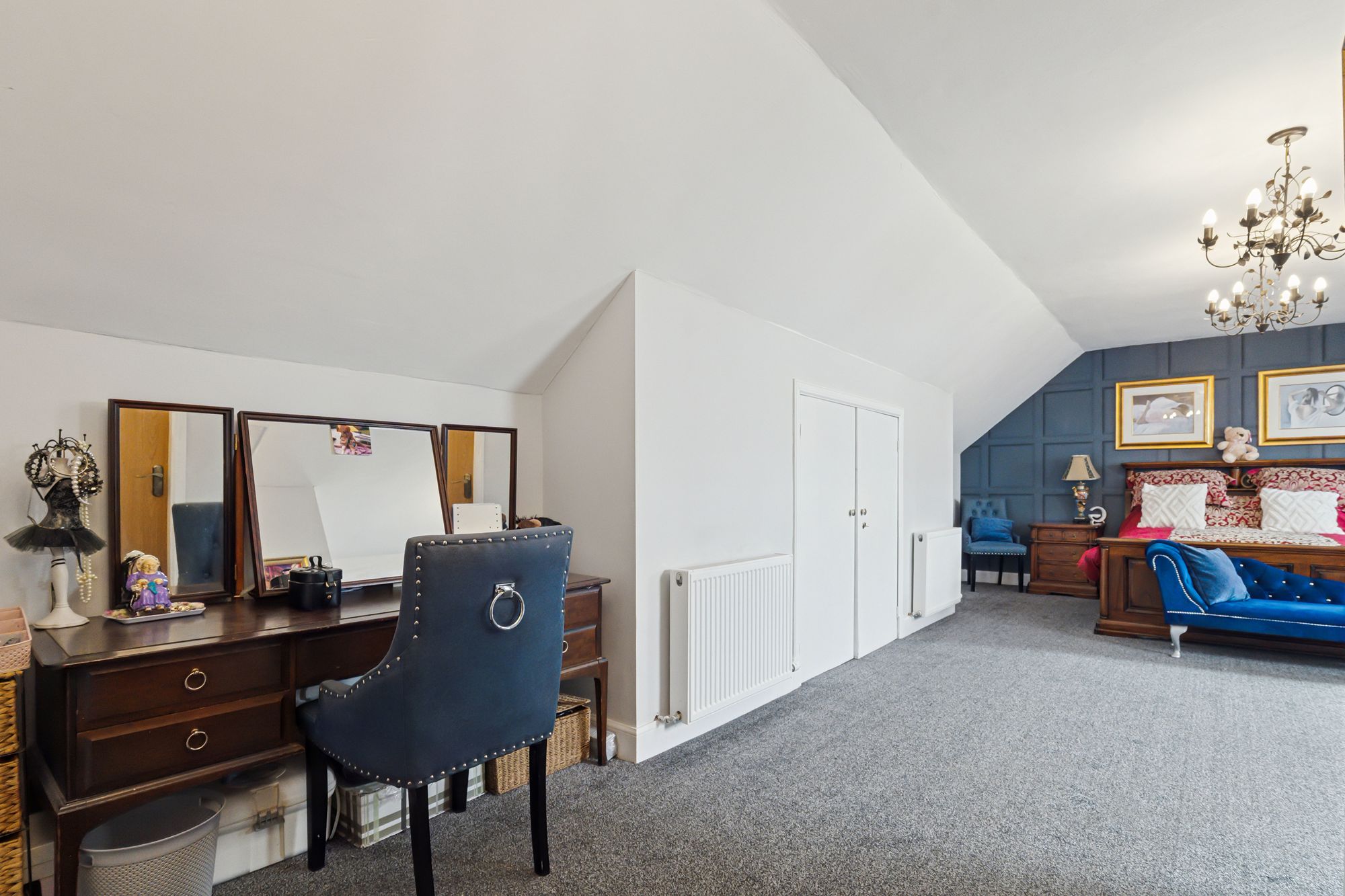The upper level offers additional space and privacy, featuring a spacious master bedroom with its own dressing room, a further well-proportioned bedroom, and a contemporary shower room.