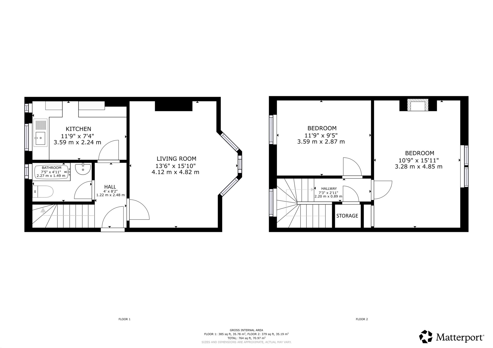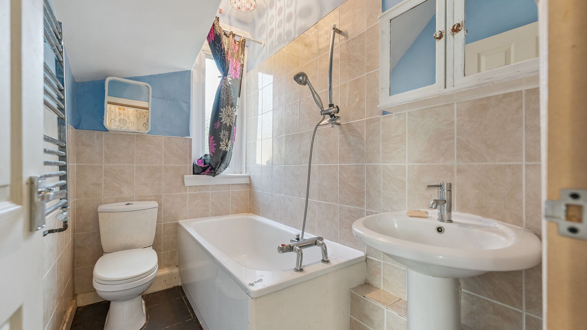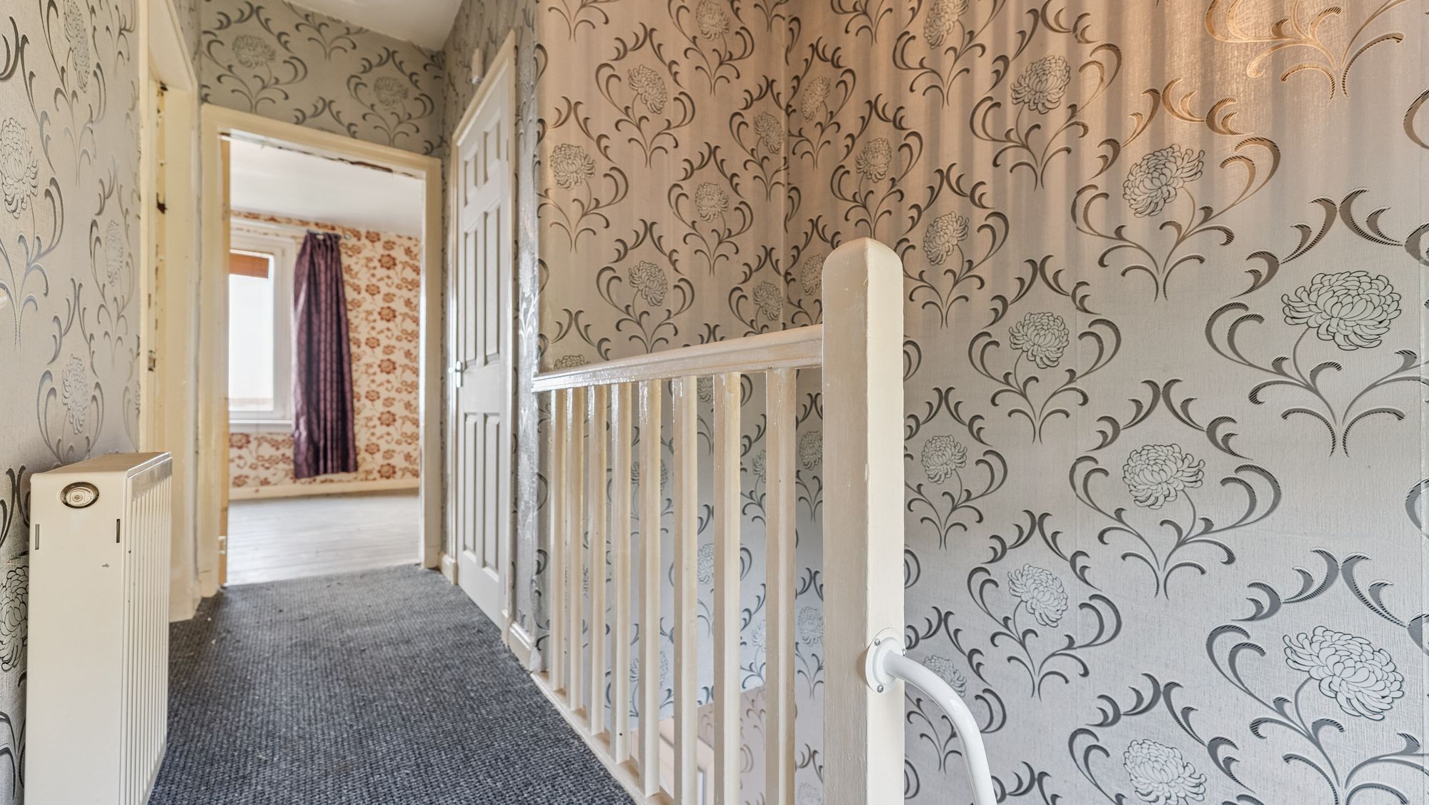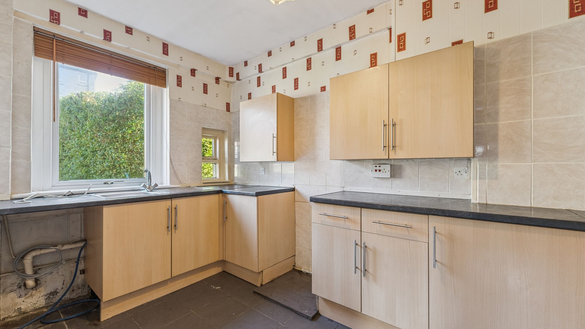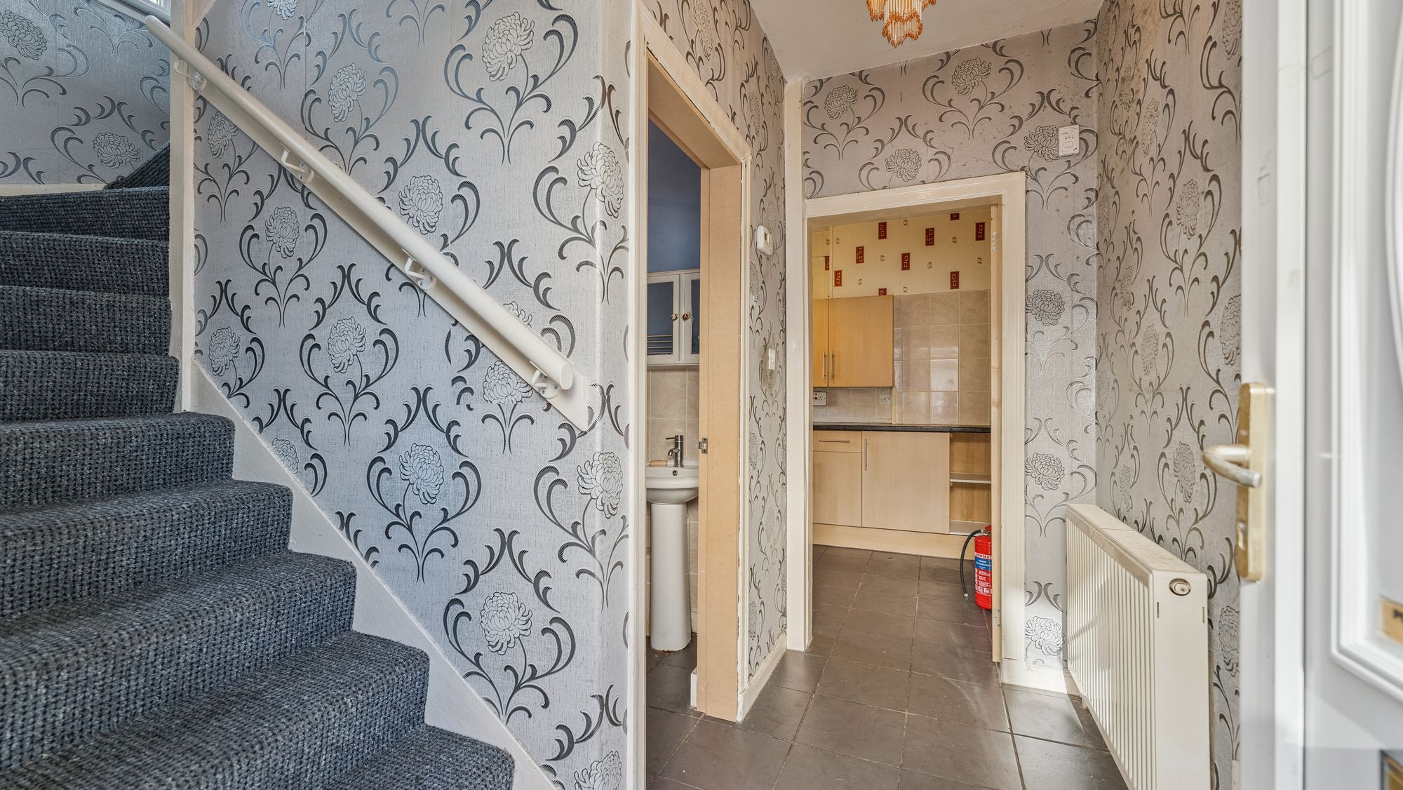 The accommodation on offer consists of reception hallway leading to the good sized lounge which is set to the front. The bay window formation allows for plenty of natural light to flood in and has plenty of room for free standing furniture. The kitchen overlooks the rear gardens and has fitted floor and wall mounted storage units and inbuilt storage cupboard. Completing this level is the bath room with white suite. The upper level opens on to landing with walk in storage cupboard where the boiler is located two double bedrooms with the master to the front with built in storage.