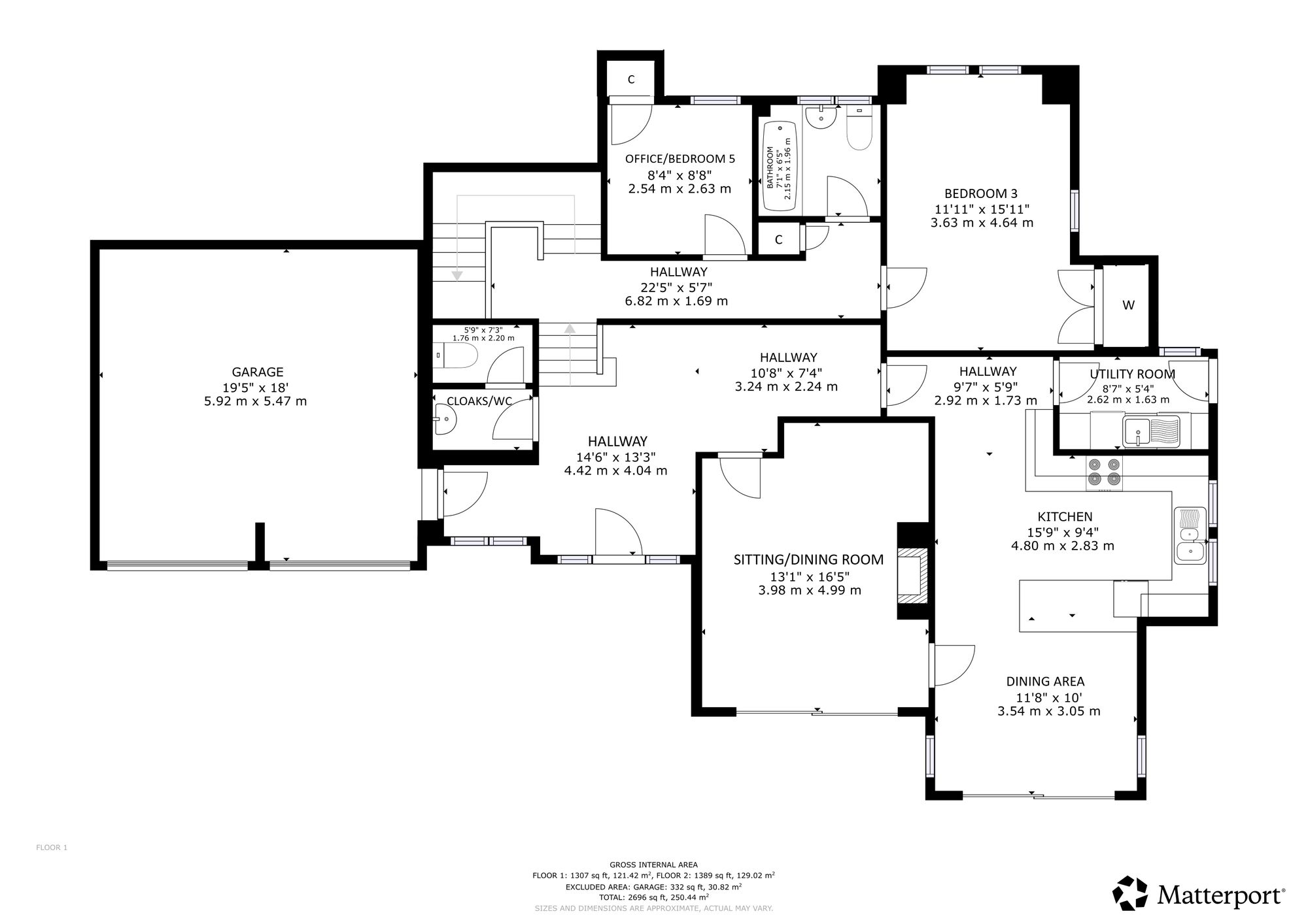 The principal bedroom suite is also found on this level - particularly impressive with in-built storage wardrobes together with a recently fitted luxury ensuite facility off which is finished to an exacting standard. Four further well-proportioned bedrooms provide exceptional flexibility for family living, guests, or home working with disnace bewteeen the various levels - the family bathroom and downstairs WC / cloakroom are also found well appointed.