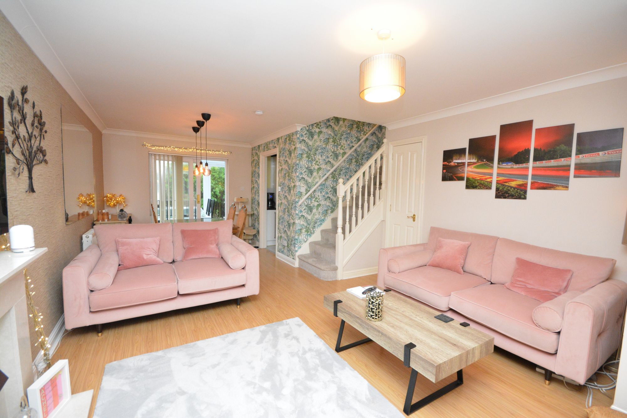 Access to the property is through an entrance vestibule with handy downstairs WC off. The super sitting/dining room extends to twenty three feet in length and enjoys access to the wonderful rear conservatory. The kitchen has an integrated oven, hob, extractor hood and dishwasher. A useful utility room is situated off the kitchen. The bright upper hallway has a gable window and allows access to three bedrooms with fitted robes and a generously sized bathroom. The master bedroom has a stylish fully refitted en suite shower room with feature ceramic tiling, mains shower valve, storage and chrome radiator. Practical features include gas central heating, double glazing and EV charging point included in sale. Well maintained and presented early viewing is highly recommended.