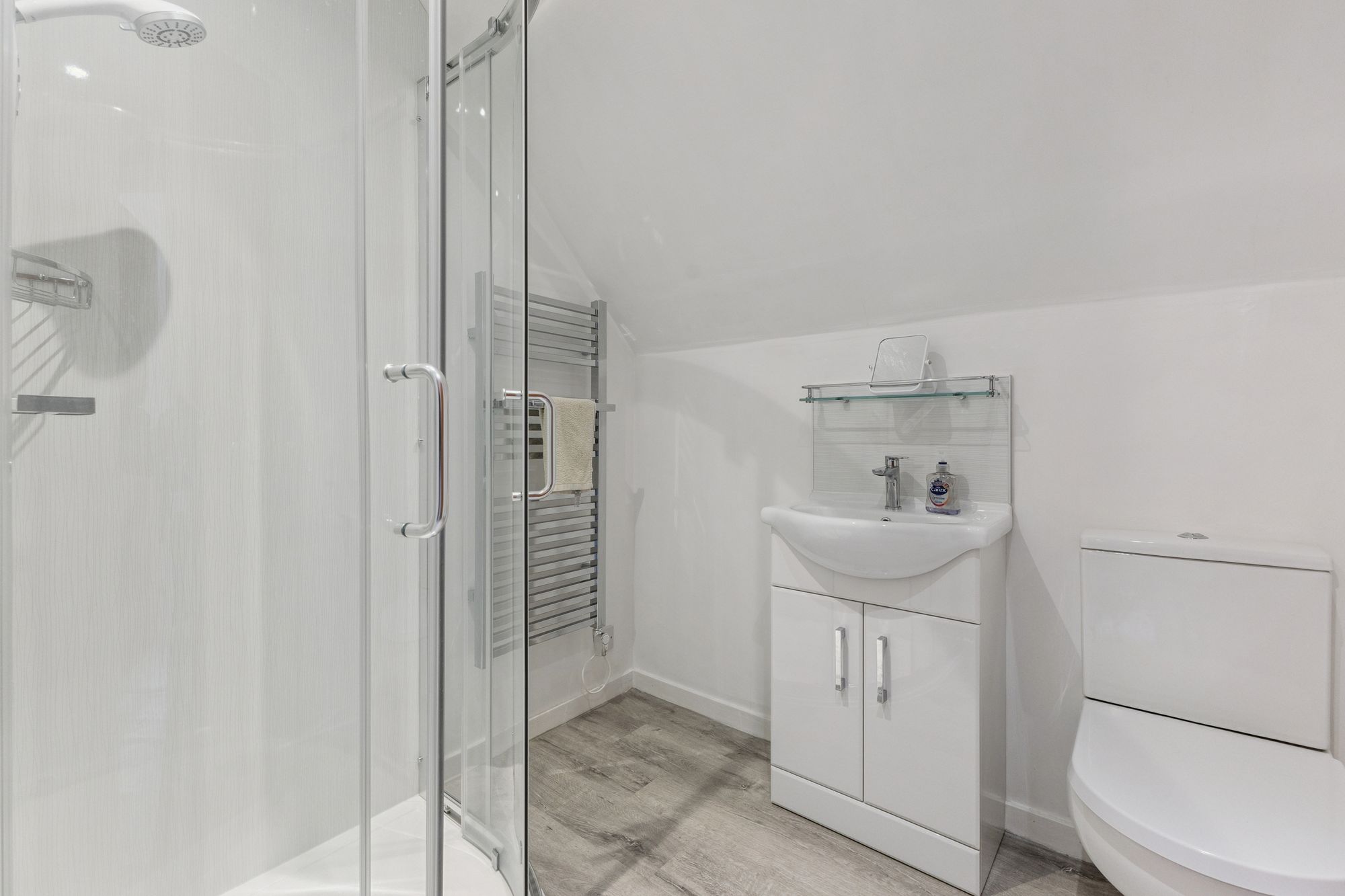 On the ground floor, there are two double bedrooms, one of which is currently utilised as a dining room, along with a shower room featuring a large shower cubicle, wash hand basin, and WC.