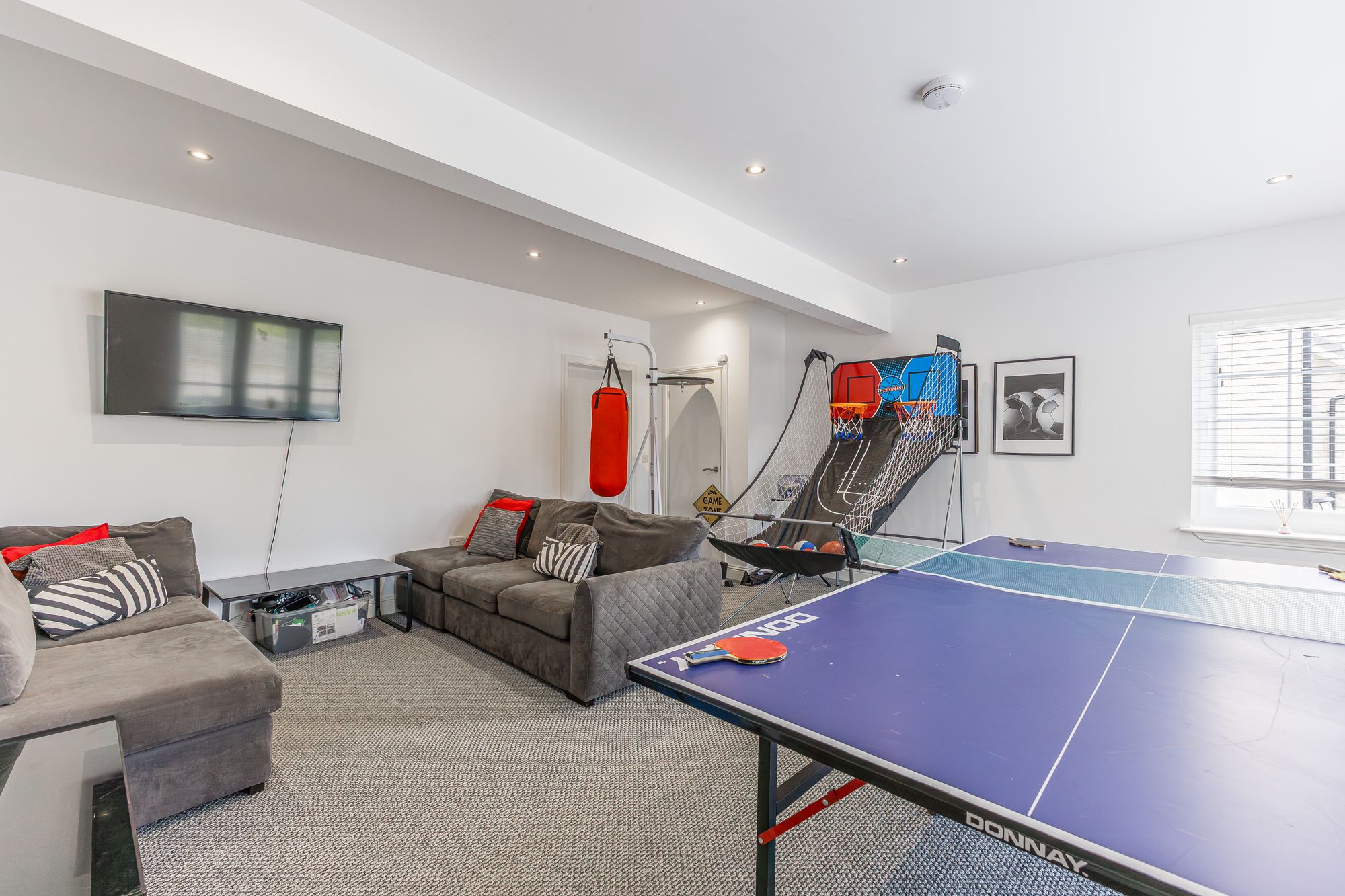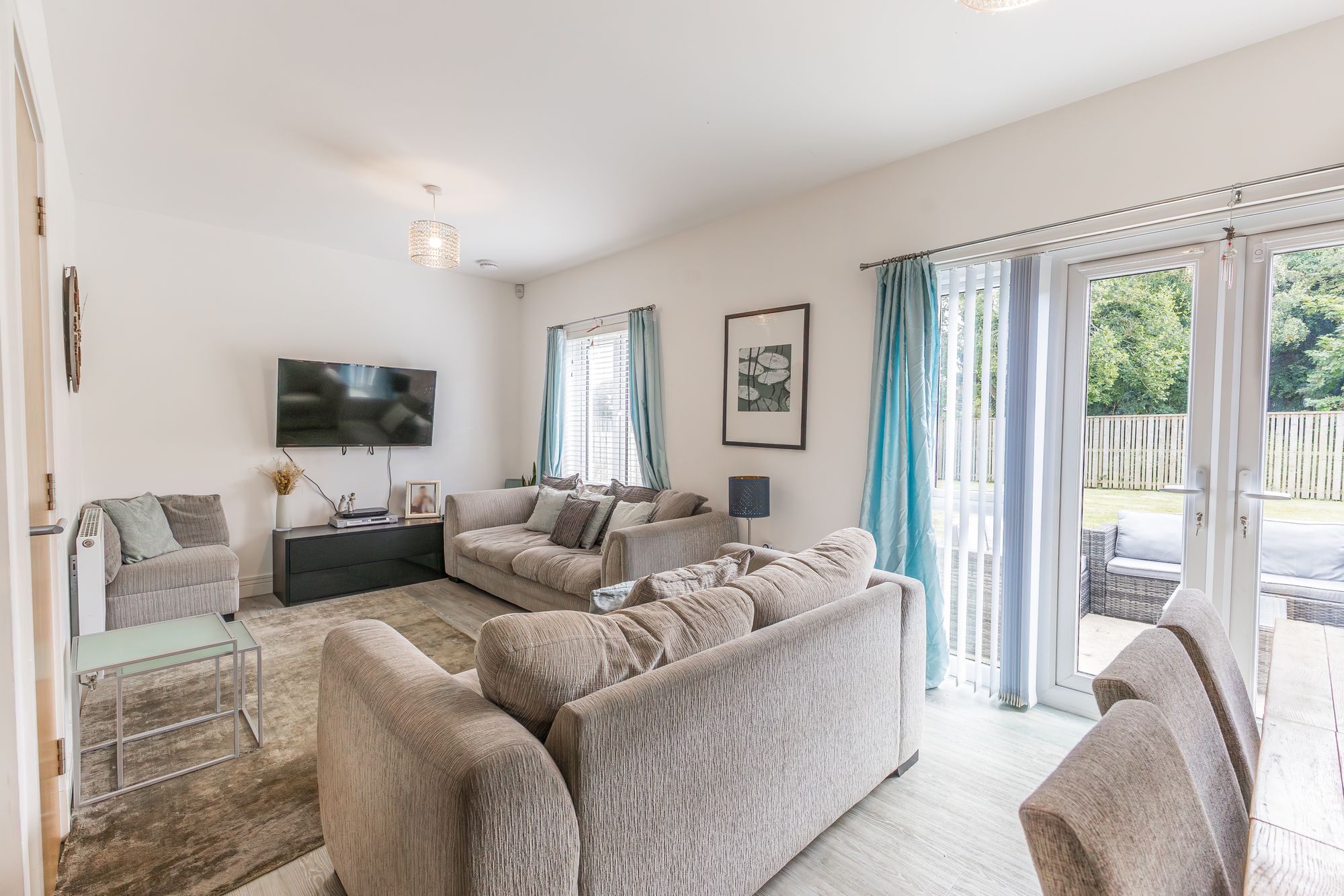 Upon entry, a bright and welcoming hallway, tastefully decorated in soft neutral tones, sets the tone for the rest of the property. To the front, a stylish formal lounge provides a tranquil retreat, while the former garage has been thoughtfully converted to offer an additional reception room currently used as a games/social room.