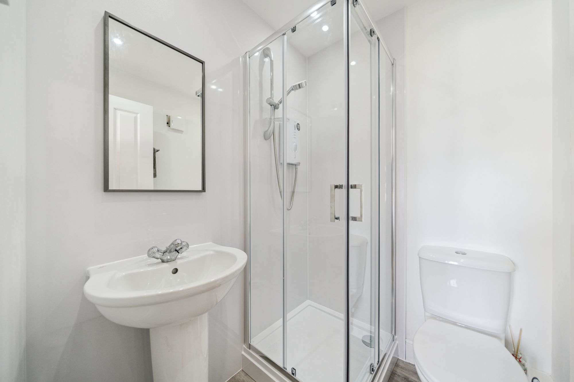 There are two double bedrooms, both of which benefit from built-in wardrobes with the master bedroom featuring a recently modernised en-suite shower room. Completing the accommodation is the modern main shower room with a large walk-in shower, W/C and wash hand basin.