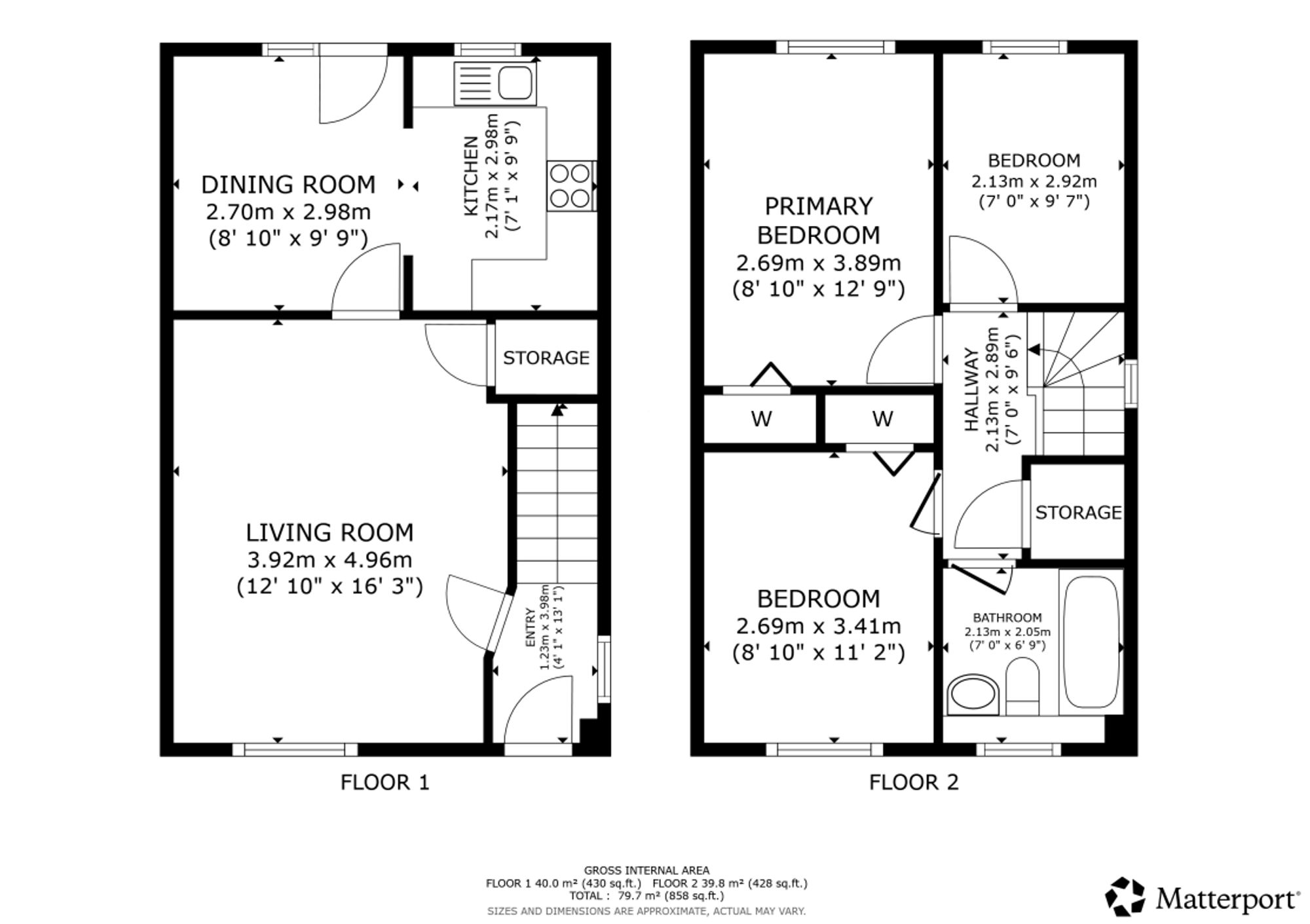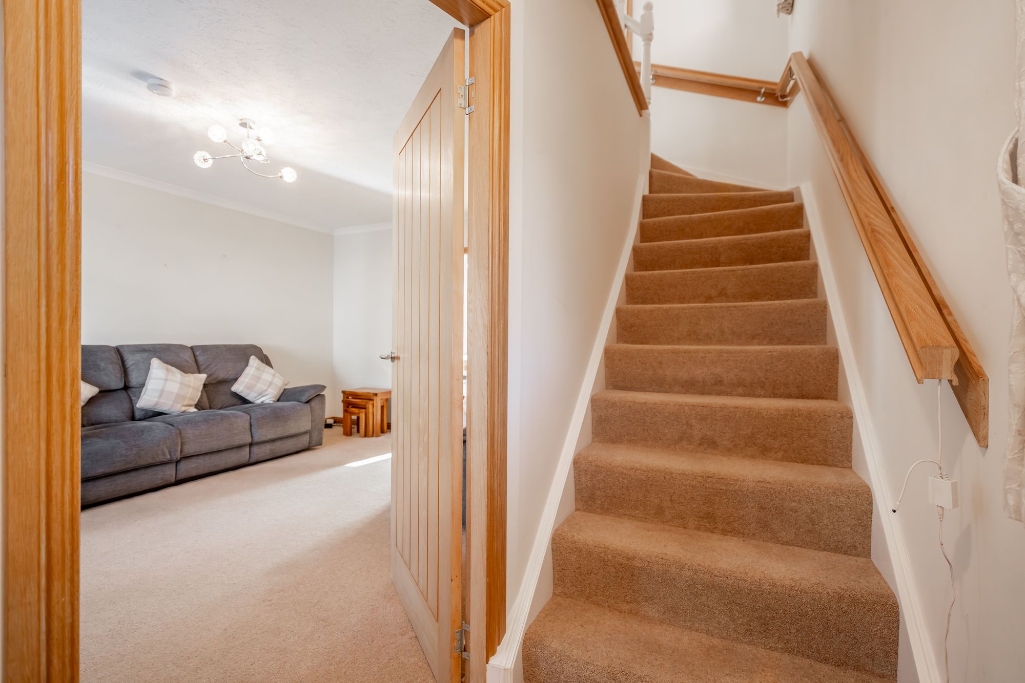 Built in the late 1990s and extending to over 800 sq ft, the property boasts generous ground floor living space, including a bright and welcoming lounge and a well-proportioned dining kitchen with ample storage and access to the rear garden. Upstairs, there are two comfortable double bedrooms, a third single bedroom – perfect for a nursery, home office or guest room – and a family bathroom.