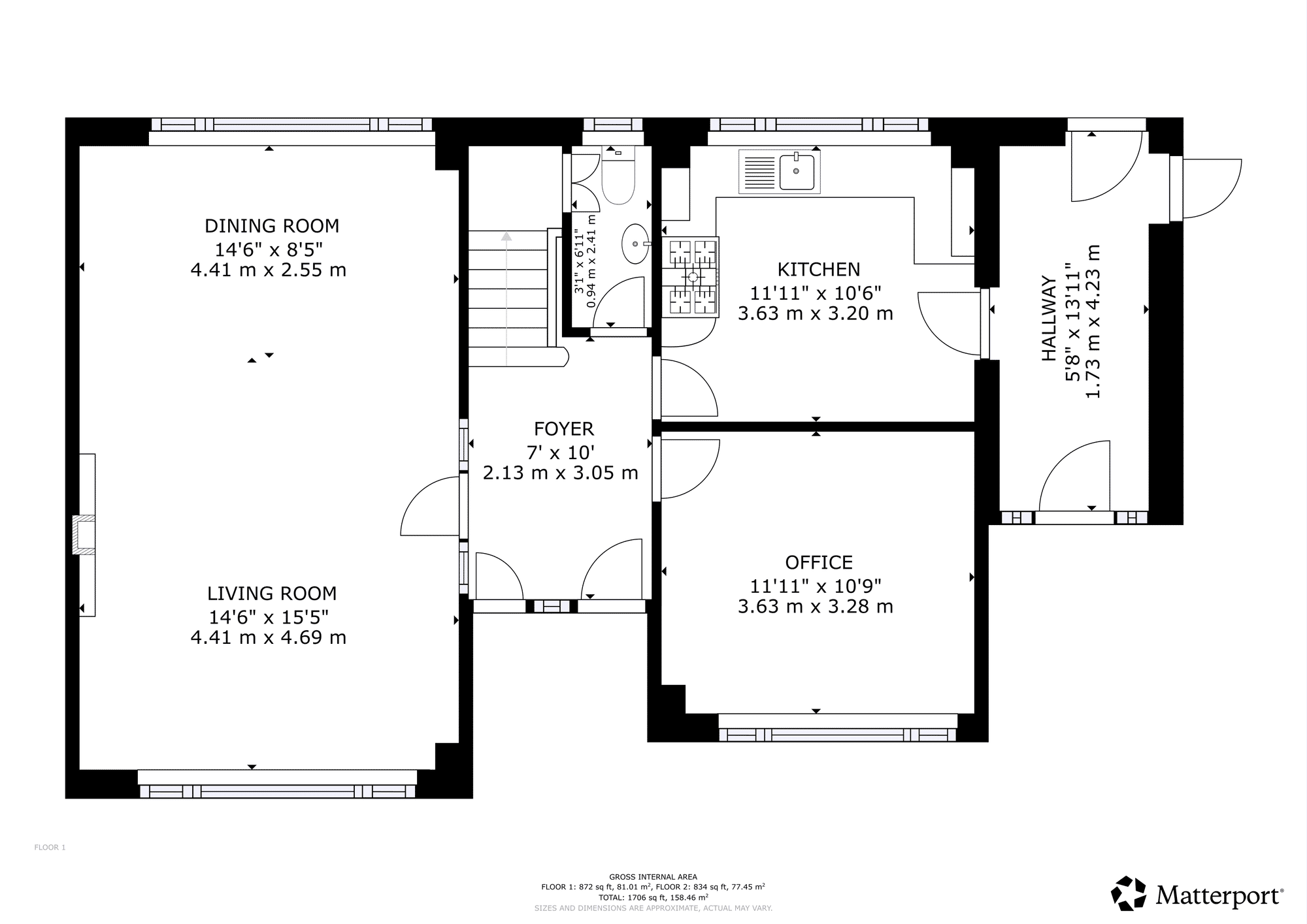 Set on a generous corner plot, the home is approached via a large private driveway and features an attractive front garden. The accommodation on the ground floor comprises an entrance vestibule, welcoming hallway, bright living room, versatile family/dining room, kitchen, utility room, and cloakroom with WC.