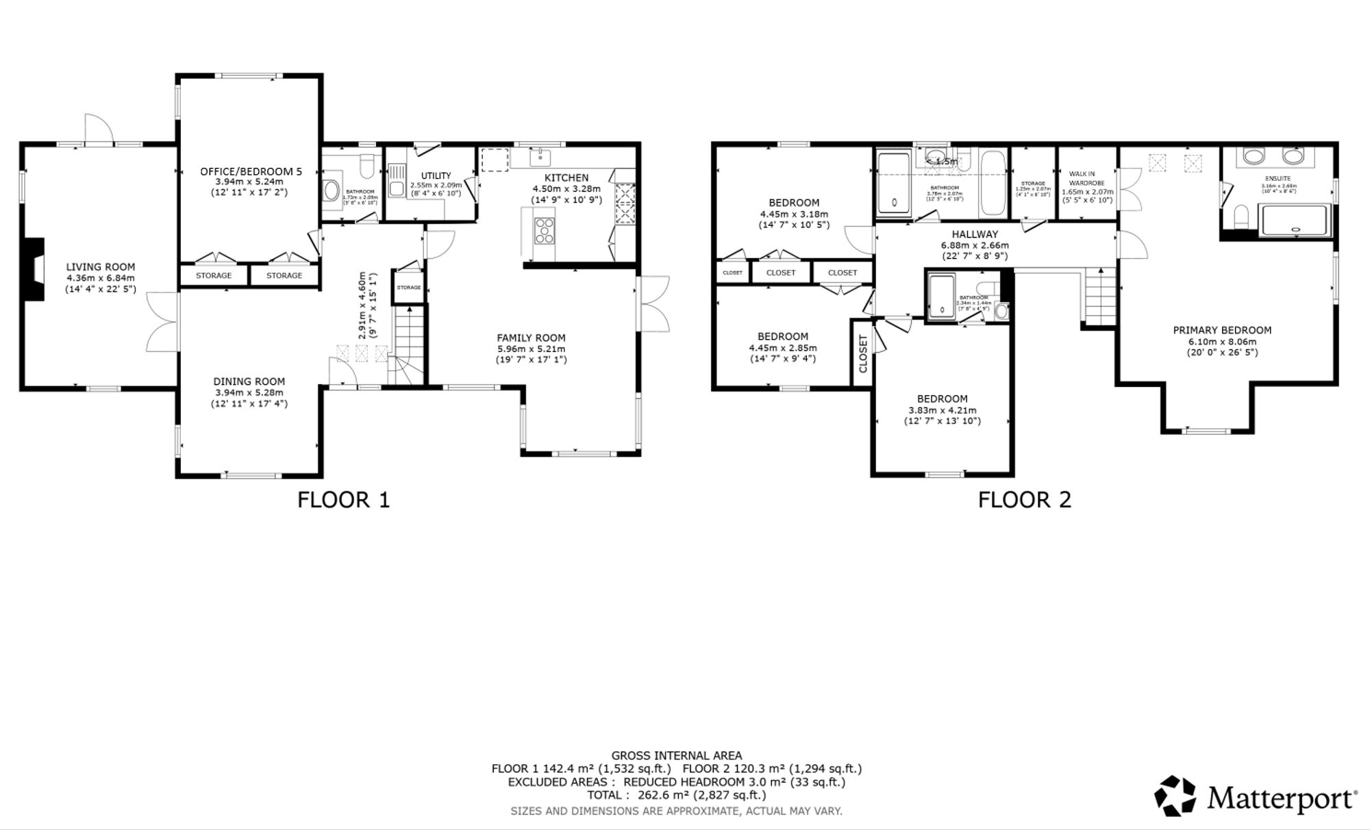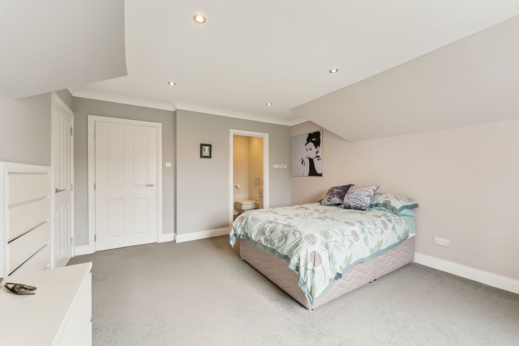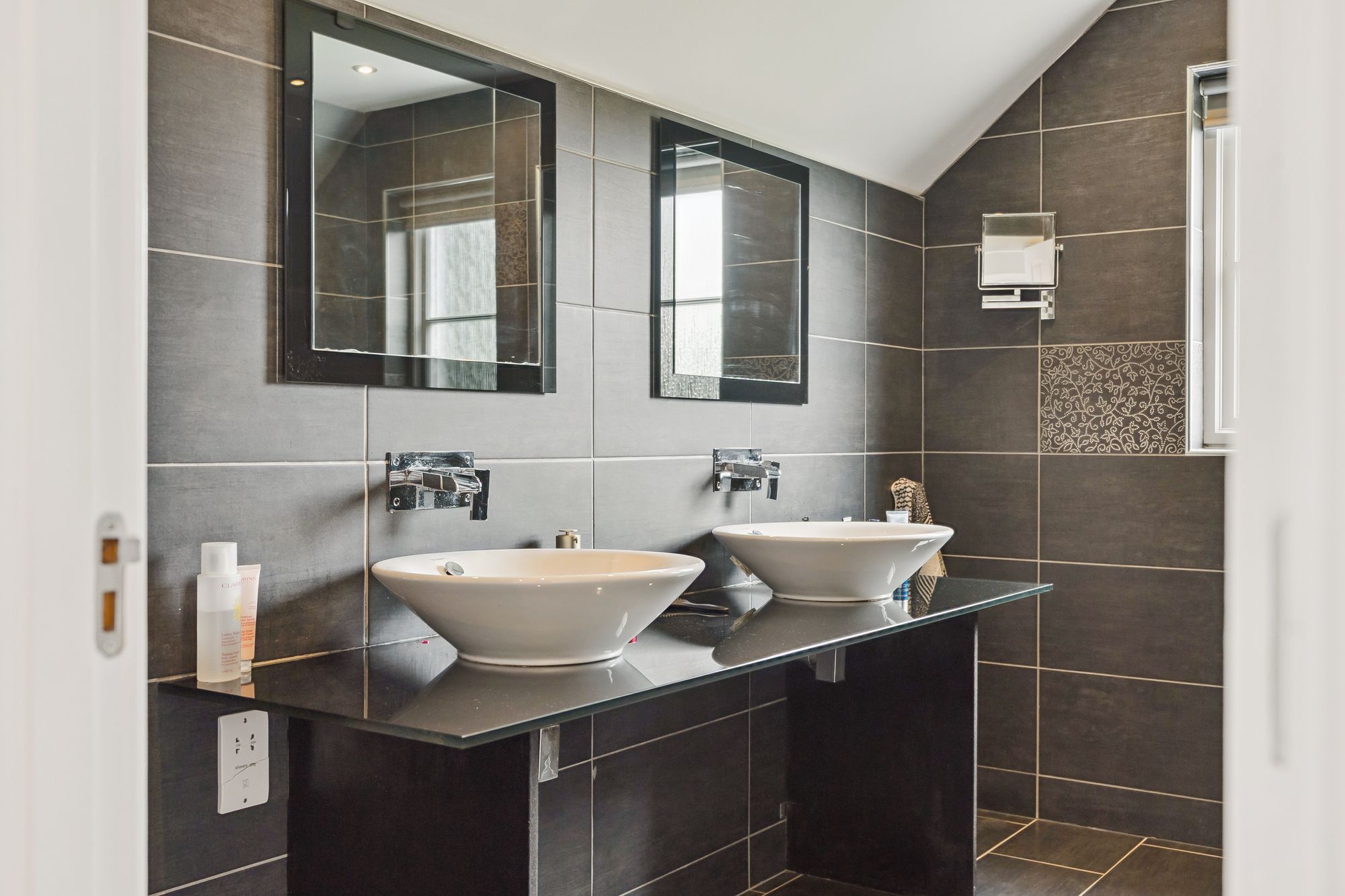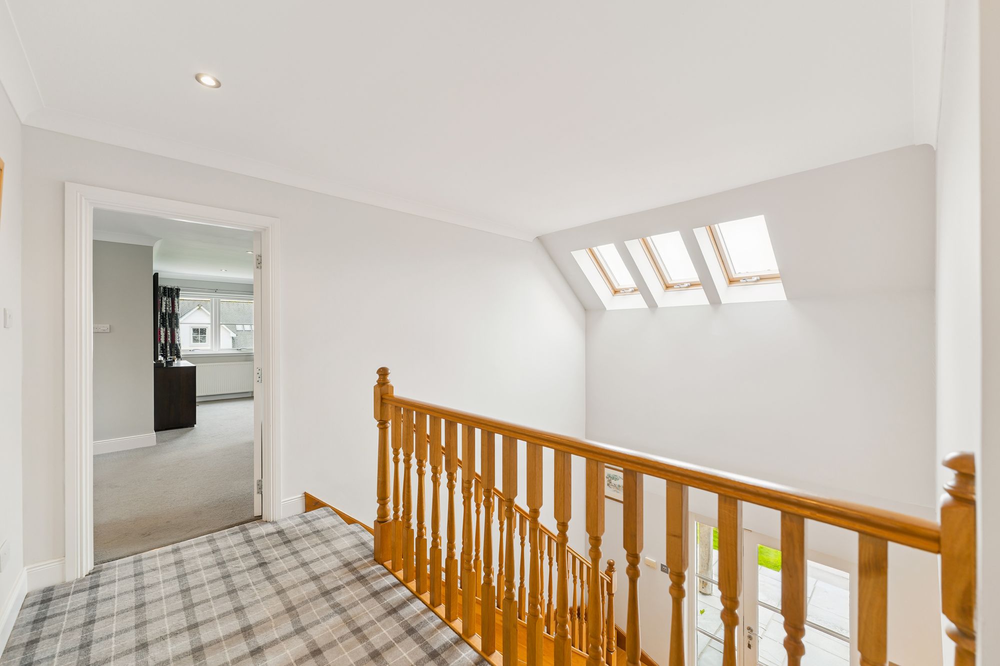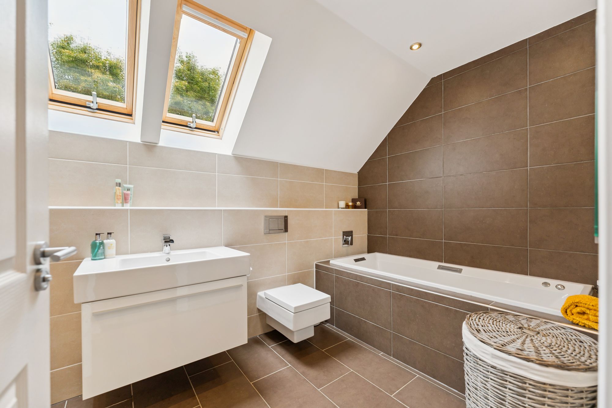 Upstairs, the property continues to impress with four generously sized double bedrooms, three of which feature built-in wardrobes. Bedroom two enjoys the added luxury of a private en suite shower room, while the principal suite is an expansive space, complete with a walk-in wardrobe and a large en suite bathroom featuring double sinks and a sleek, modern finish. A stylish main family bathroom with both a jacuzzi bath and separate shower serves the remaining bedrooms, completing the upper level.