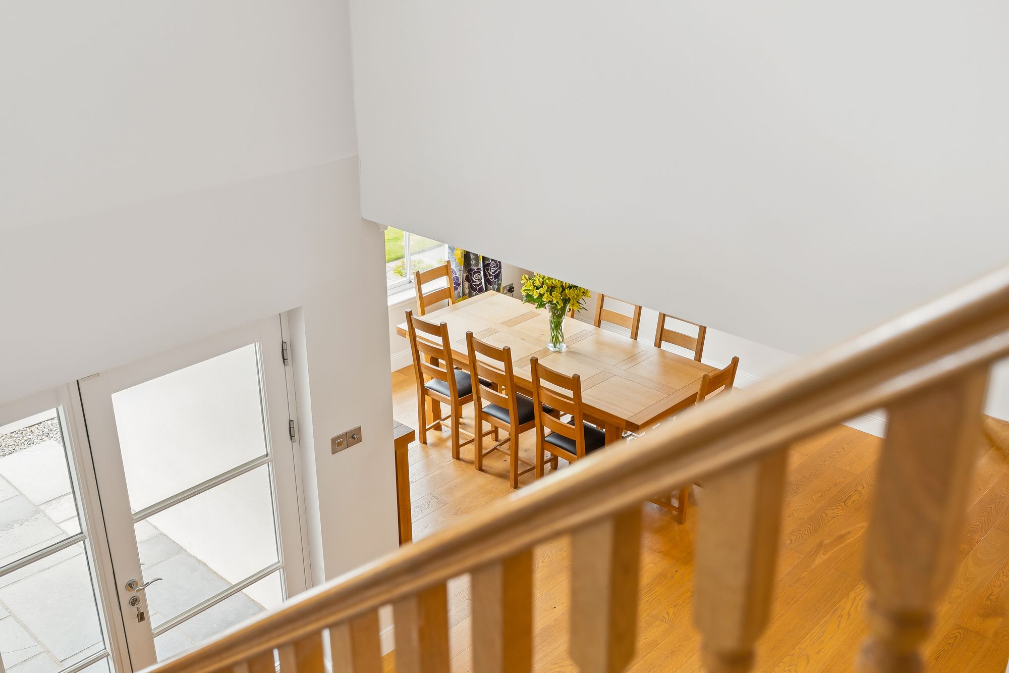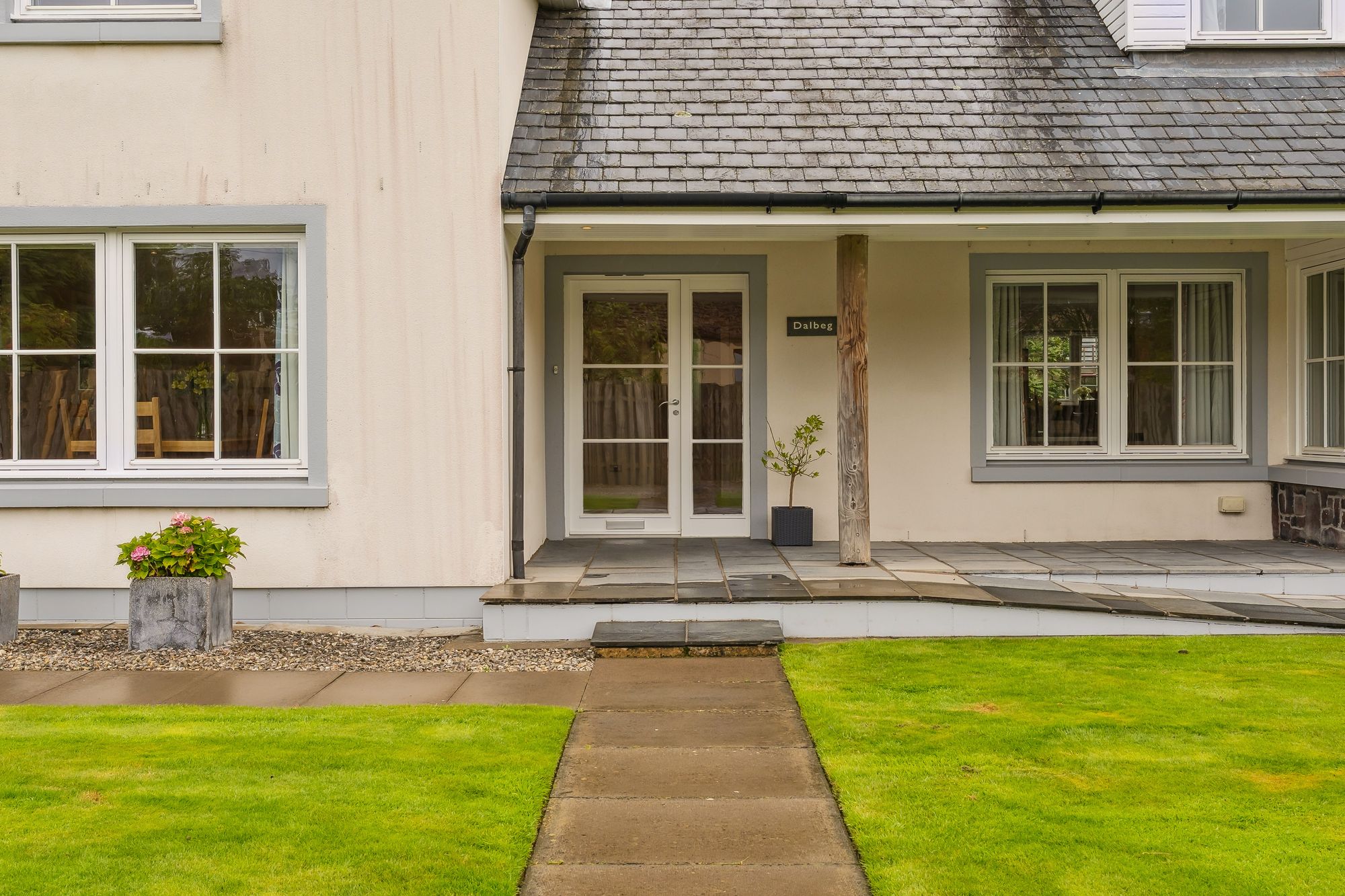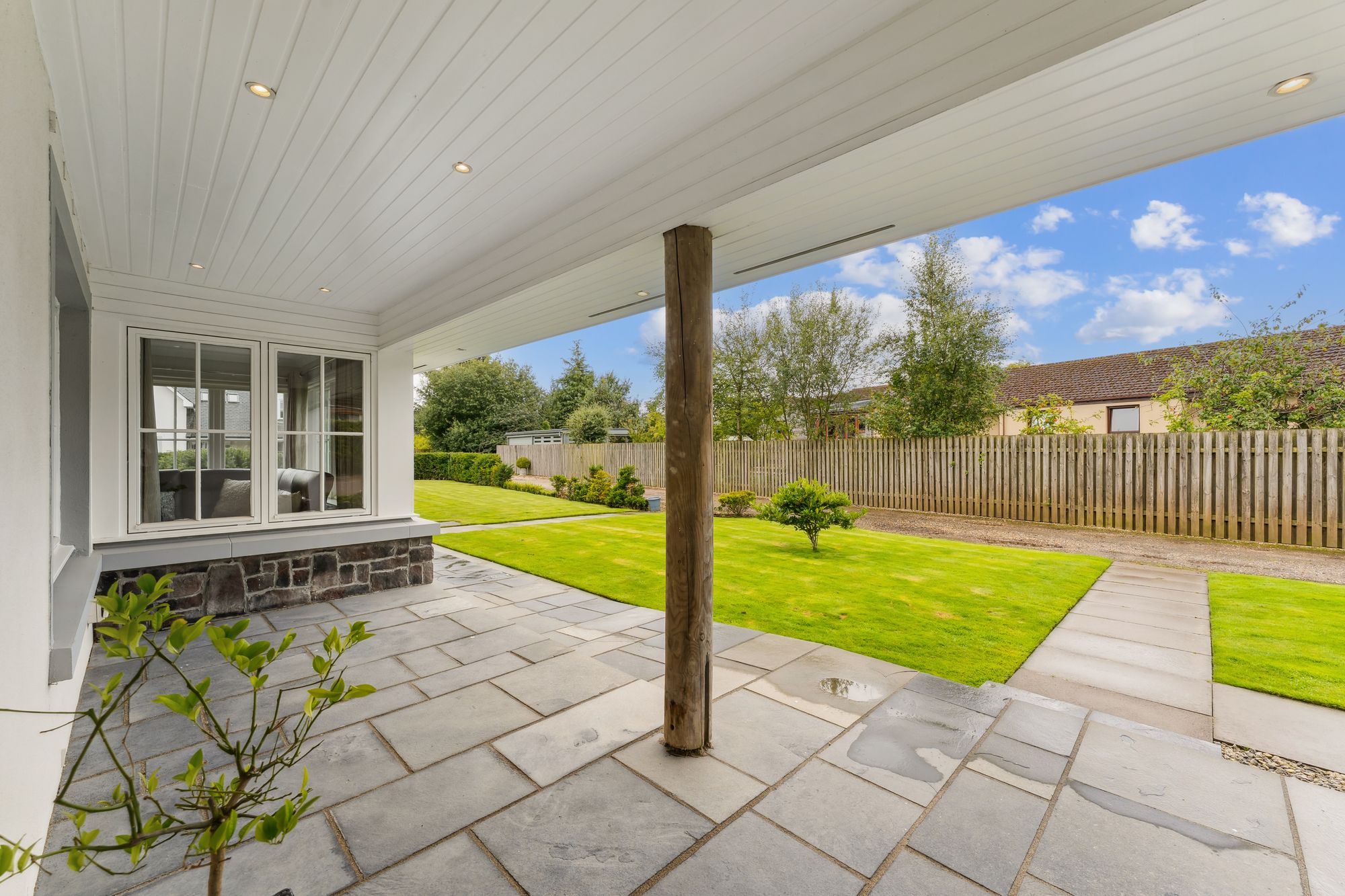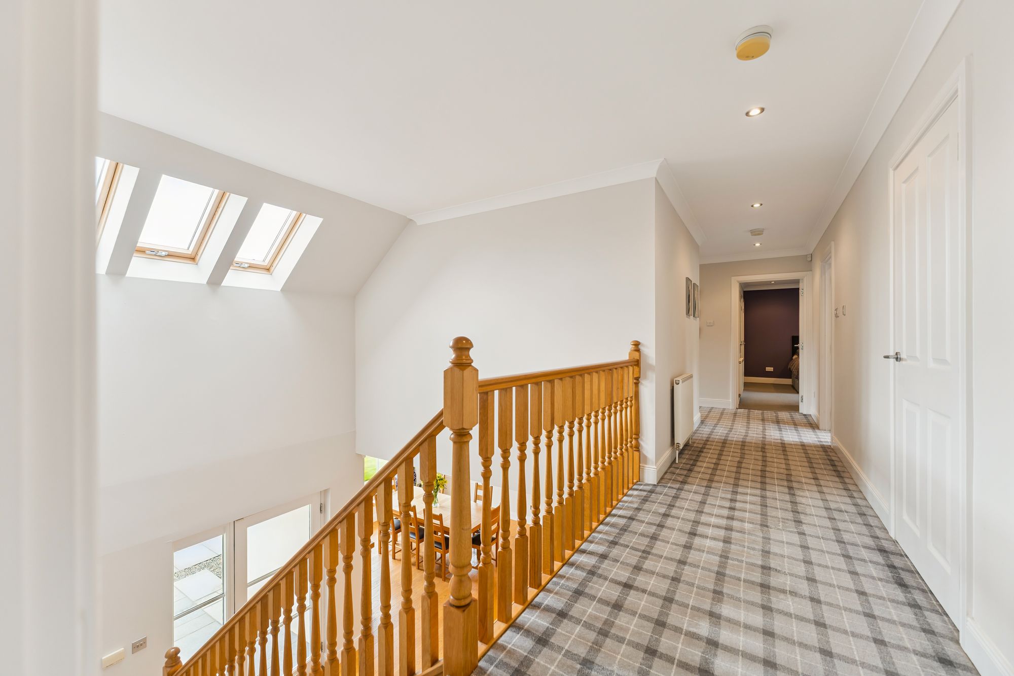 A striking, modern detached home situated in the sought-after village of Torrance, offering a superb blend of space, style, and versatility across two generous levels. Upon entry, you're welcomed by a large, bright hallway that sets the tone for the rest of the property, with a dedicated dining area just off the main space, perfect for entertaining or family gatherings. The formal living room is flooded with natural light thanks to its double-aspect windows and is centred around a contemporary gas fireplace, creating a warm and inviting focal point.