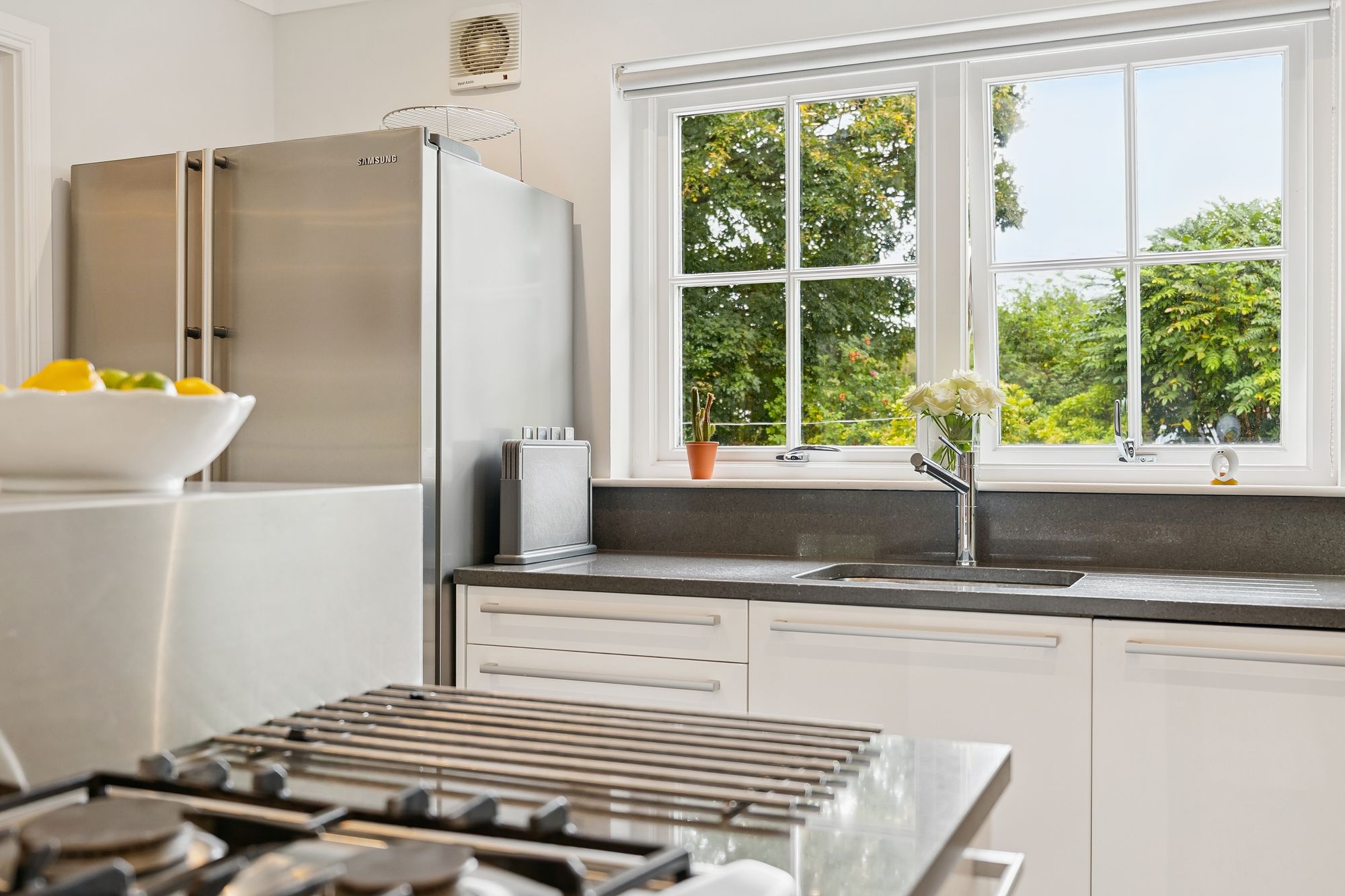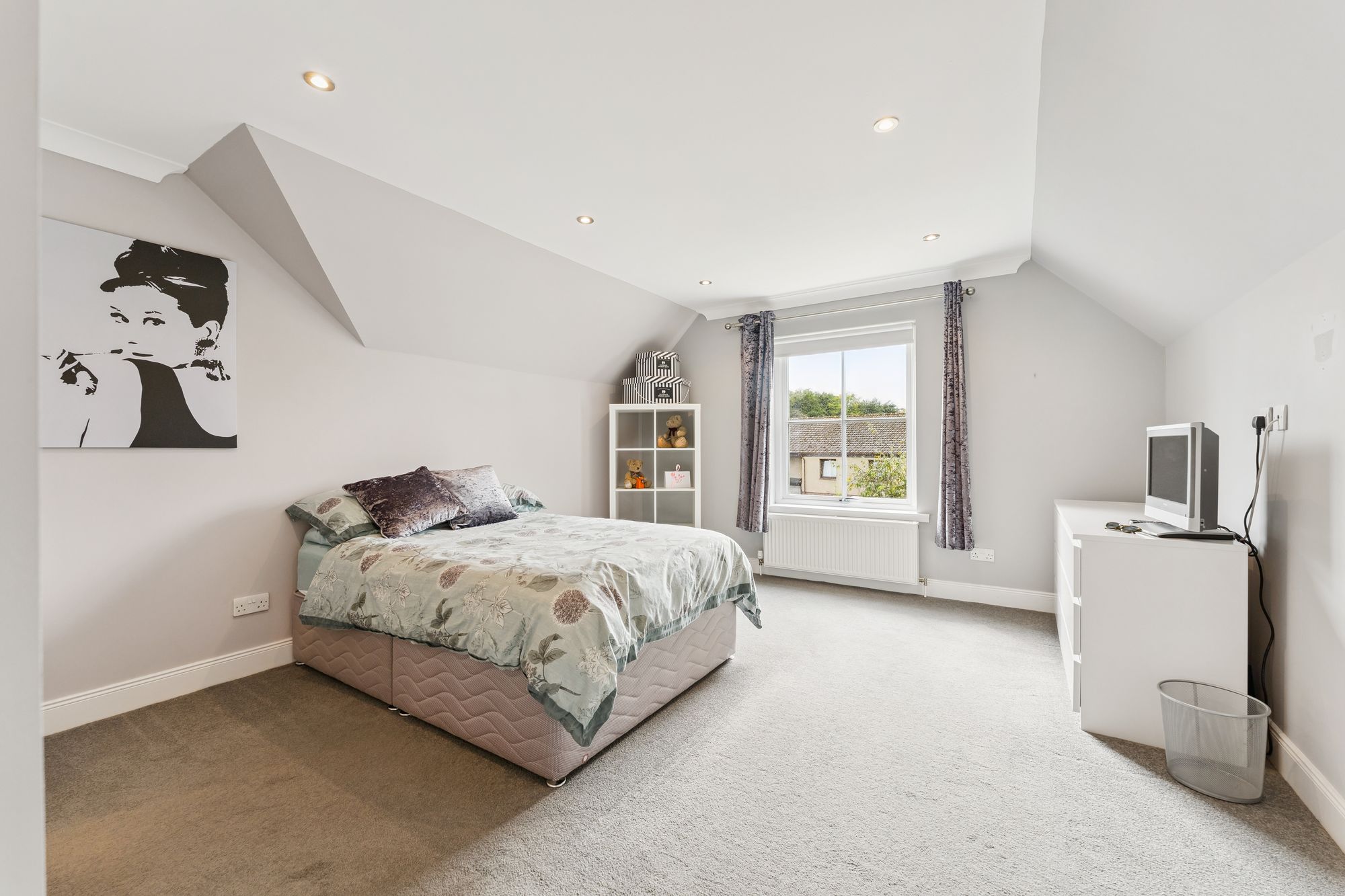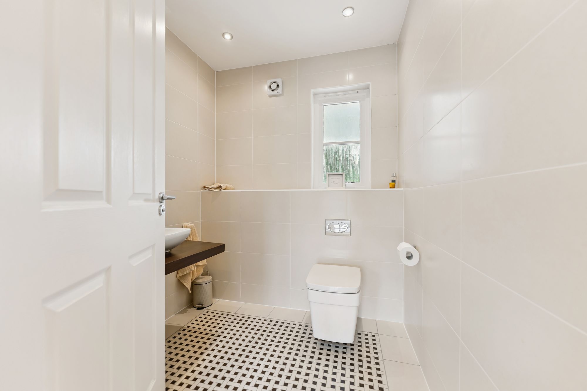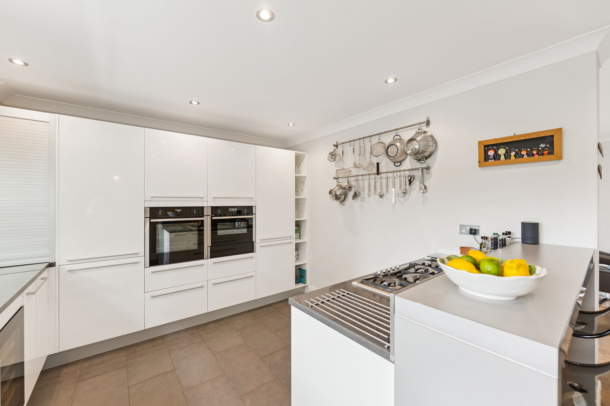 The ground floor also features a spacious home office, complete with built-in storage, which offers the flexibility to be used as a fifth bedroom if desired. The fully tiled downstairs WC adds practicality, while the heart of the home lies in the expansive open-plan family room and kitchen. This light-filled space boasts multiple aspect windows and French doors that open directly onto the impressive rear gardens, ideal for indoor-outdoor living. The well-appointed kitchen also benefits from an adjoining laundry room, offering convenient everyday functionality.