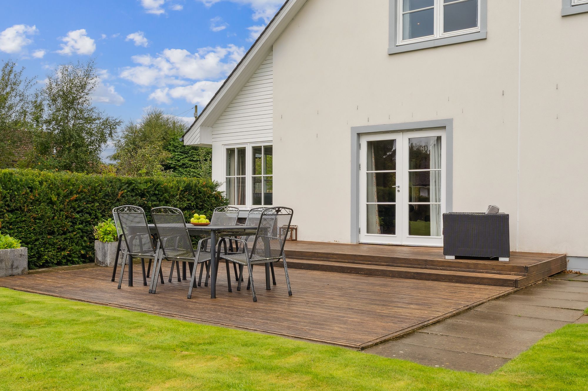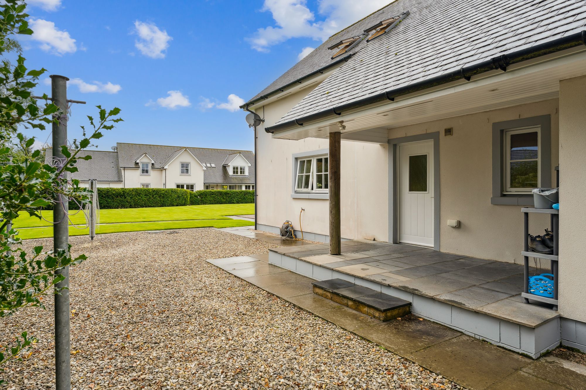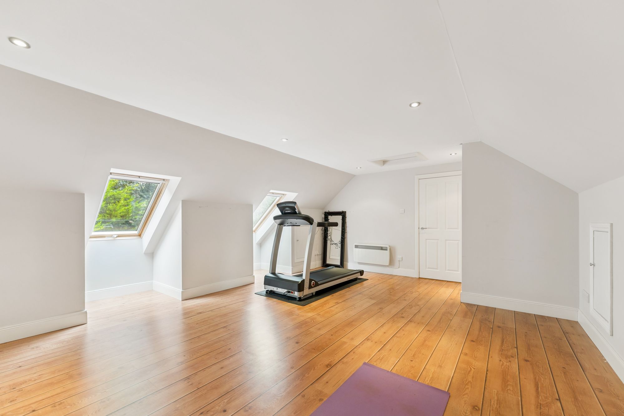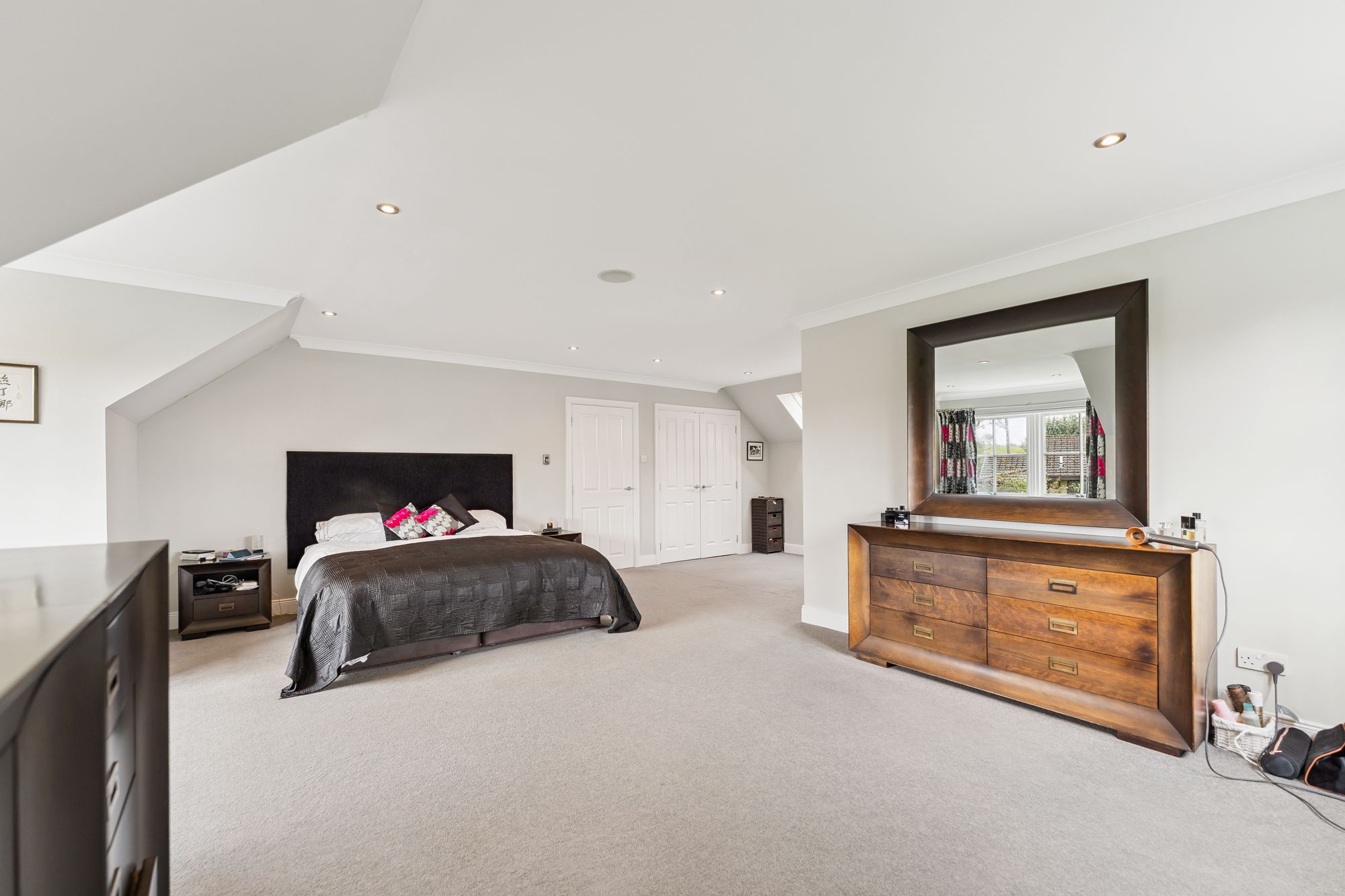 Externally, the property occupies a substantial plot, with expansive areas of level lawn to the side, all enclosed by mature hedgerows that offer excellent privacy. A large decked area provides the perfect setting for outdoor dining and entertaining, while the garden wraps around the property and features hard landscaping to the rear, ideal for low-maintenance enjoyment. To the side of the house is a generous detached double garage with electric roller doors, an electric vehicle charging point, and a superb self-contained annex above. Currently used as a gym with a w/c, this multifunctional space could easily adapt to a home office, studio, or guest accommodation.